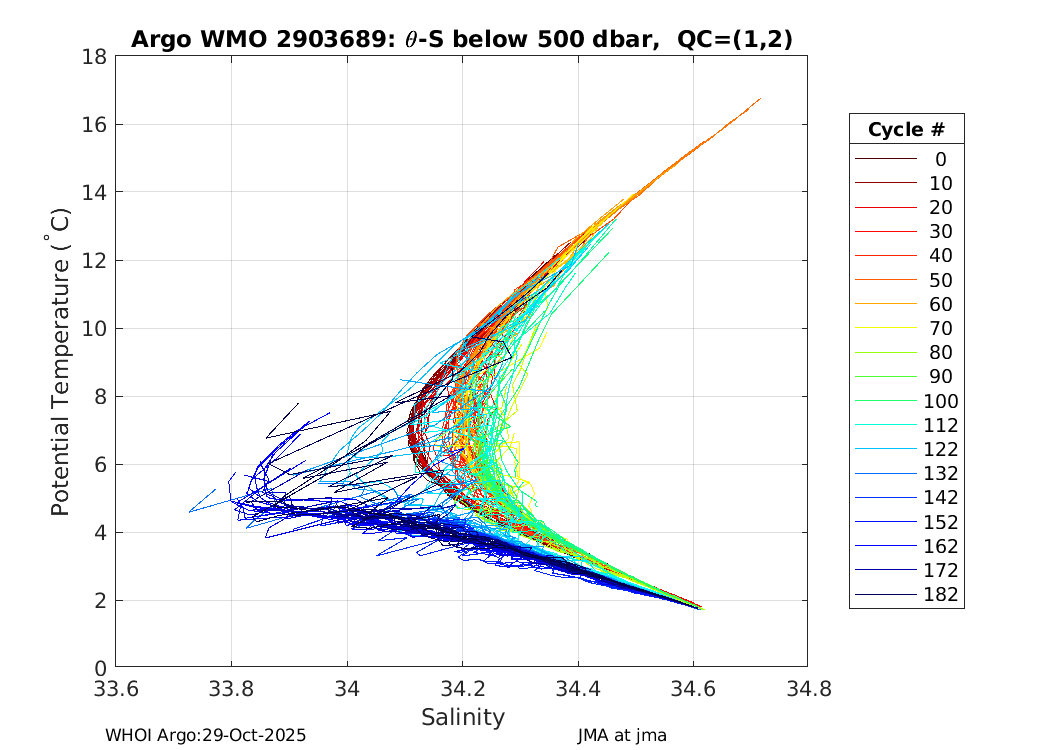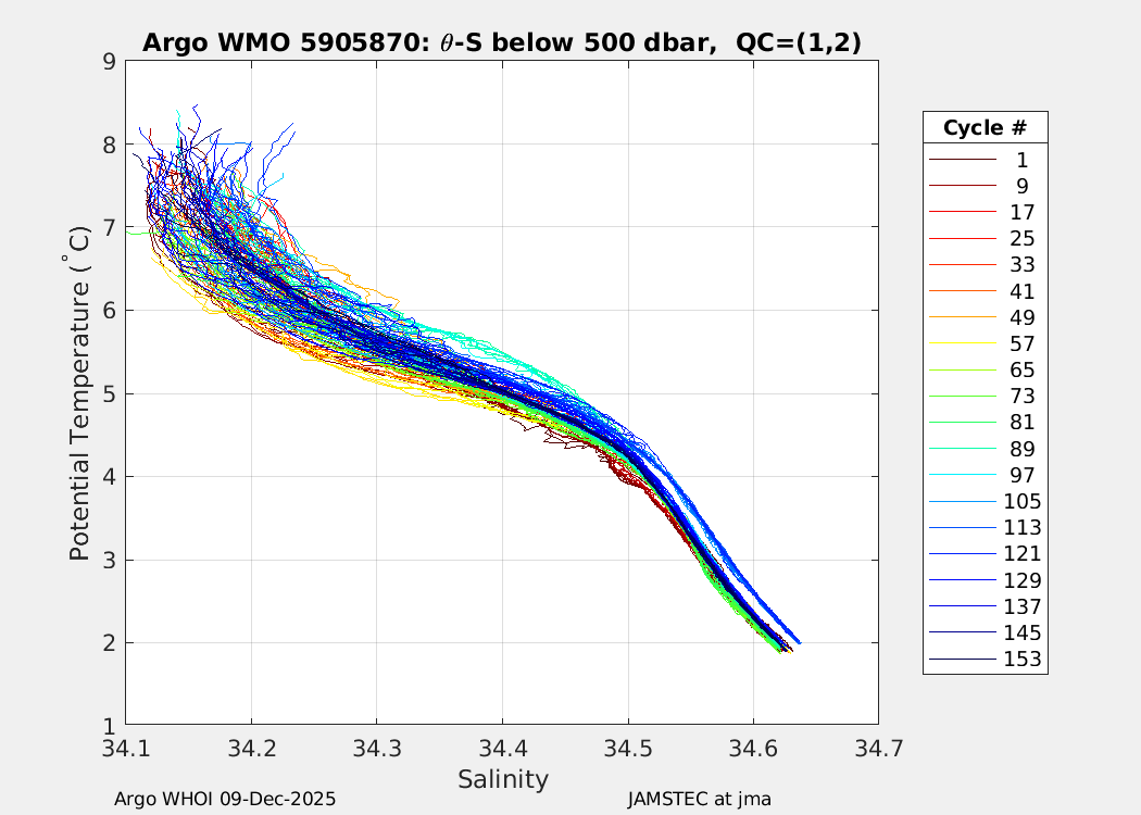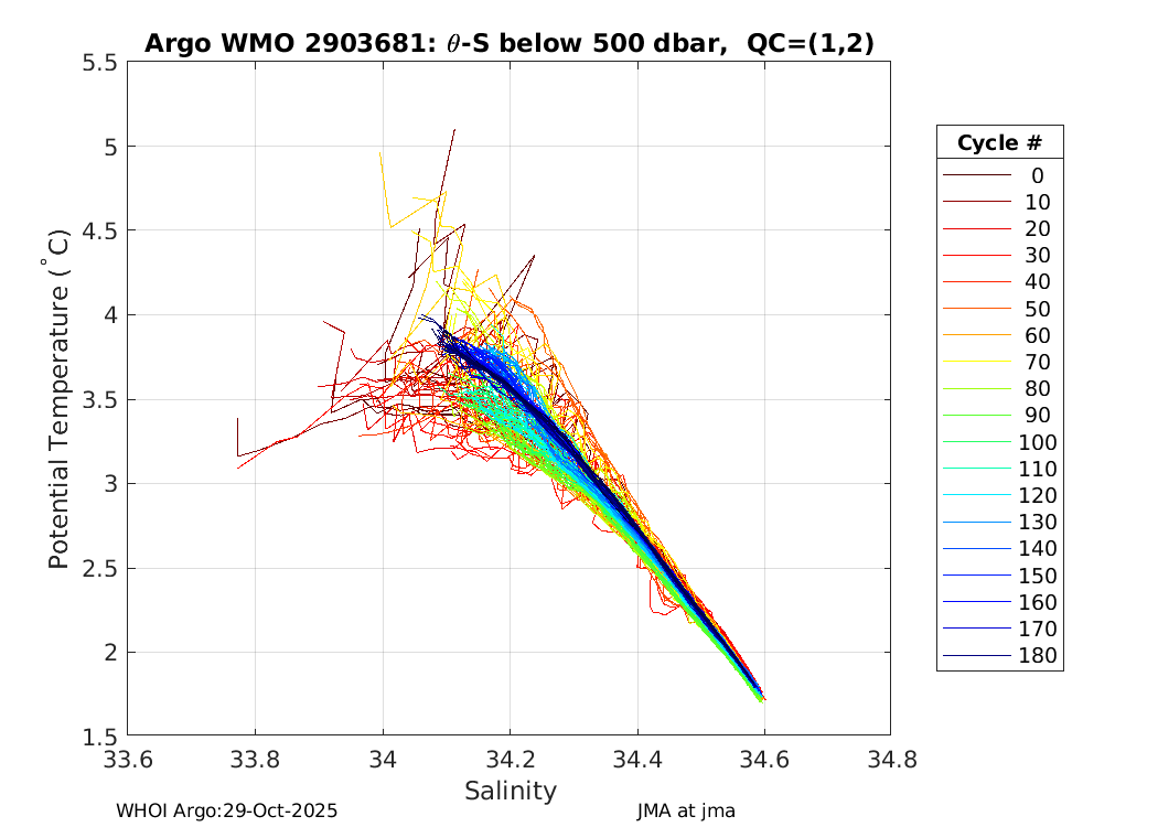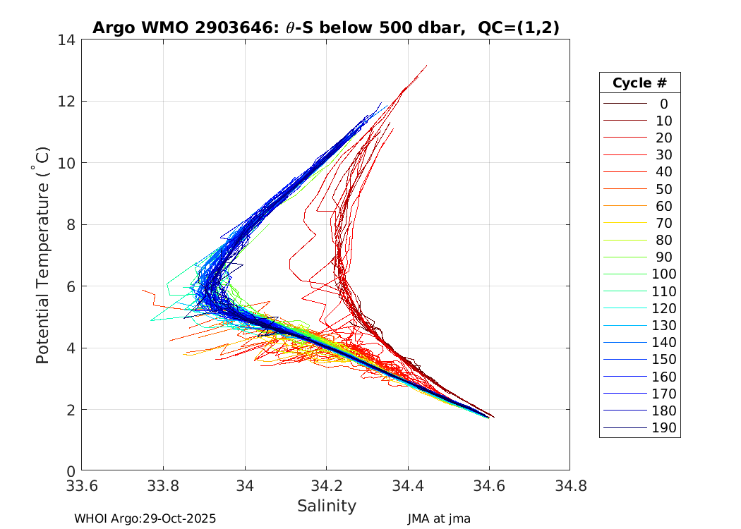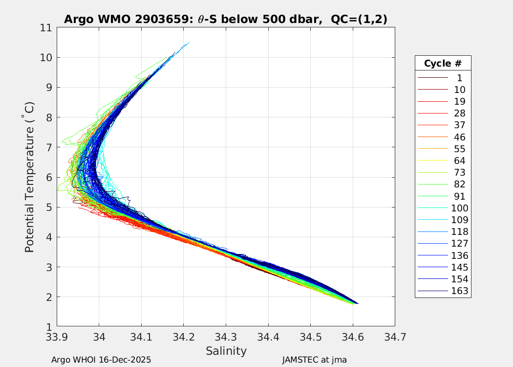 | WMO: #2903659 DAC: jma PI: JAMSTEC APEX: #9133 DRUCK: #11441335 SBE41CP_V7.2.5: #12844 Altimeter Comparison (IFREMER) EuroArgo Link | ![]() |