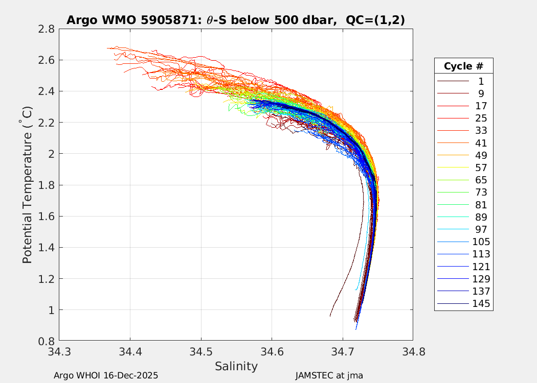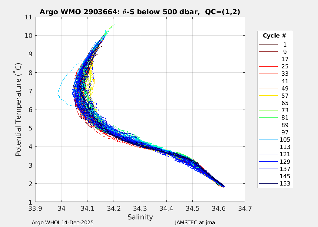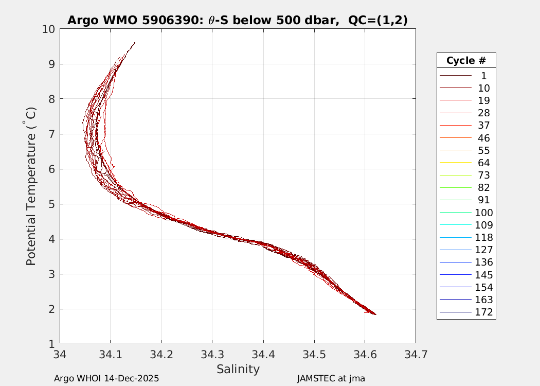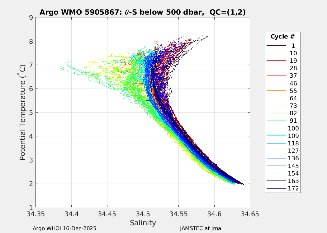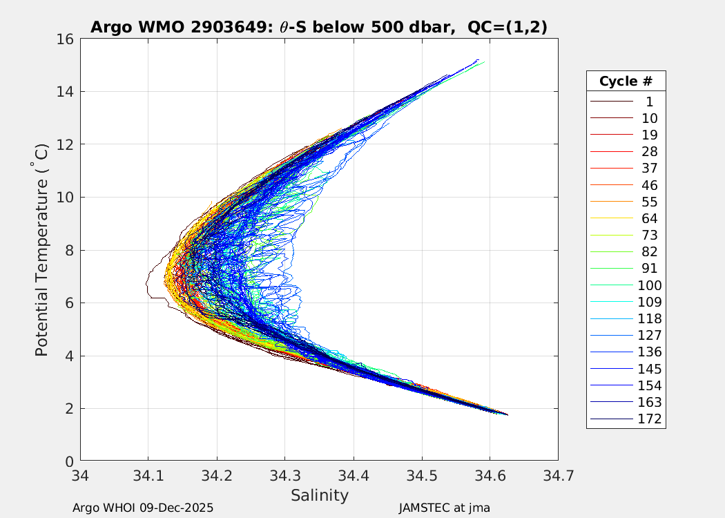 | WMO: #2903652 DAC: jma PI: JAMSTEC APEX: #9013 SBE41CP_V7.2.5: #12326 ARO_FT: #0AKD017 Altimeter Comparison (IFREMER) EuroArgo Link | ![]() |