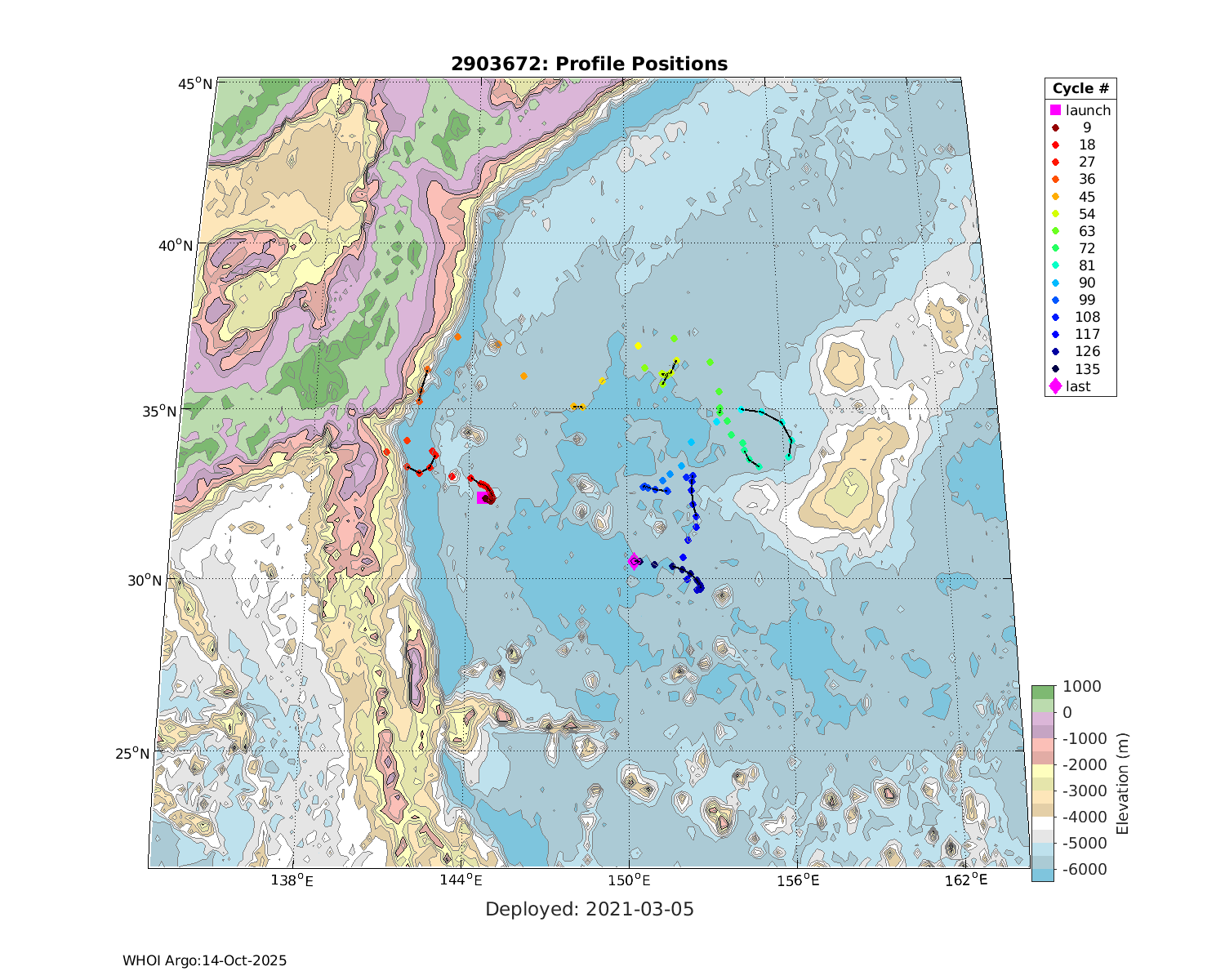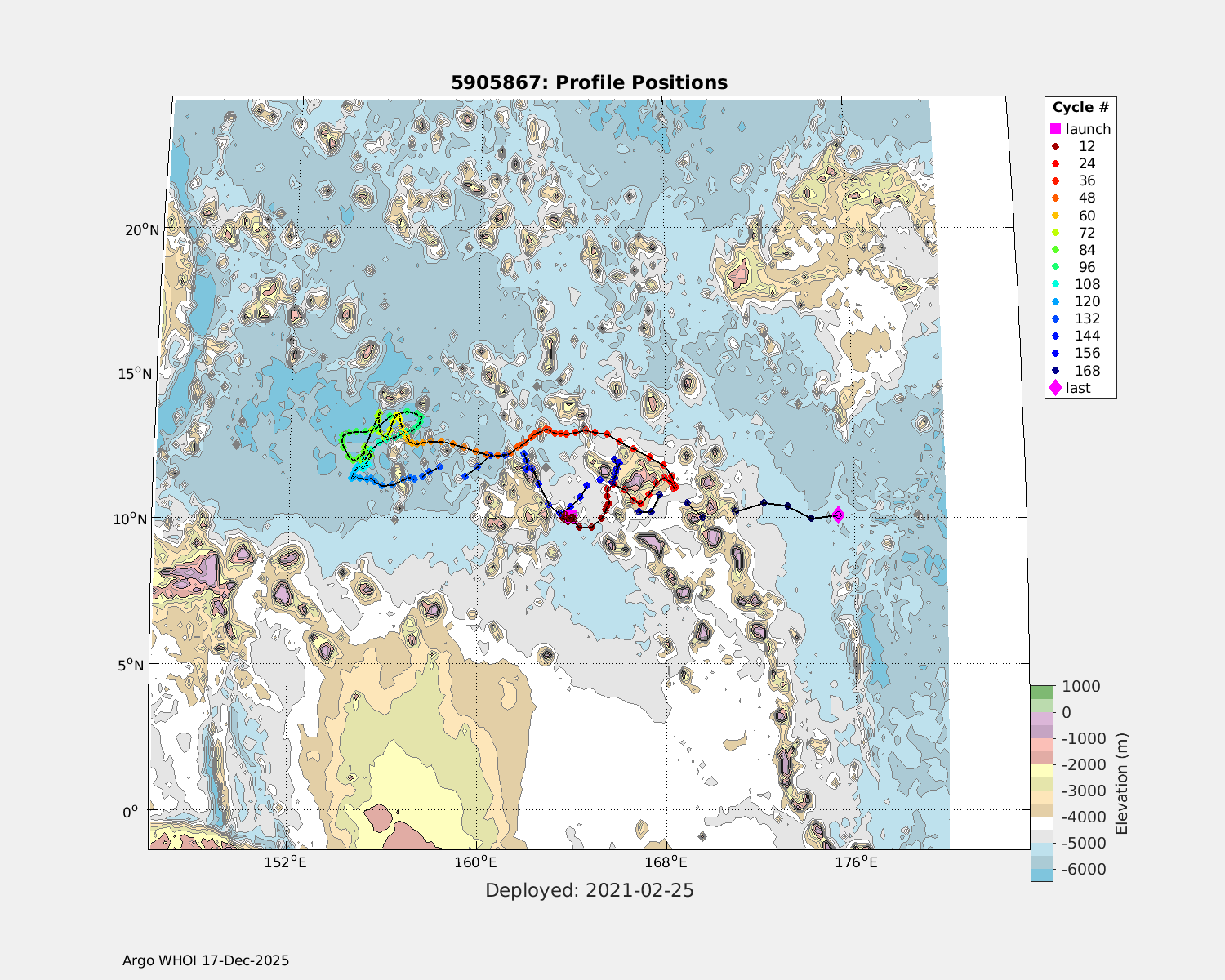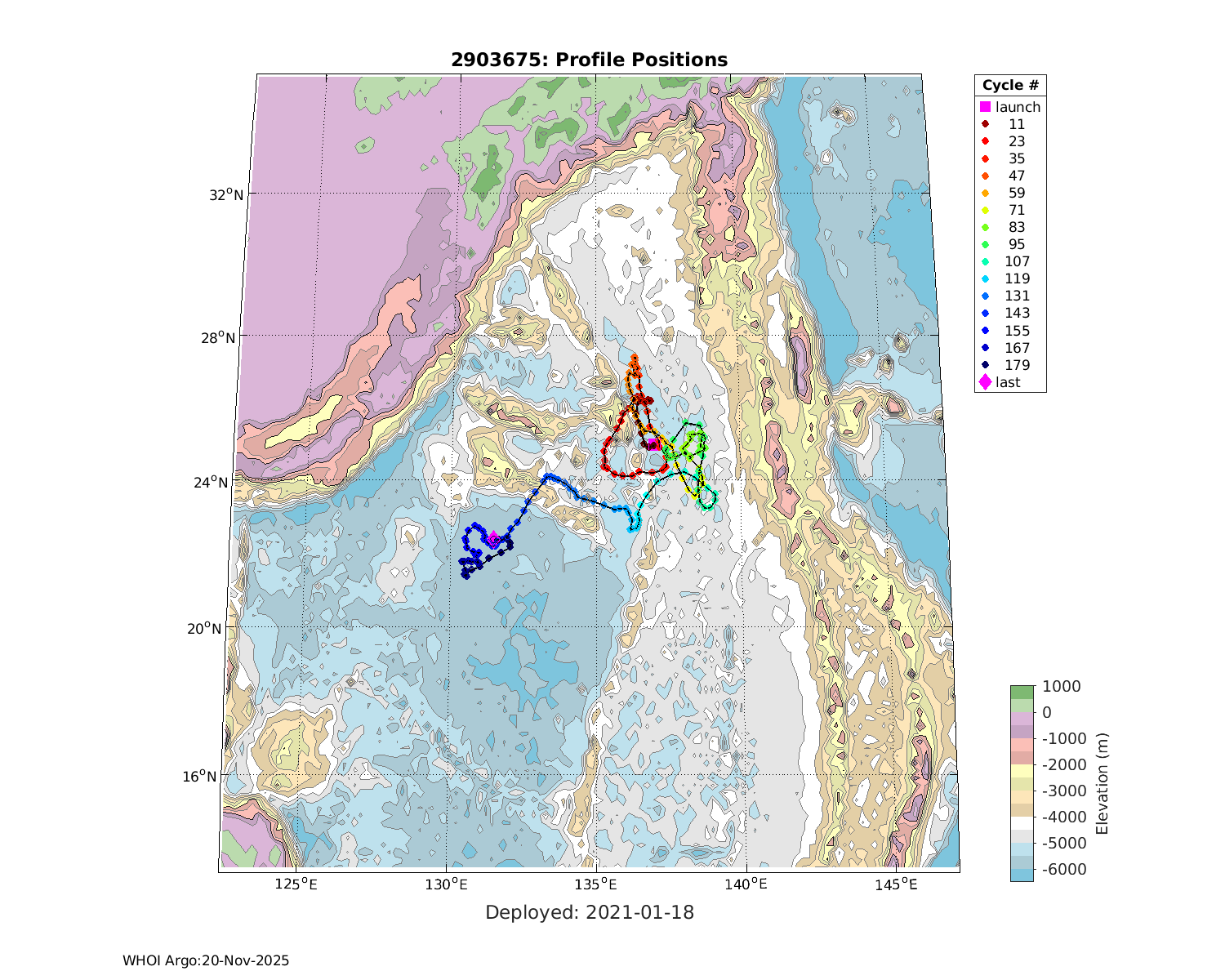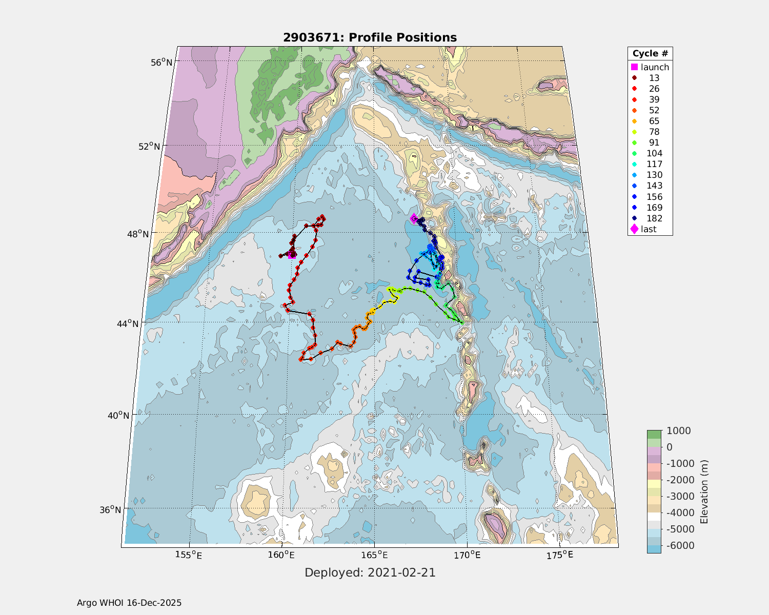 | WMO: #2903672 DAC: jma PI: JAMSTEC NAVIS_A: #883 SBE41N_V5.3.4: #10184 SBE63_OPTODE: #1771 MCOMS_FLBBCD: #151 SUNA_V2: #1099 Altimeter Comparison (IFREMER) EuroArgo Link | ![]() |