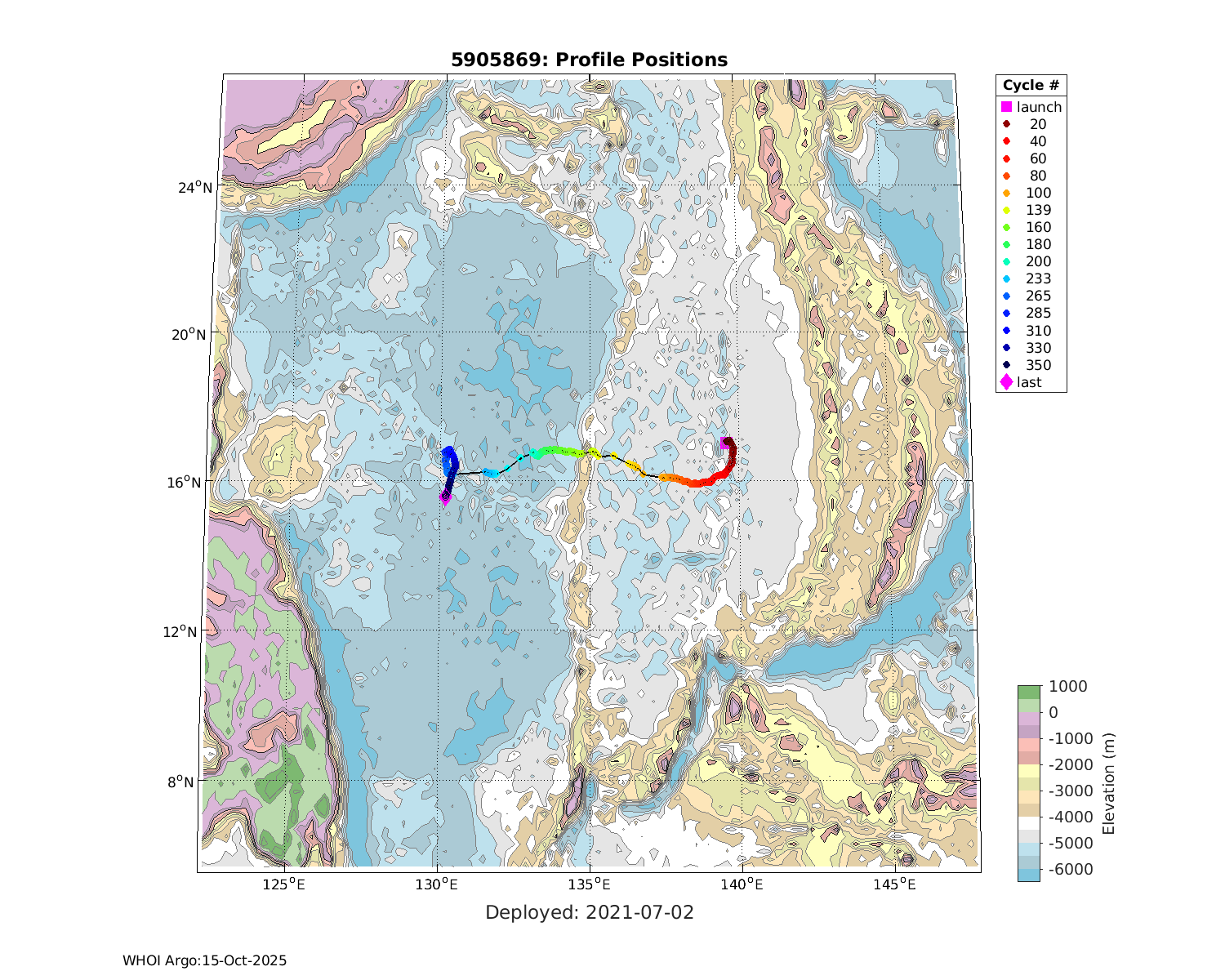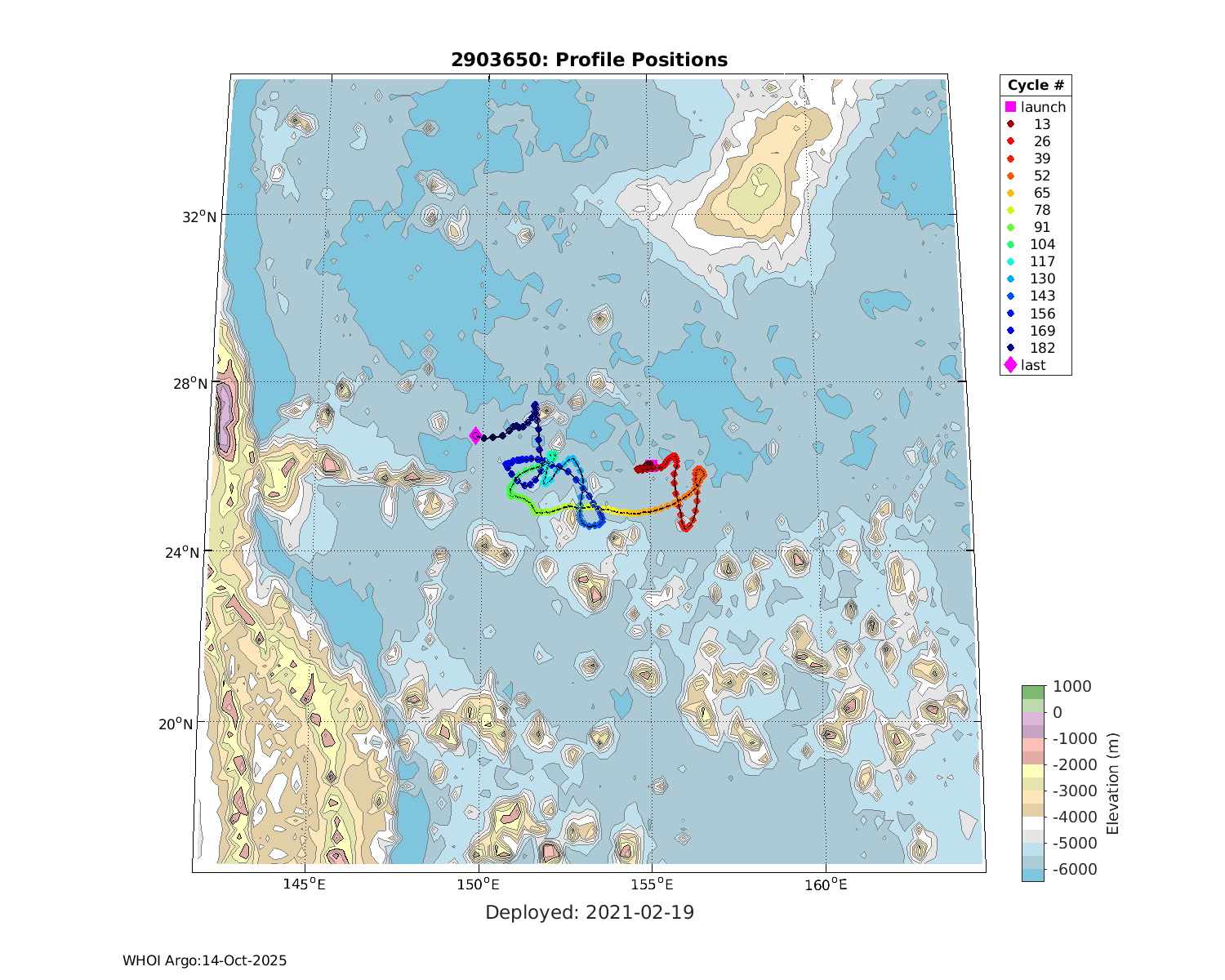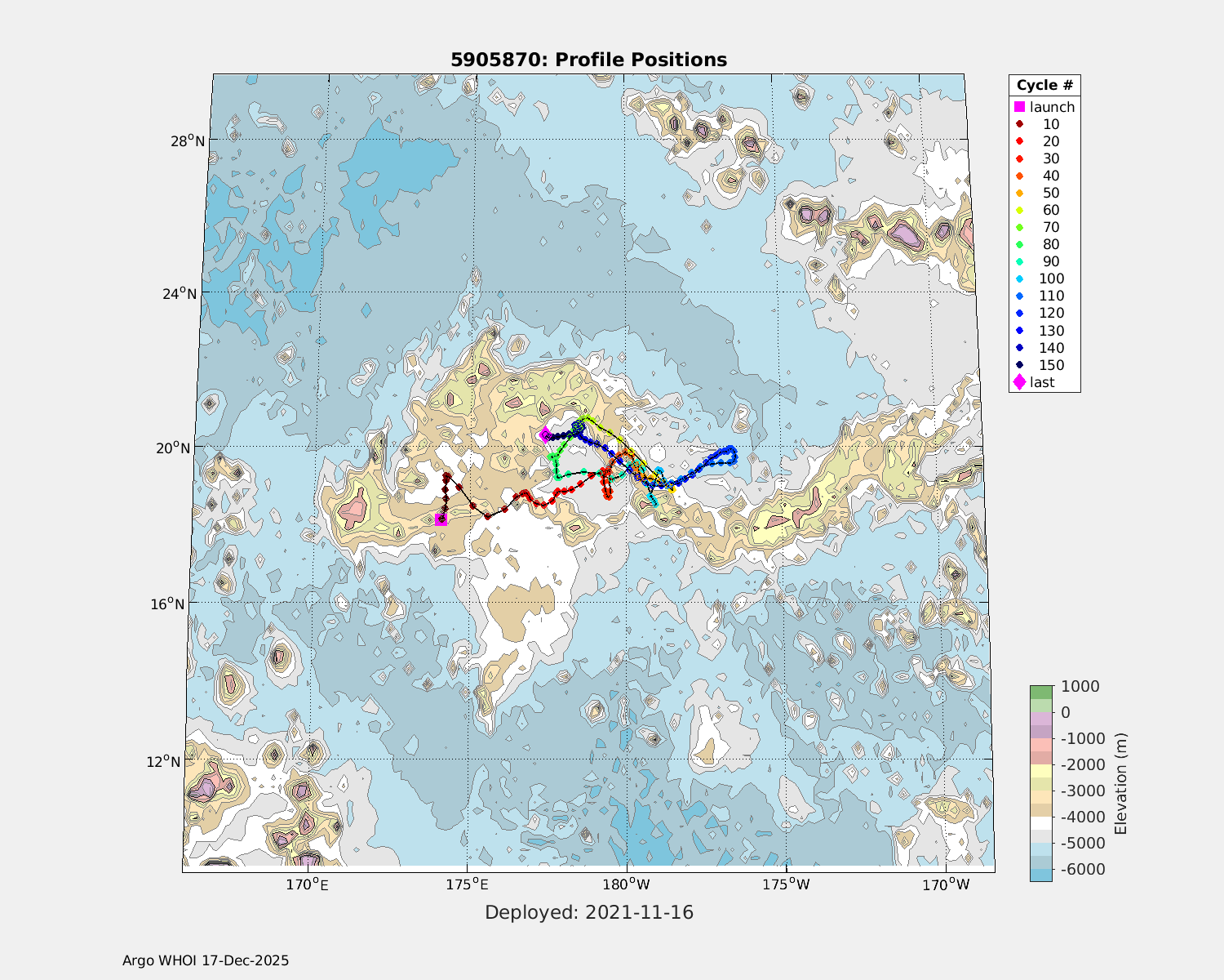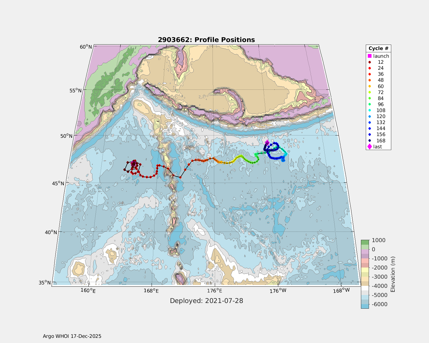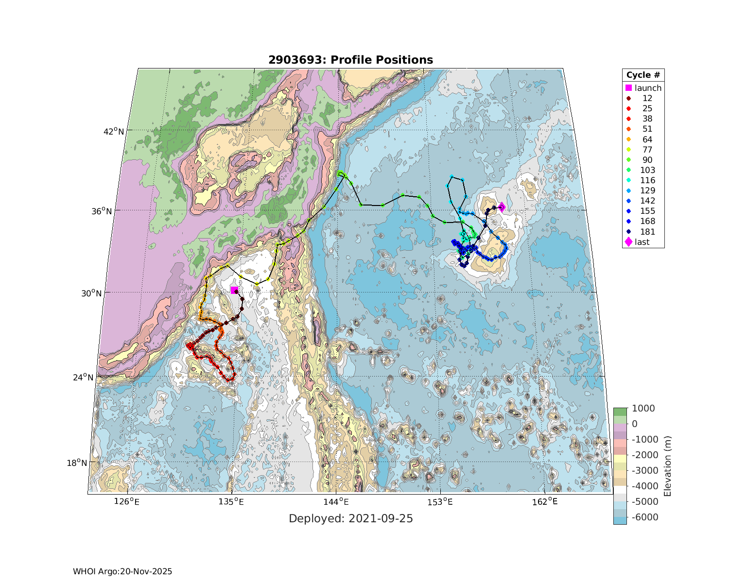 | WMO: #2903672 DAC: jma PI: JAMSTEC NAVIS_A: #883 SBE41N_V5.3.4: #10184 SBE63_OPTODE: #1771 MCOMS_FLBBCD: #151 SUNA_V2: #1099 Altimeter Comparison (IFREMER) EuroArgo Link | ![]() |