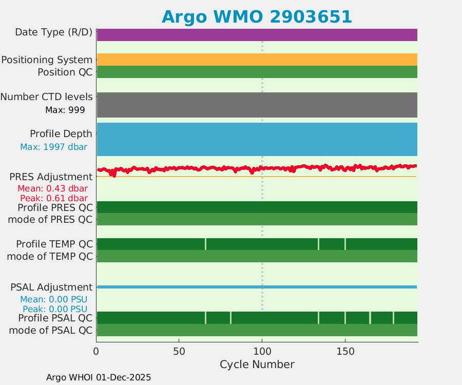 | WMO: #5906390 DAC: jma PI: JAMSTEC APEX: #8797 DRUCK: #11046492 SBE41CP_V7.2.5: #11352 Altimeter Comparison (IFREMER) EuroArgo Link | ![]() |
