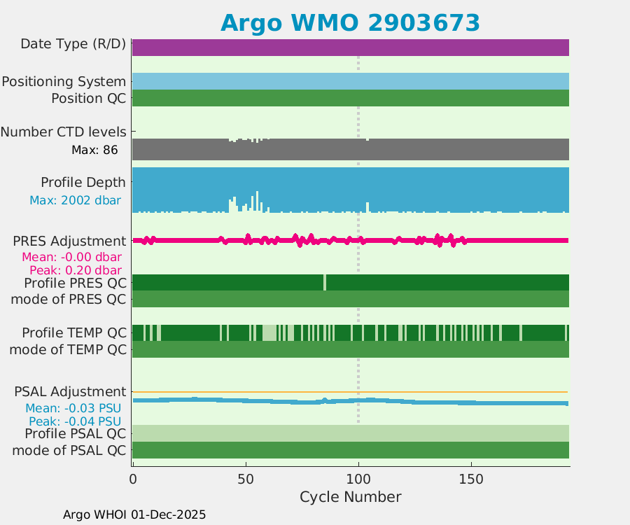 | WMO: #5905869 DAC: jma PI: JAMSTEC APEX: #9192 DRUCK: #11325046 SBE41CP_V7.2.5: #12745 Altimeter Comparison (IFREMER) EuroArgo Link | ![]() |