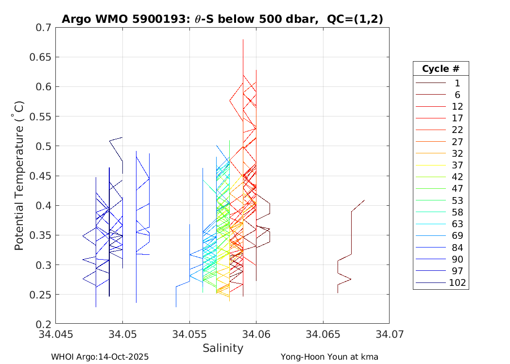 | WMO: #5900193 DAC: kma PI: Yong-Hoon Youn APEX: # SBE41CP: #720 Altimeter Comparison (IFREMER) EuroArgo Link | ![]() |