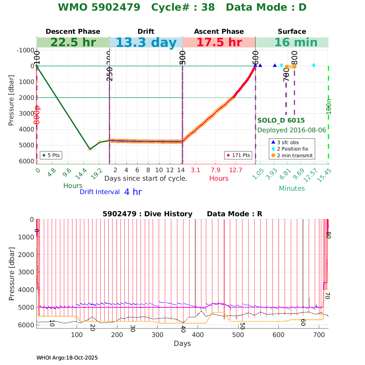 | WMO: #5902478 DAC: aoml PI: Dean ROEMMICH SOLO_D: #6014 KISTLER_10153PSIA: #4725554 SBE61: #5594 Altimeter Comparison (IFREMER) EuroArgo Link | ![]() |