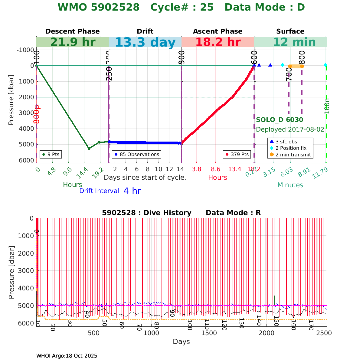 | WMO: #5902528 DAC: aoml PI: Dean ROEMMICH SOLO_D: #6030 KISTLER_10153PSIA: #4994315 SBE61: #5609 Altimeter Comparison (IFREMER) EuroArgo Link | ![]() |