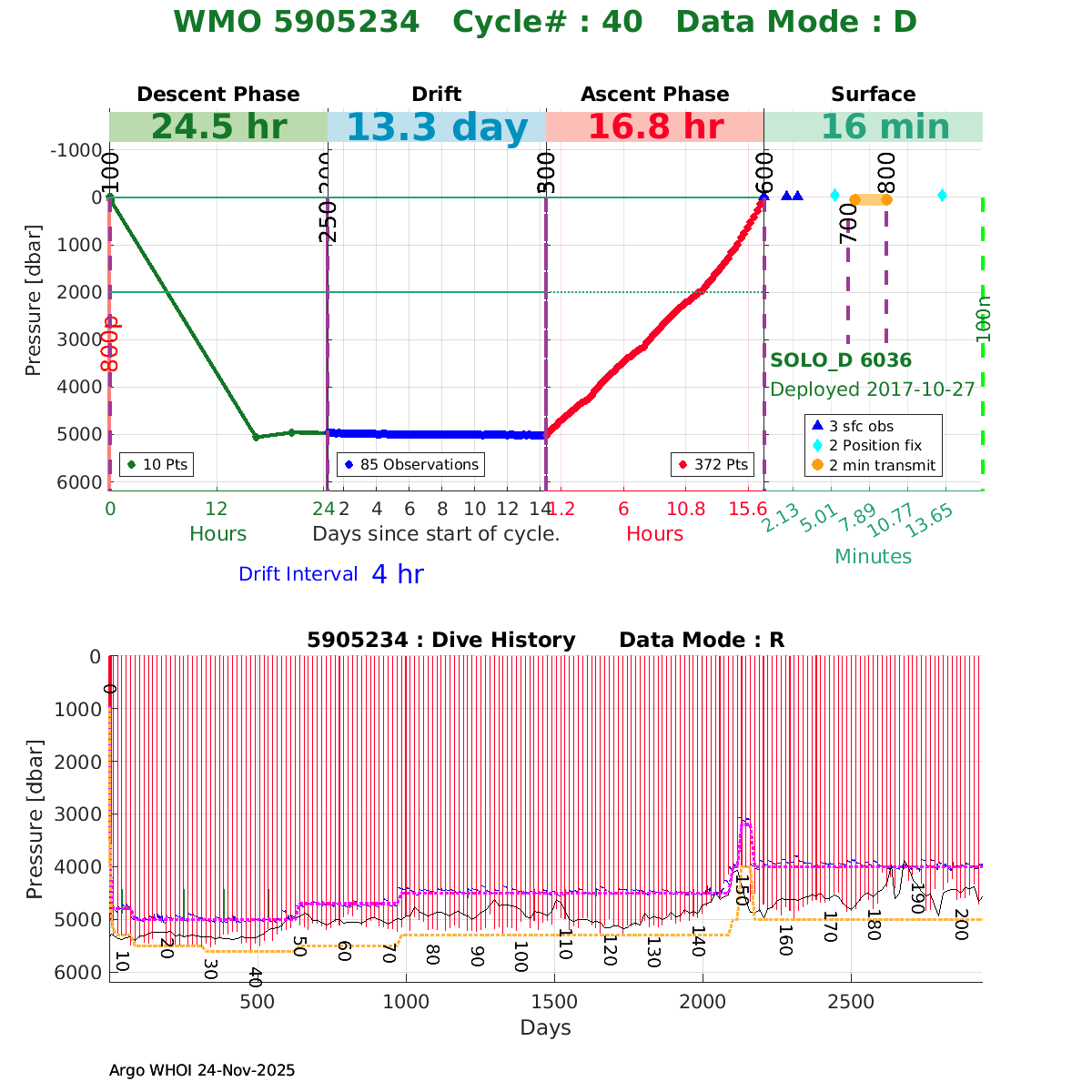 | WMO: #5905163 DAC: aoml PI: Dean ROEMMICH SOLO_D: #6034 KISTLER_10153PSIA: #5000569 SBE61: #5624 Altimeter Comparison (IFREMER) EuroArgo Link | ![]() |