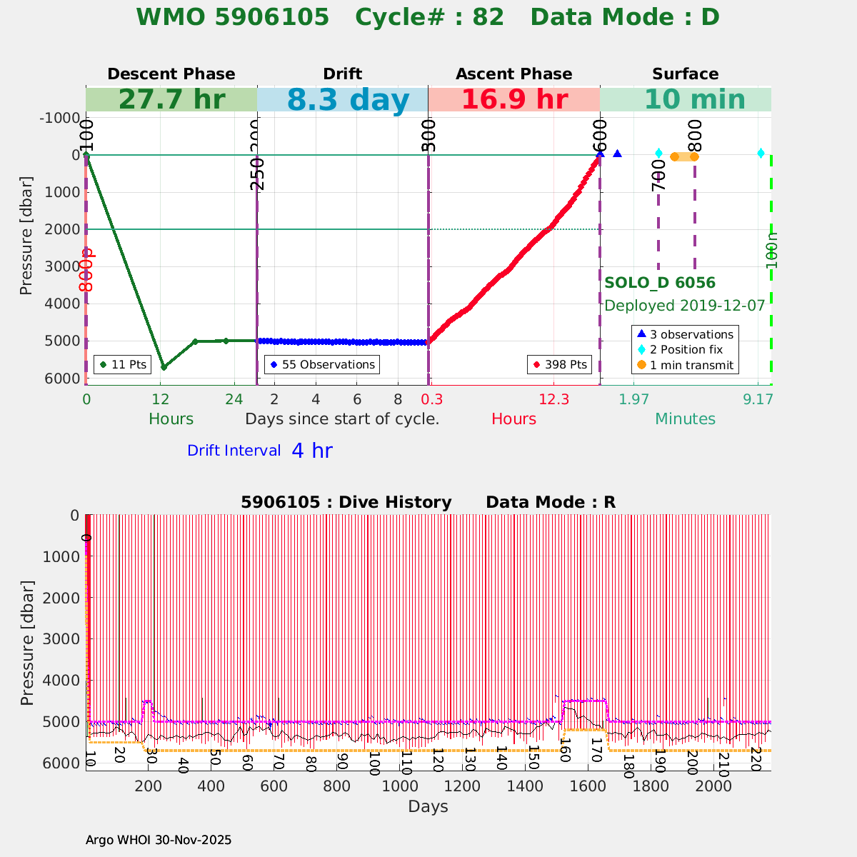 | WMO: #5906105 DAC: aoml PI: Dean ROEMMICH SOLO_D: #6056 KISTLER_10153PSIA: #5231620 SBE61: #5660 Altimeter Comparison (IFREMER) EuroArgo Link | ![]() |