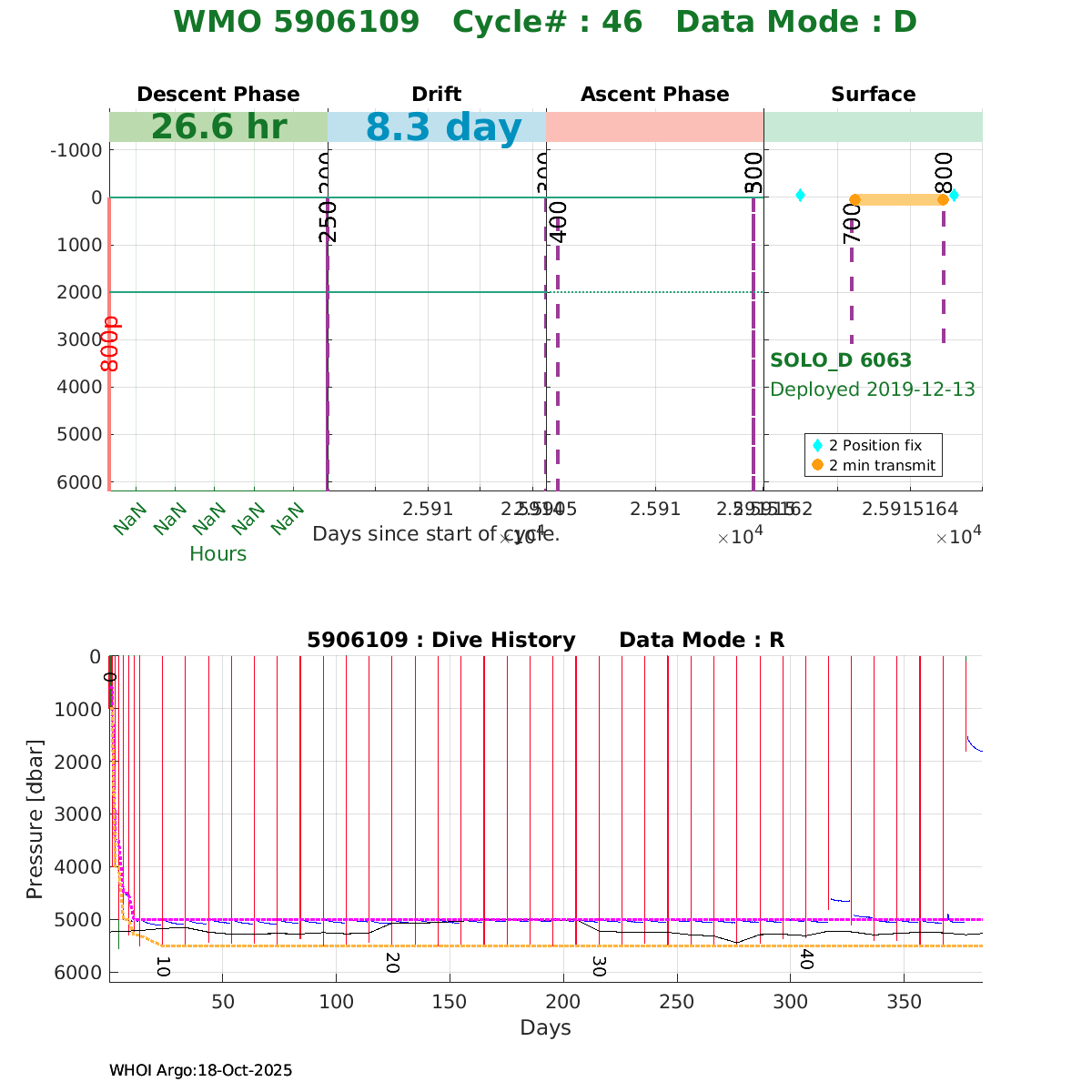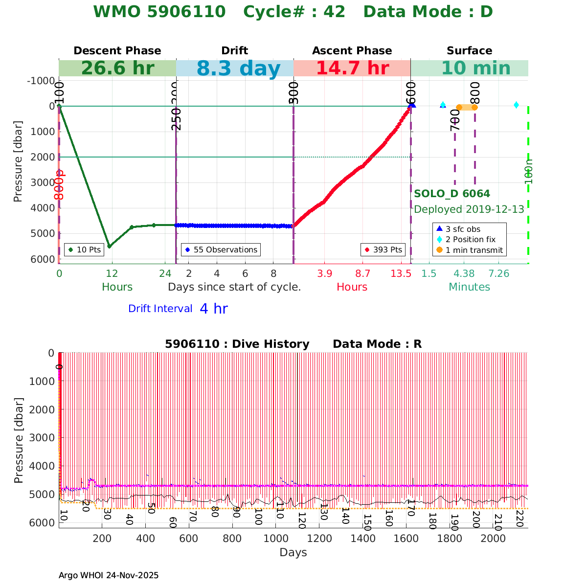 | WMO: #5906110 DAC: aoml PI: Dean ROEMMICH SOLO_D: #6064 KISTLER_10153PSIA: #5251175 SBE61: #5710 Altimeter Comparison (IFREMER) EuroArgo Link | ![]() |