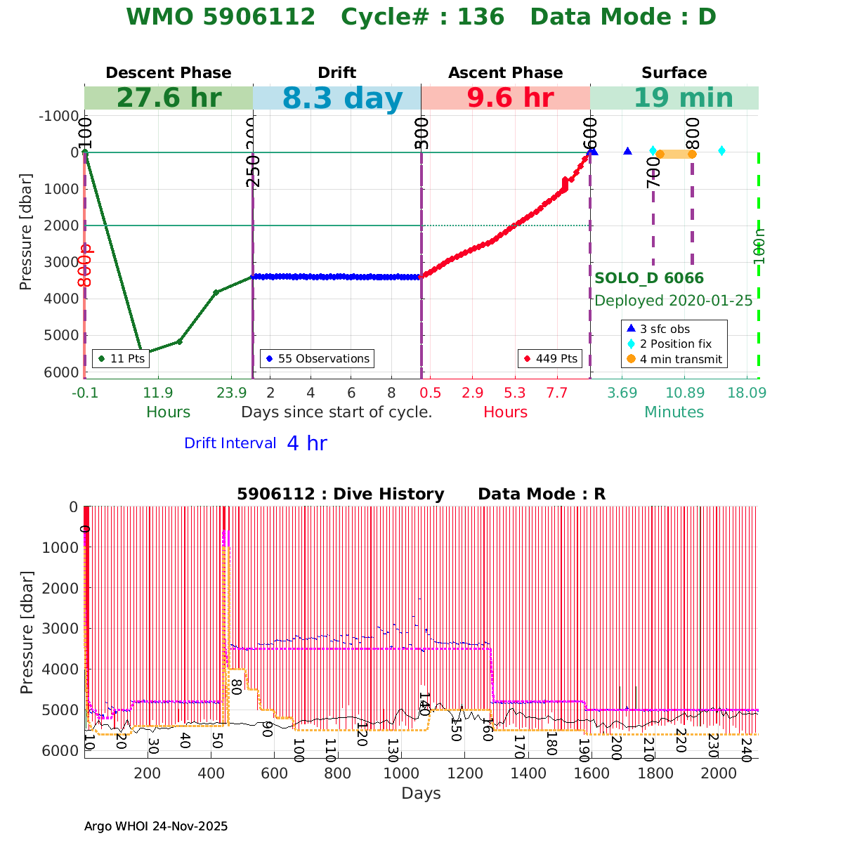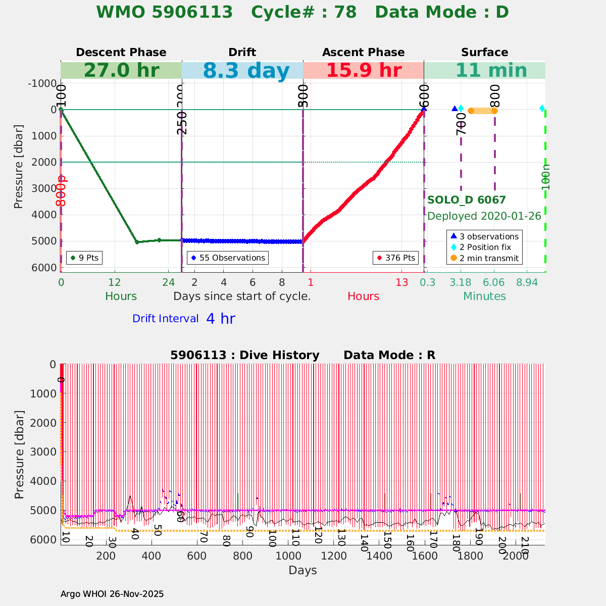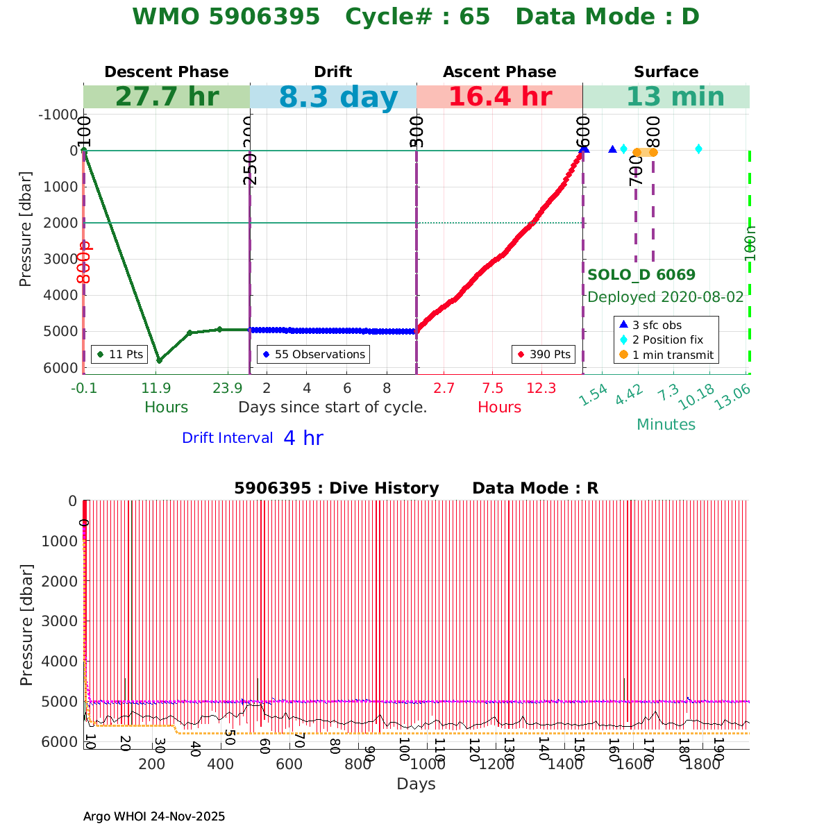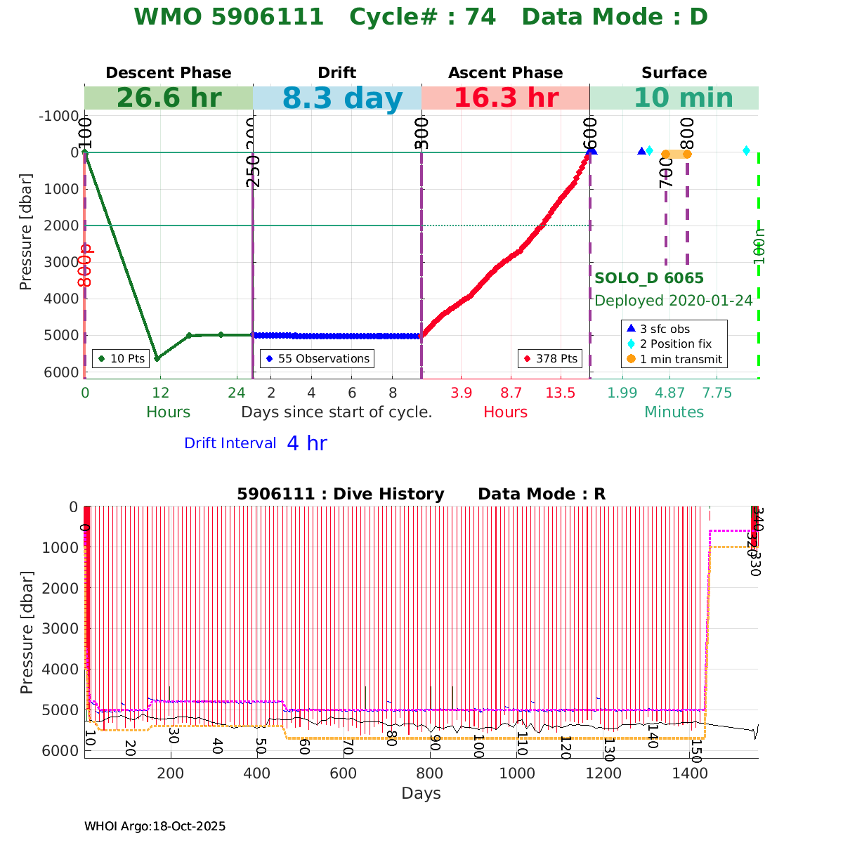 | WMO: #5906111 DAC: aoml PI: Dean ROEMMICH SOLO_D: #6065 KISTLER_10153PSIA: #5251184 SBE61: #5712 Altimeter Comparison (IFREMER) EuroArgo Link | ![]() |