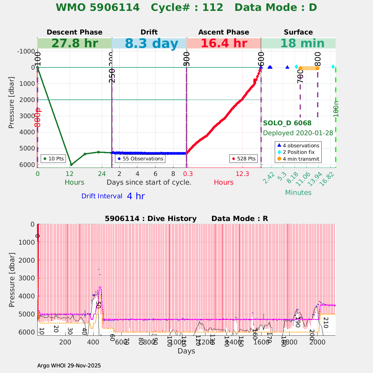 | WMO: #6903029 DAC: coriolis PI: Damien DESBRUYERES ARVOR_D: # KISTLER_10153PSIA: #5280639 SBE41CP_V7.2.5: #11304 AANDERAA_OPTODE_4330: #3254 Altimeter Comparison (IFREMER) EuroArgo Link | ![]() |