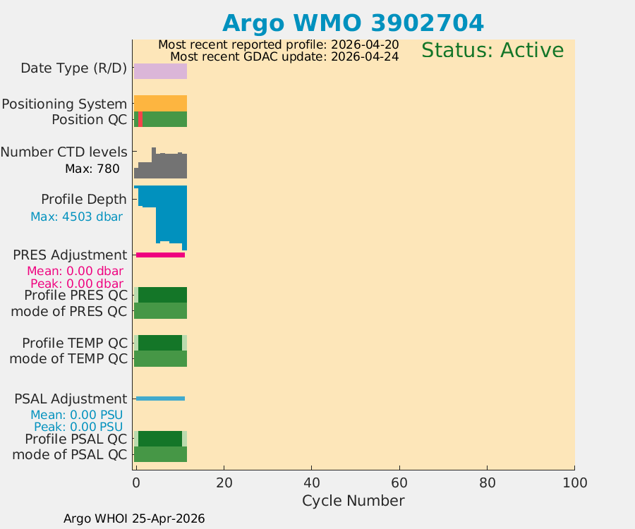 | WMO: #3902699 DAC: jma PI: Shigeki HOSODA NINJA_D: #47 SBE41CP: #20602 AROD_FT: #0106 Altimeter Comparison (IFREMER) EuroArgo Link | n/a | n/a | n/a | n/a | n/a | n/a |