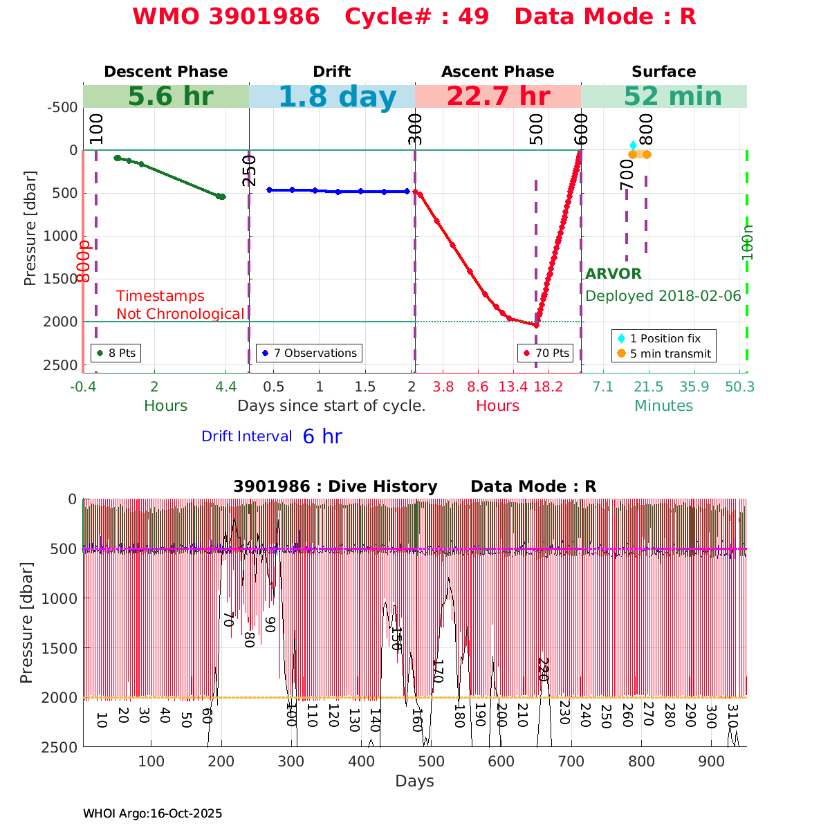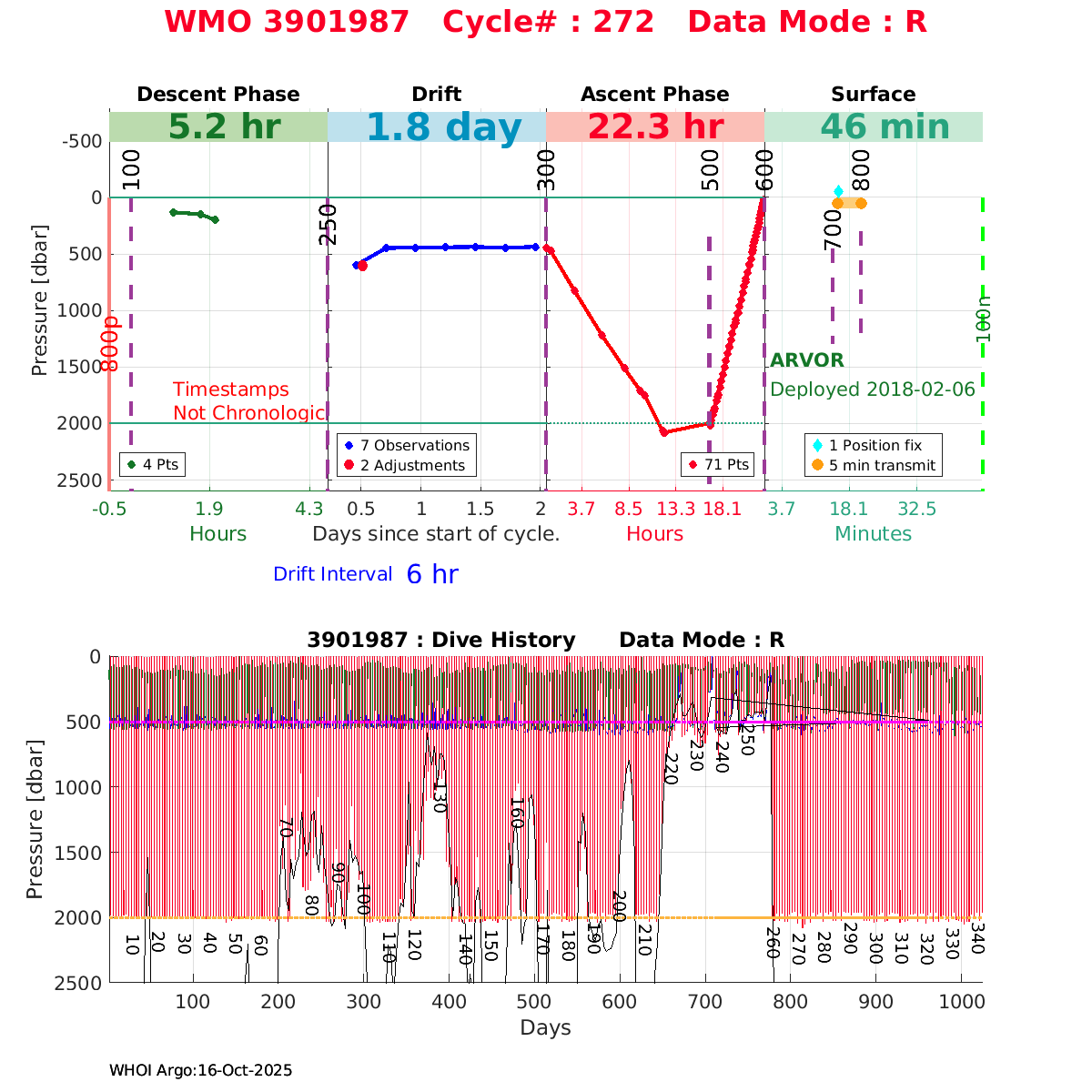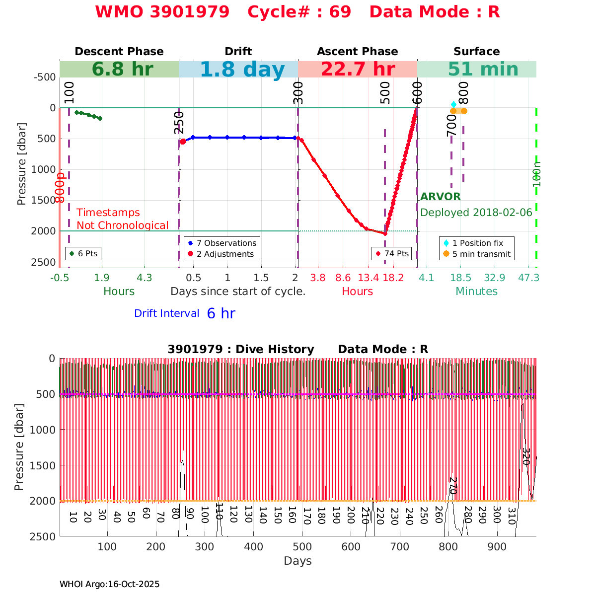 | WMO: #6902851 DAC: coriolis PI: Fabrizio D'ORTENZIO ARVOR: # FLOATCLOCK: # DRUCK_2900PSIA: #10596223 SBE41CP_V7.2.5: #9601 Altimeter Comparison (IFREMER) EuroArgo Link | ![]() |