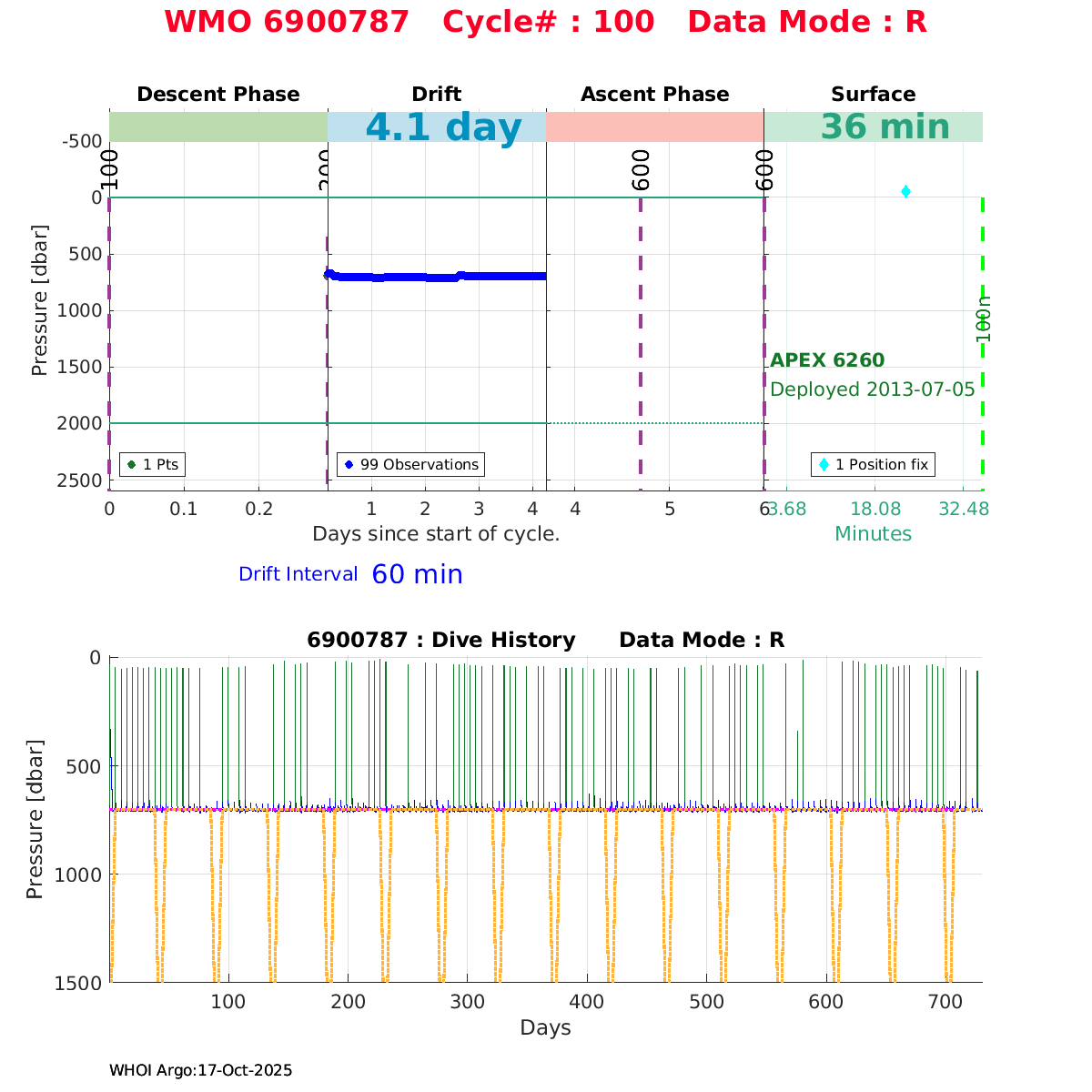 | WMO: #6900787 DAC: coriolis PI: Pedro VELEZ APEX: #6260 DRUCK_2900PSIA: #3469275 SBE41CP: #4122 Altimeter Comparison (IFREMER) EuroArgo Link | ![]() |