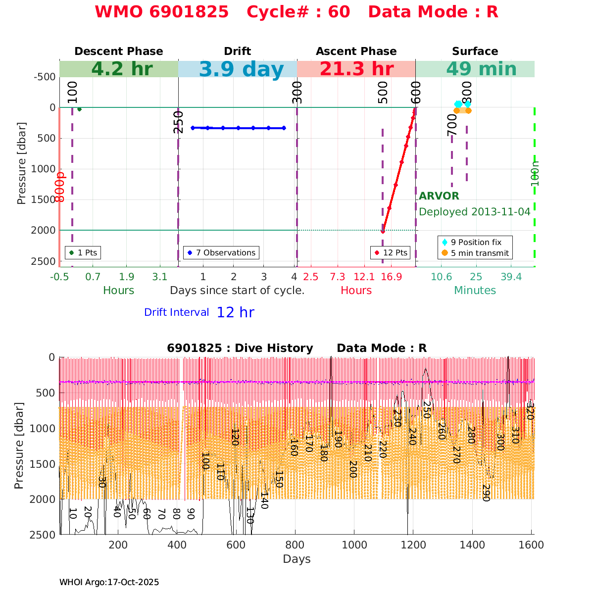 | WMO: #6901825 DAC: coriolis PI: Pierre-Marie POULAIN ARVOR: # KISTLER_2900PSIA: #2097380 SBE41CP_V2: #4313 Altimeter Comparison (IFREMER) EuroArgo Link | ![]() |