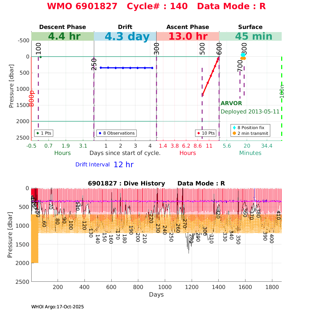 | WMO: #6901827 DAC: coriolis PI: Pierre-Marie POULAIN ARVOR: # KISTLER_2900PSIA: #2099817 SBE41CP_V1.3: #4527 Altimeter Comparison (IFREMER) EuroArgo Link | ![]() |