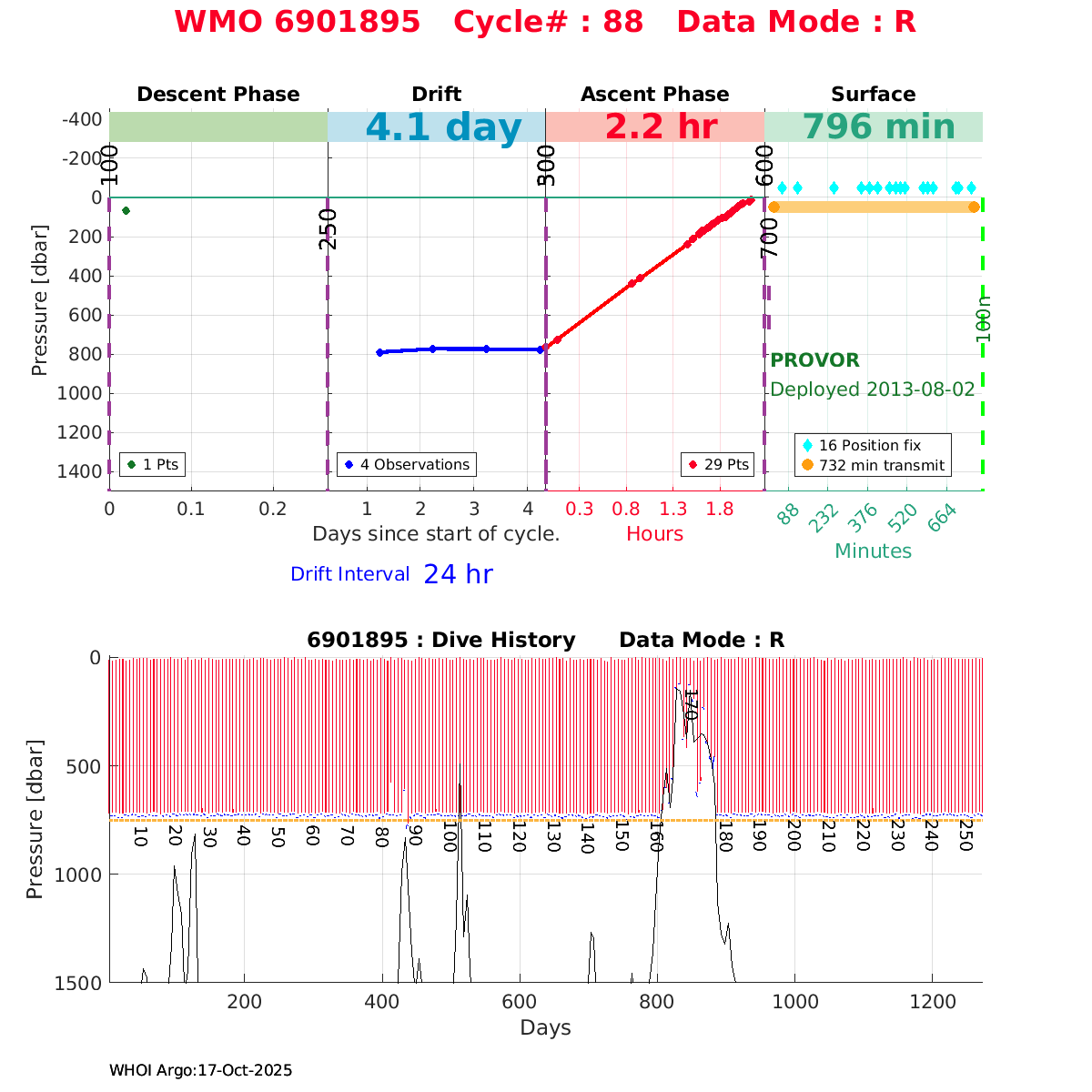 | WMO: #6901895 DAC: coriolis PI: Bettina FACH PROVOR: # DRUCK_2900PSIA: #n/a SBE41CP: #5180 AANDERAA_OPTODE_4330: #n/a Altimeter Comparison (IFREMER) EuroArgo Link | n/a | n/a | ![]() |