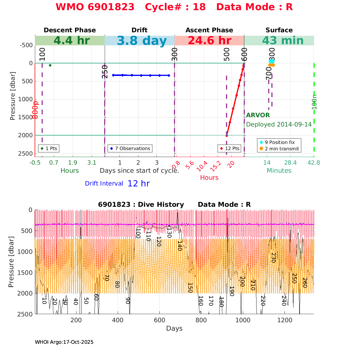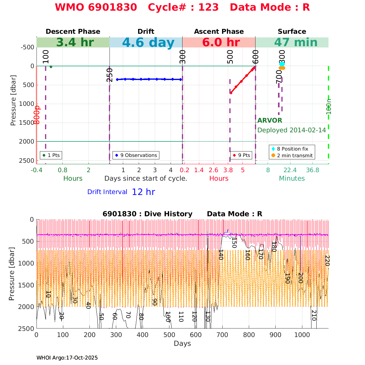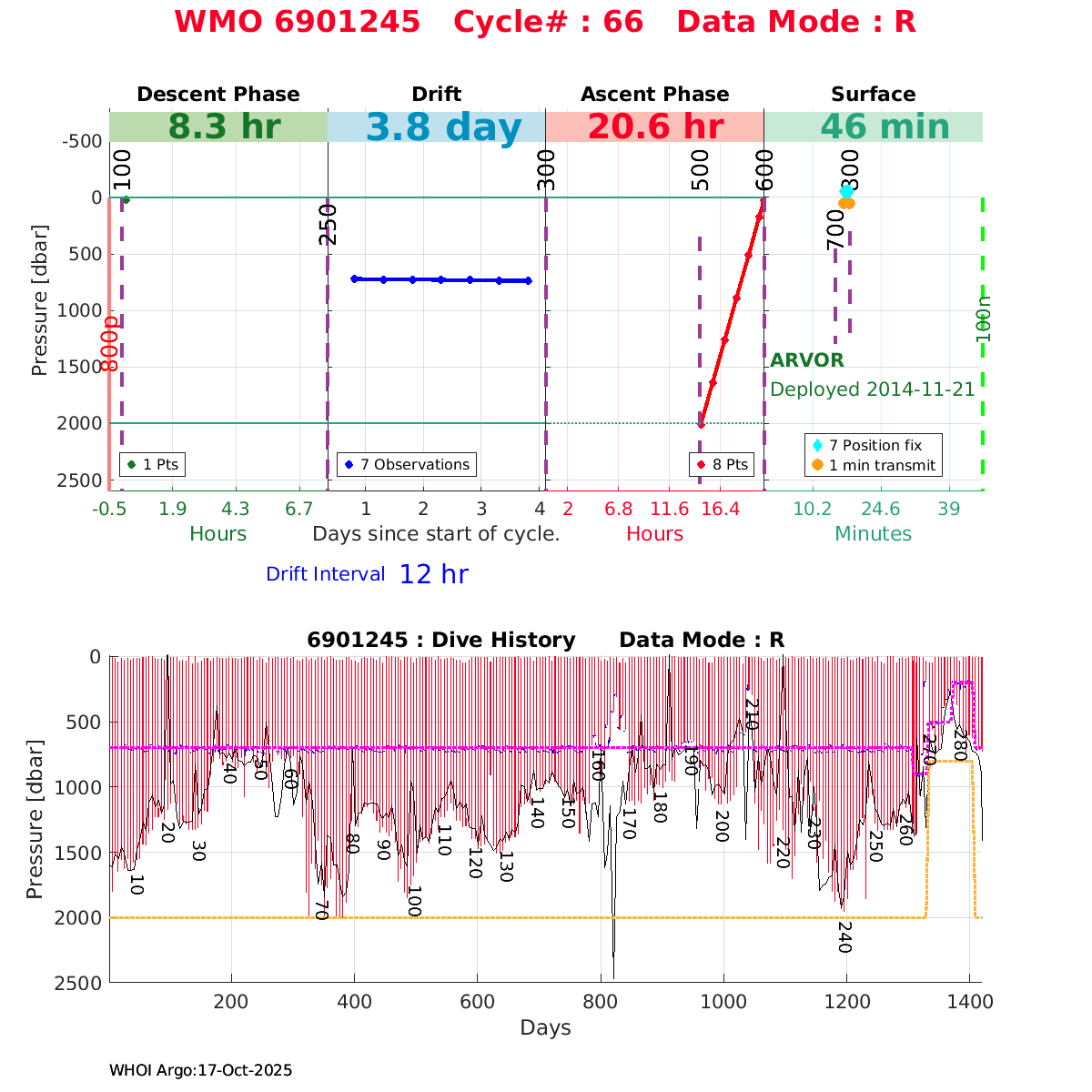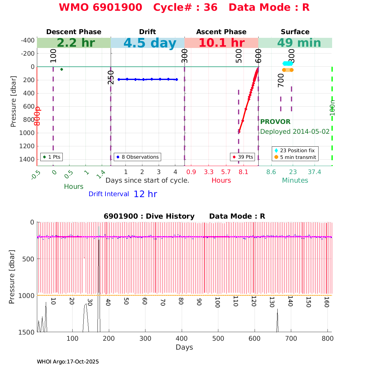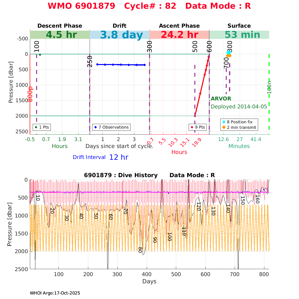 | WMO: #6901879 DAC: coriolis PI: Pierre-Marie POULAIN ARVOR: # FLOATCLOCK: # KISTLER_2900PSIA: #2085990 SBE41CP_V1.3: #4528 Altimeter Comparison (IFREMER) EuroArgo Link | ![]() |
