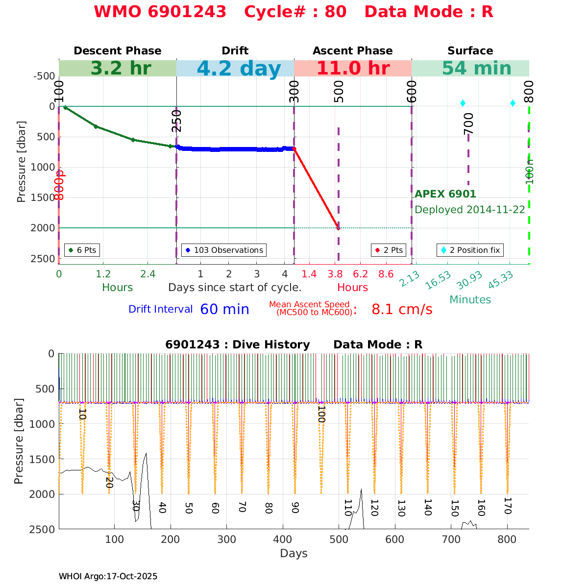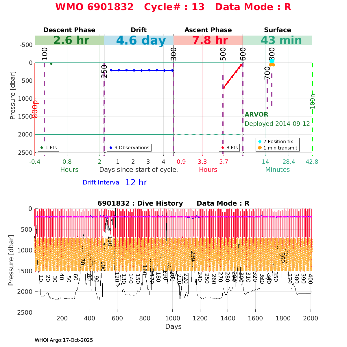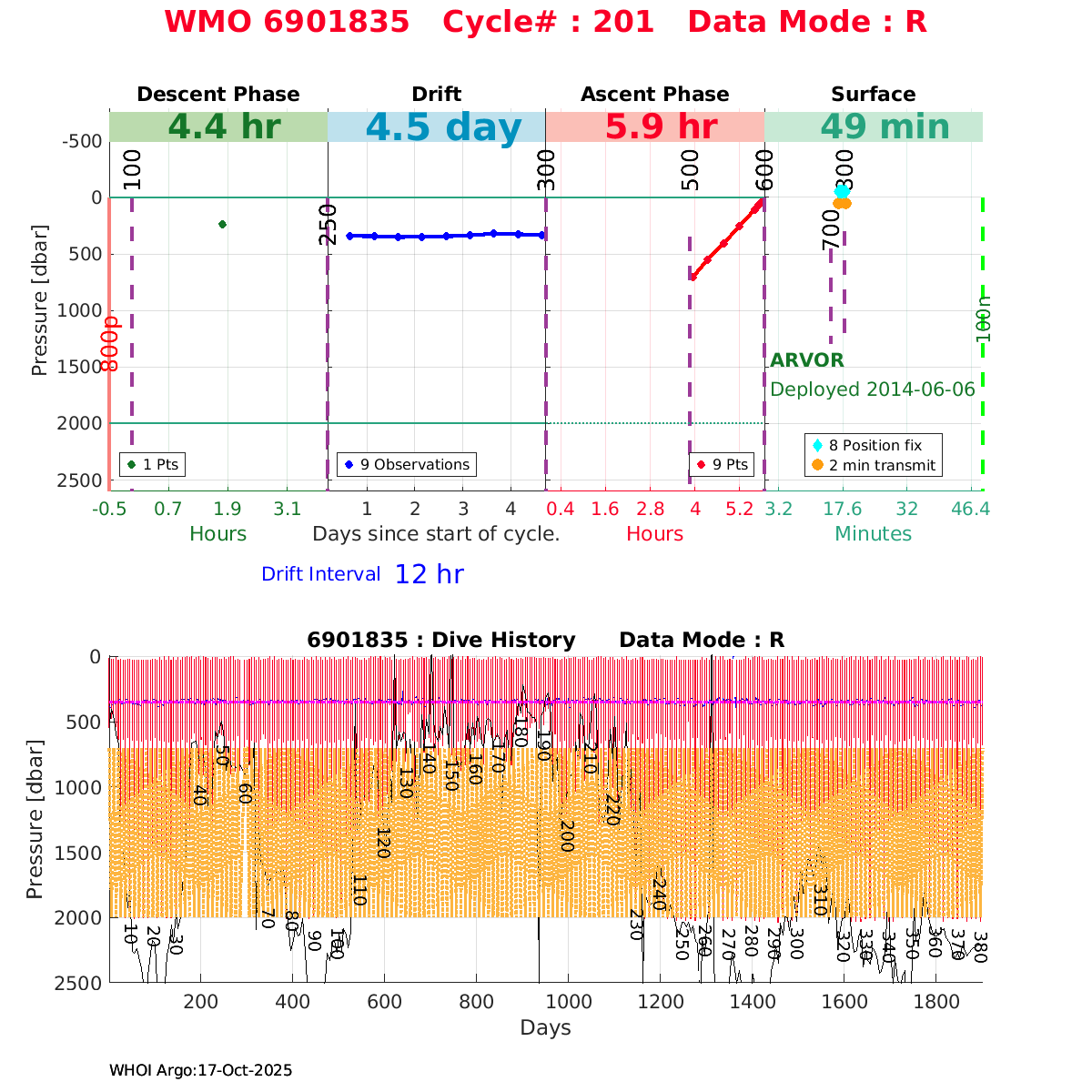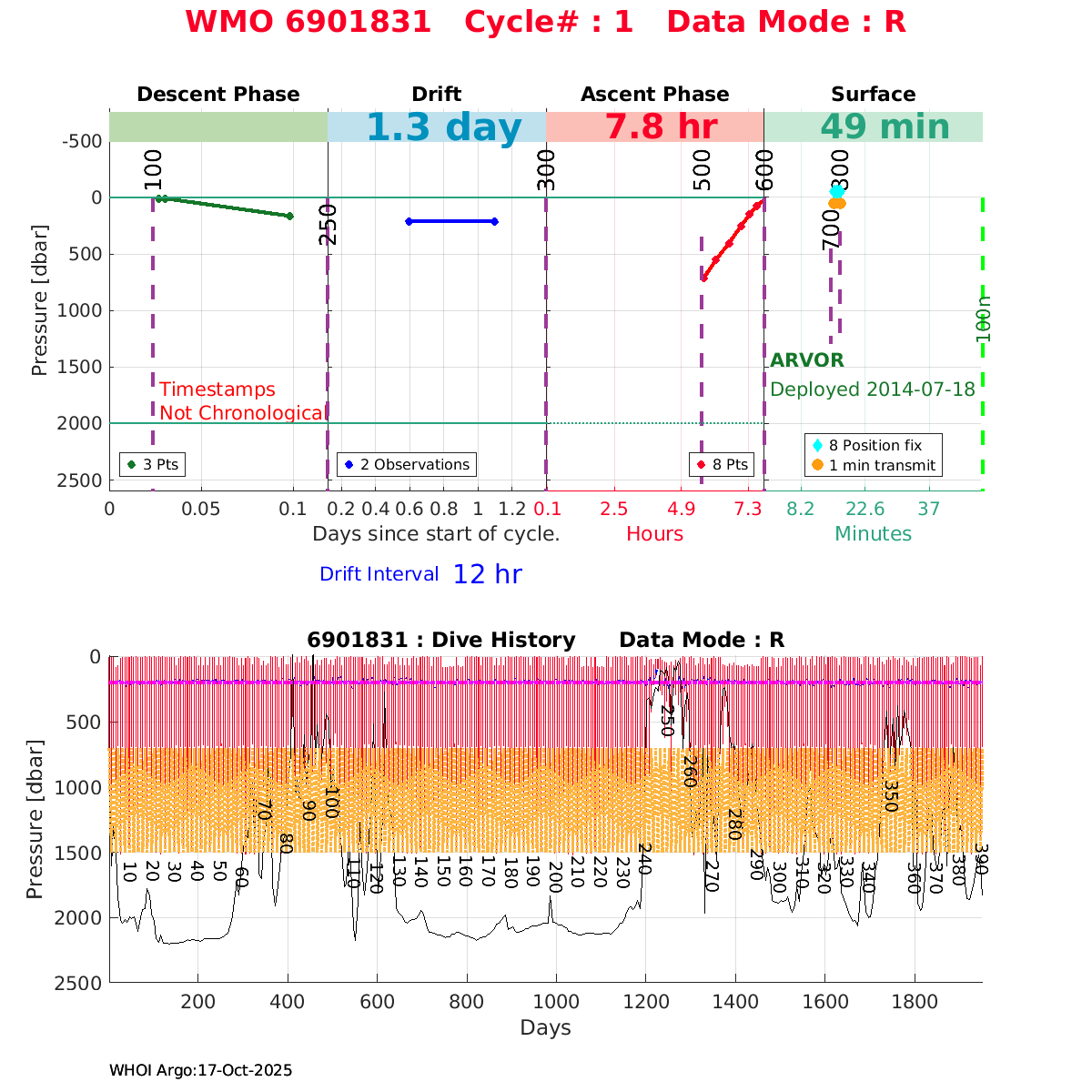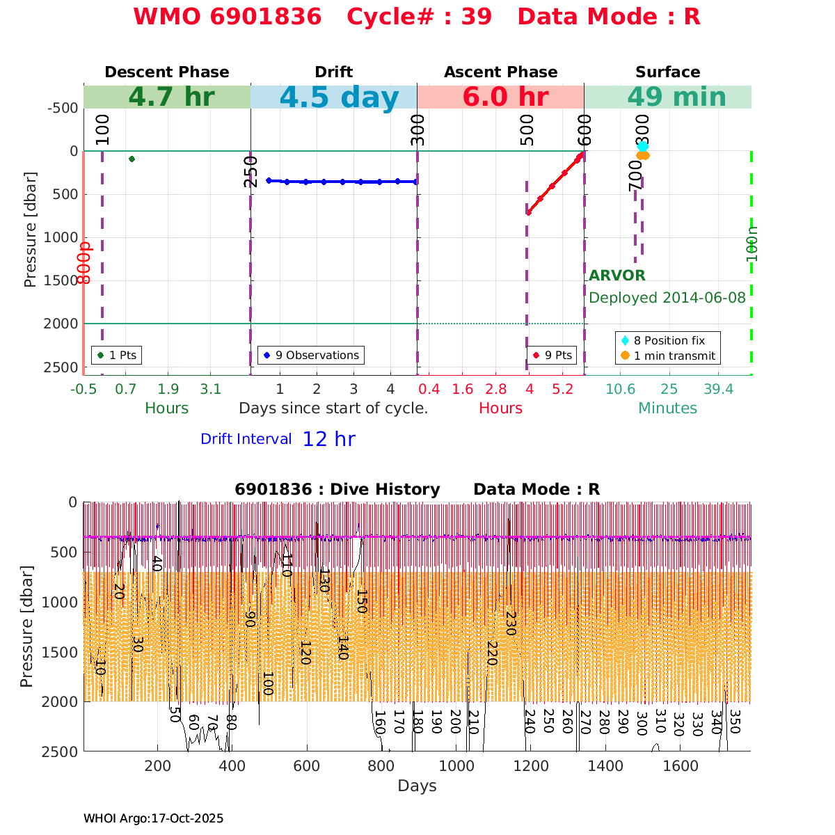 | WMO: #6901879 DAC: coriolis PI: Pierre-Marie POULAIN ARVOR: # FLOATCLOCK: # KISTLER_2900PSIA: #2085990 SBE41CP_V1.3: #4528 Altimeter Comparison (IFREMER) EuroArgo Link | ![]() |