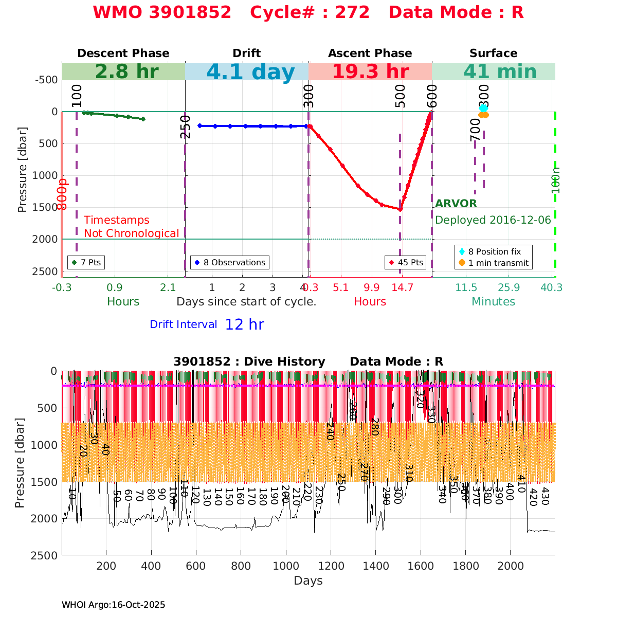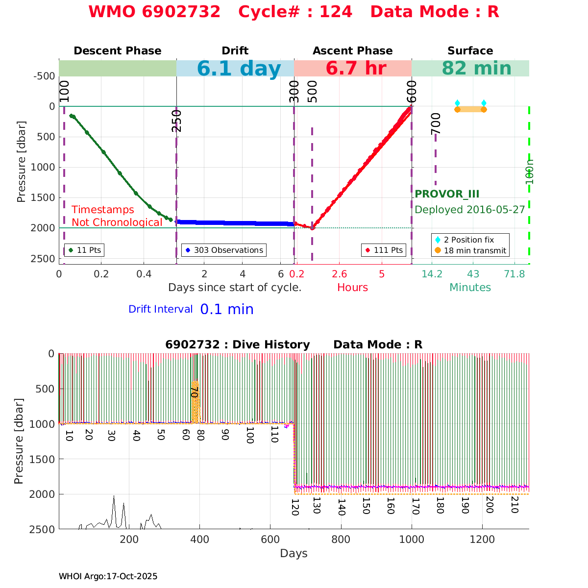 | WMO: #6902732 DAC: coriolis PI: Fabrizio D'ORTENZIO PROVOR_III: # KISTLER_2900PSIA: #2114955 SBE41CP: #4729 SATLANTIC_OCR504_ICSW: #40258 ECO_FLBBCD: #2758 Altimeter Comparison (IFREMER) EuroArgo Link | ![]() |