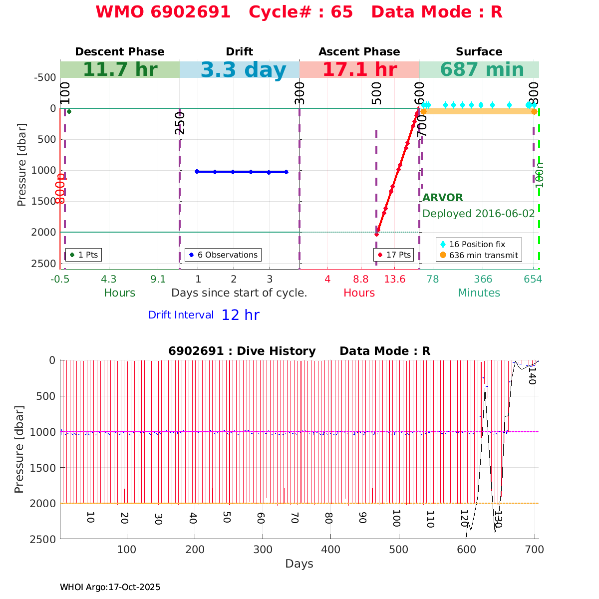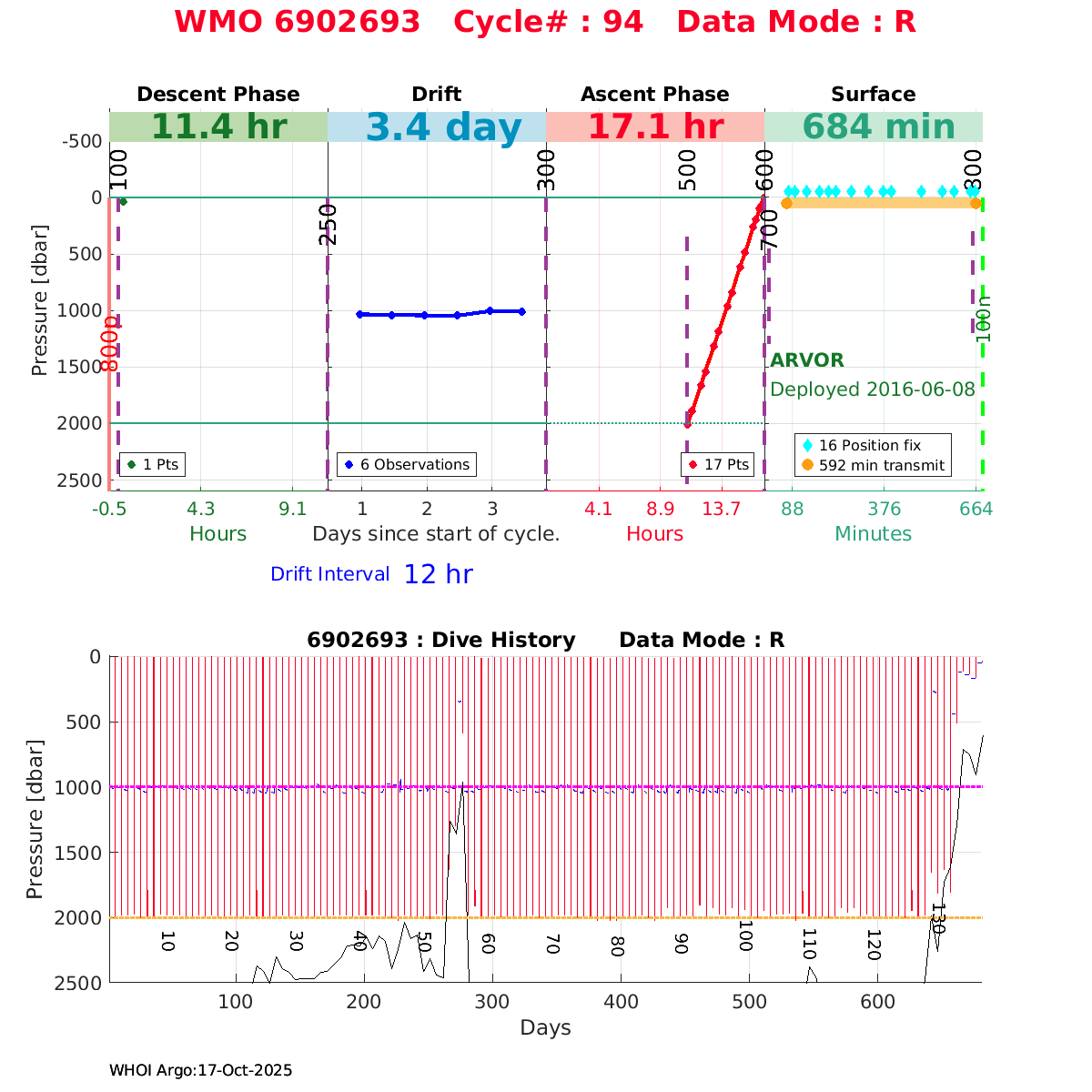 | WMO: #6902693 DAC: coriolis PI: Laurent COPPOLA ARVOR: # FLOATCLOCK: # KISTLER_2900PSIA: #4731025 SBE41CP_V7.2.5: #7959 Altimeter Comparison (IFREMER) EuroArgo Link | ![]() |