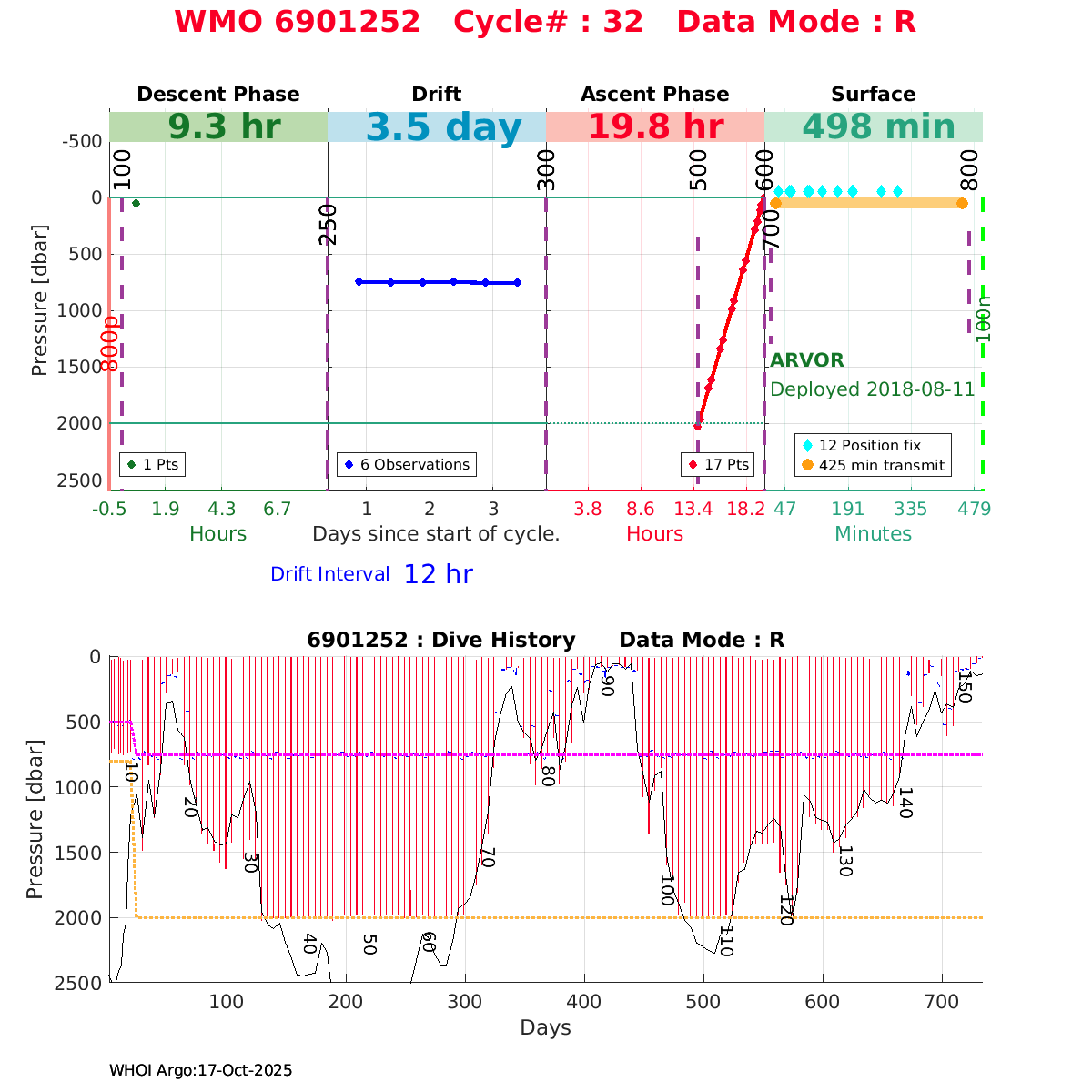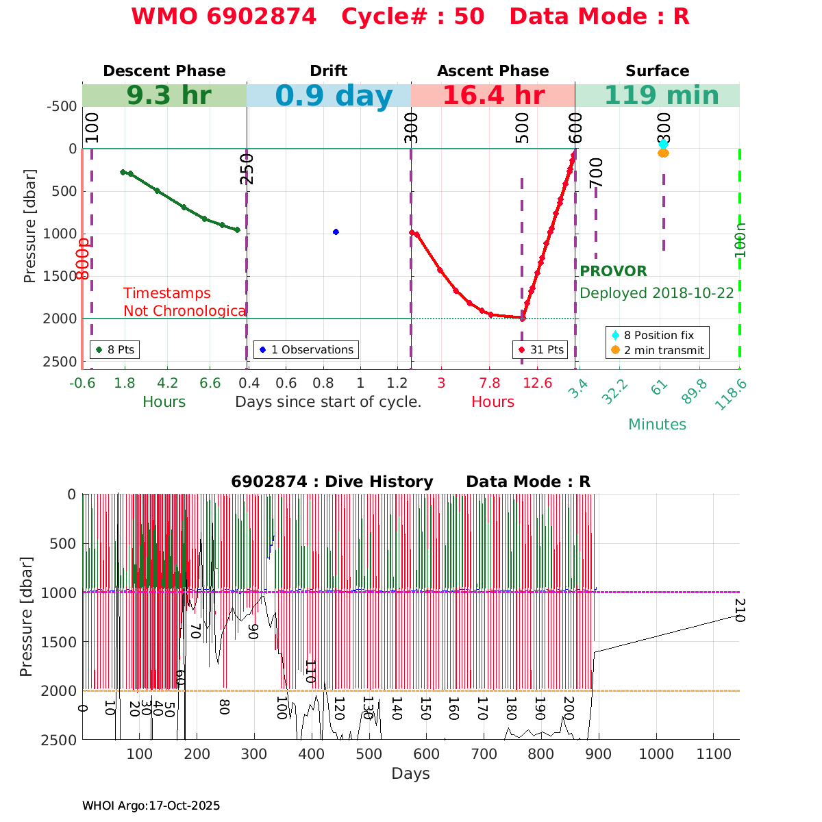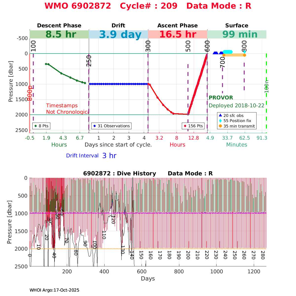 | WMO: #6903246 DAC: coriolis PI: Pierre-Marie POULAIN ARVOR: # DRUCK_2900PSIA: #10726986 SBE41CP_V7.2.5: #10113 AANDERAA_OPTODE_4330: #2906 Altimeter Comparison (IFREMER) EuroArgo Link | ![]() |
