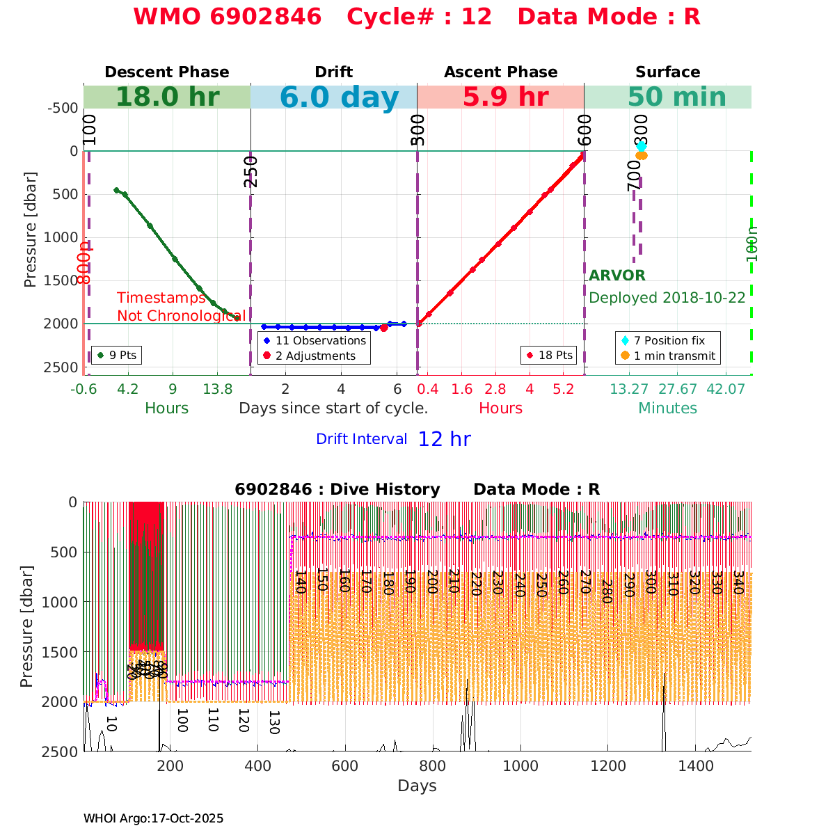| WMO: #6902846 DAC: coriolis PI: Franck DUMAS ARVOR: # FLOATCLOCK: # DRUCK_2900PSIA: #10597263 SBE41CP_V7.2.5: #9101 Altimeter Comparison (IFREMER) EuroArgo Link | ![]() |