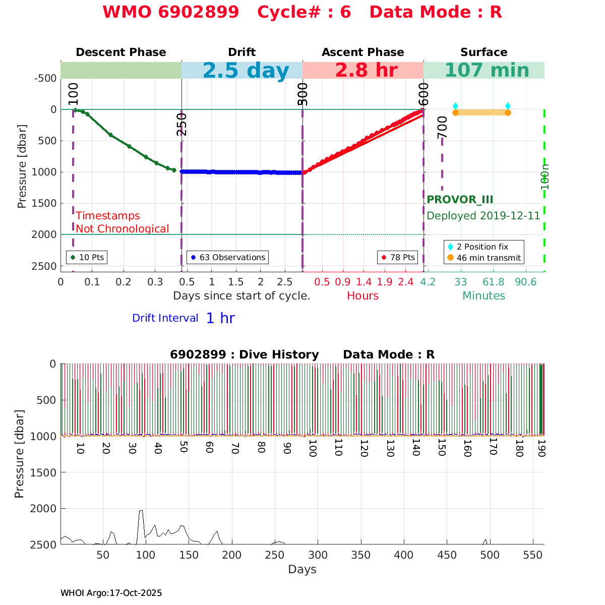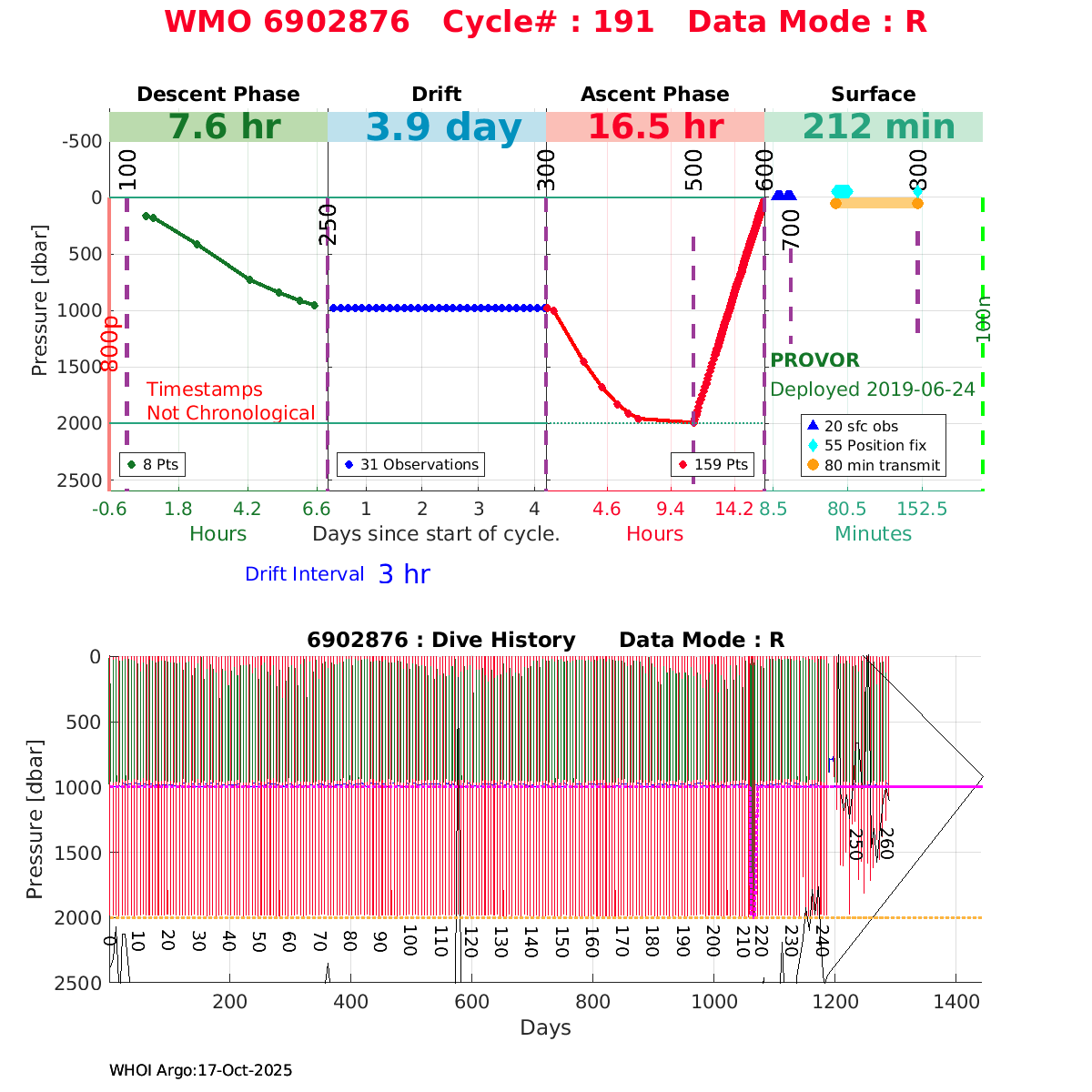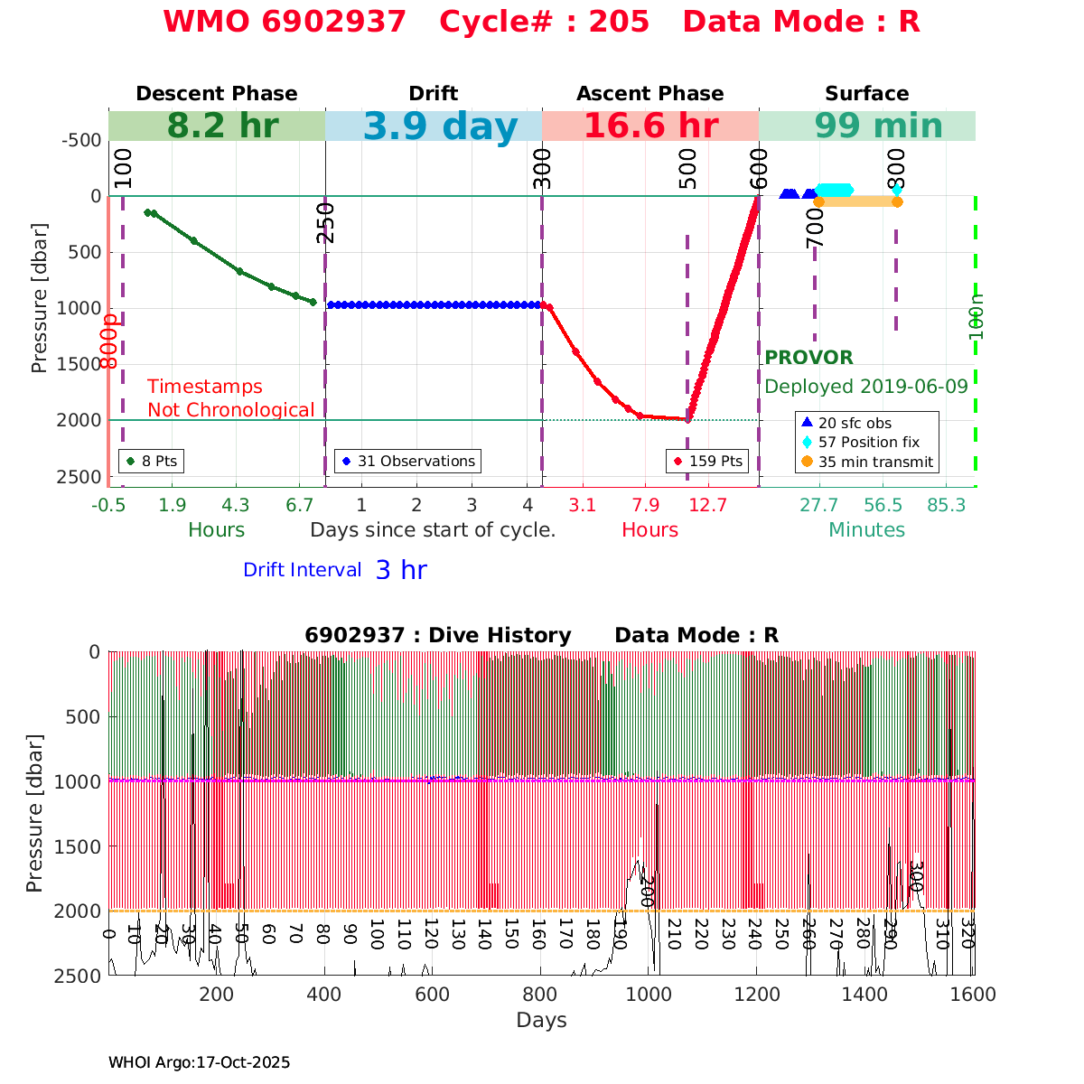 | WMO: #6902899 DAC: coriolis PI: Fabrizio D'ORTENZIO PROVOR_III: # KISTLER_2900PSIA: #2126860 SBE41CP: #5345 SATLANTIC_OCR504_ICSW: #40264 ECO_FLBBCD: #3112 Altimeter Comparison (IFREMER) EuroArgo Link | ![]() |