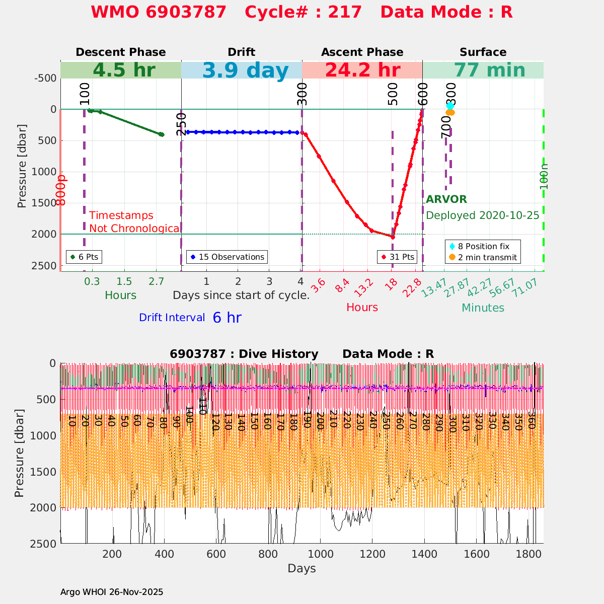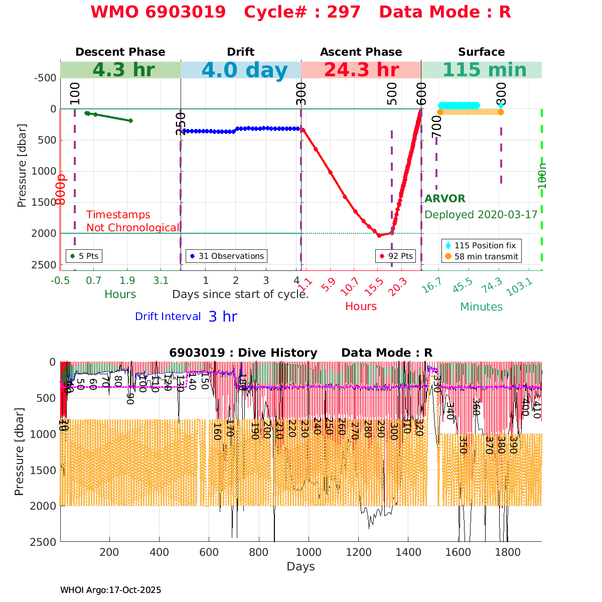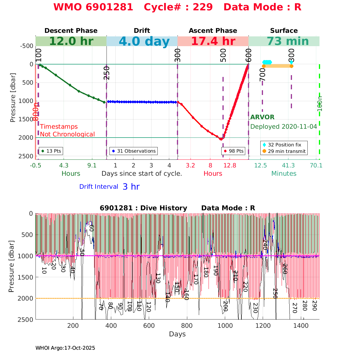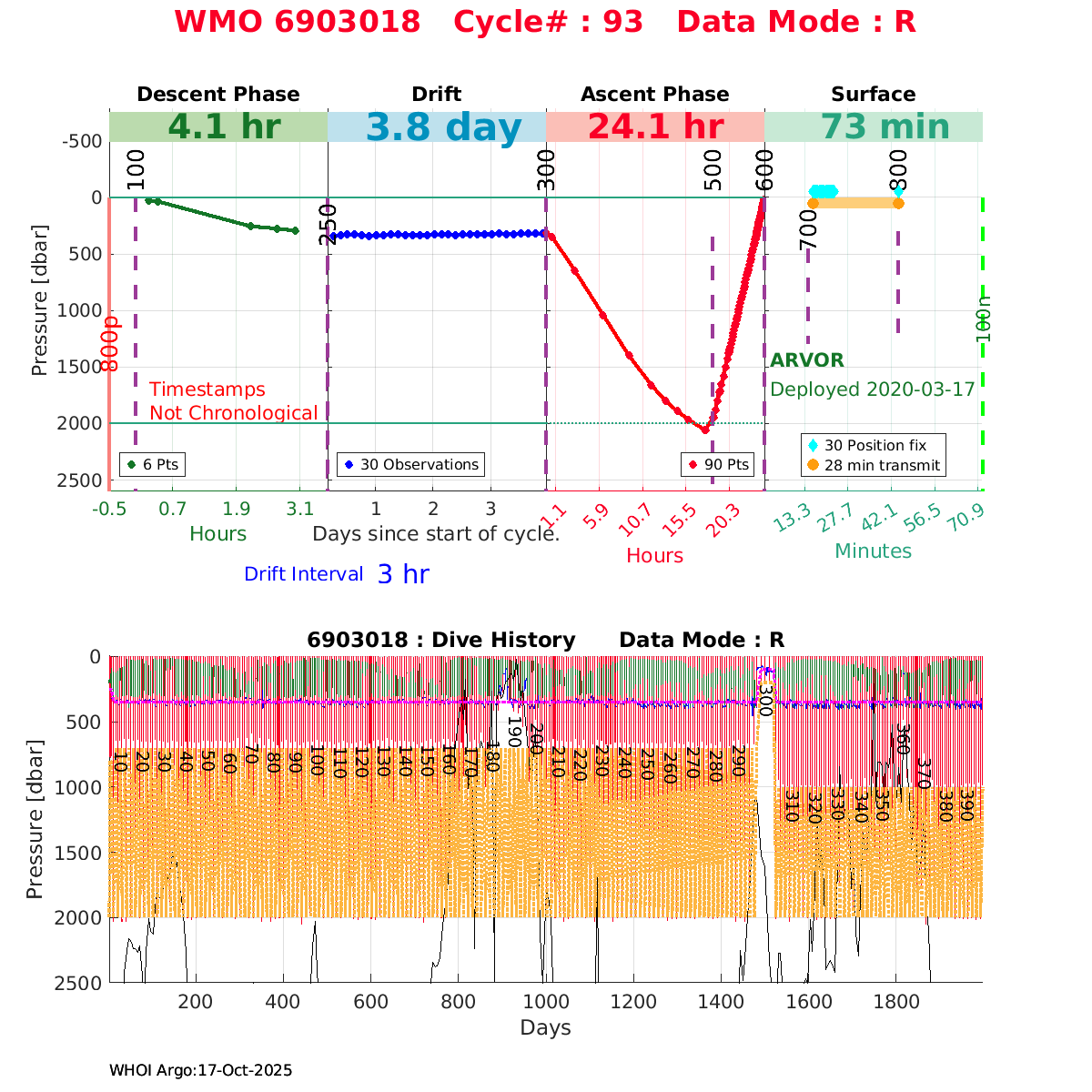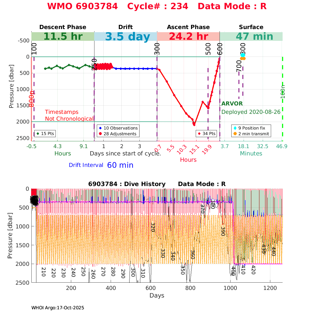 | WMO: #6903784 DAC: coriolis PI: Pierre-Marie POULAIN ARVOR: # FLOATCLOCK: # DRUCK_2900PSIA: #11162136 SBE41CP: #11711 Altimeter Comparison (IFREMER) EuroArgo Link | ![]() |