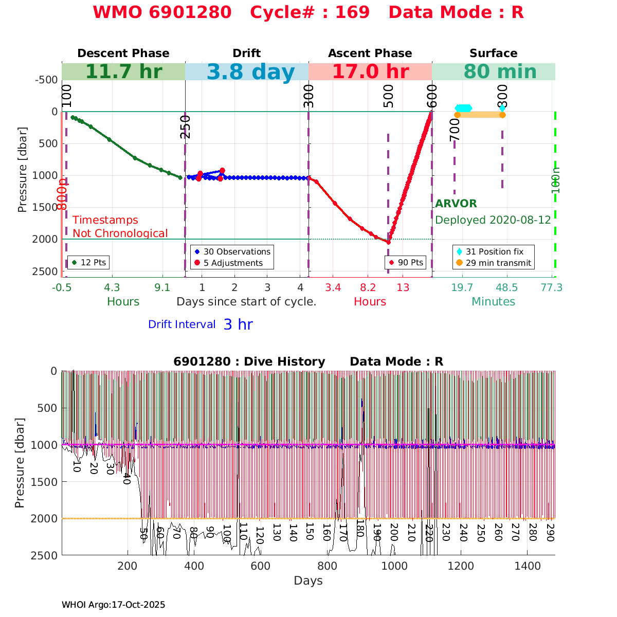 | WMO: #6903780 DAC: coriolis PI: Pierre-Marie POULAIN ARVOR: # FLOATCLOCK: # DRUCK_2900PSIA: #11325627 SBE41CP: #12236 Altimeter Comparison (IFREMER) EuroArgo Link | ![]() |