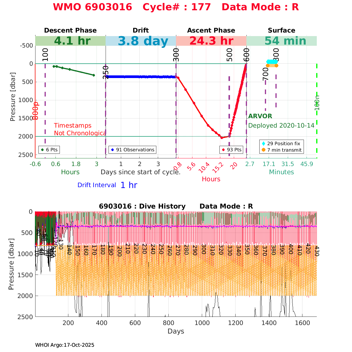 | WMO: #6903016 DAC: coriolis PI: Franck DUMAS ARVOR: # FLOATCLOCK: # DRUCK_2900PSIA: #11129426 SBE41CP_V7.2.5: #11747 Altimeter Comparison (IFREMER) EuroArgo Link | ![]() |