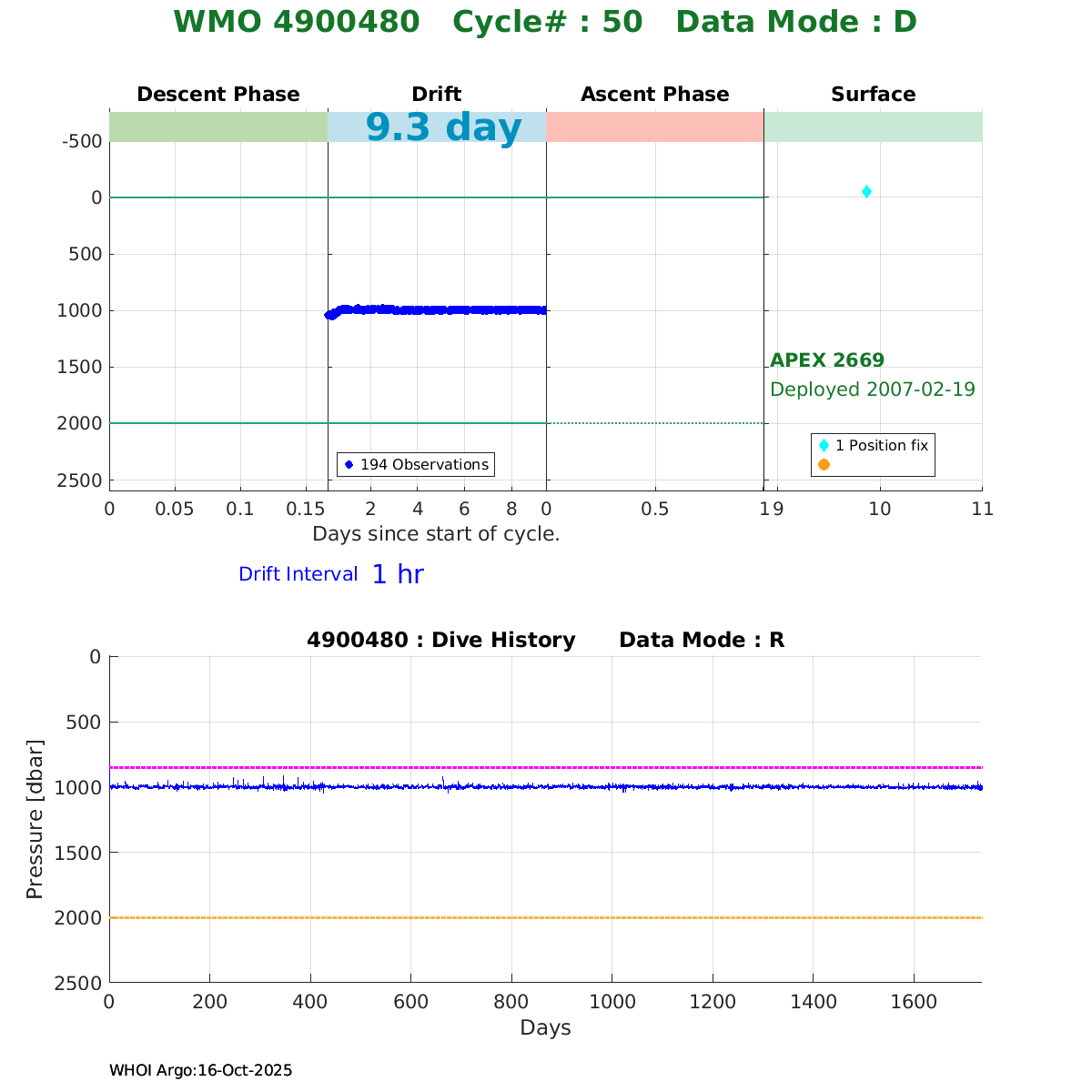 | WMO: #4901406 DAC: aoml PI: AMY BOWER APEX: #3478 SBE41CP: #2130 DRUCK_2900PSIA: #7566 Altimeter Comparison (IFREMER) EuroArgo Link | ![]() |