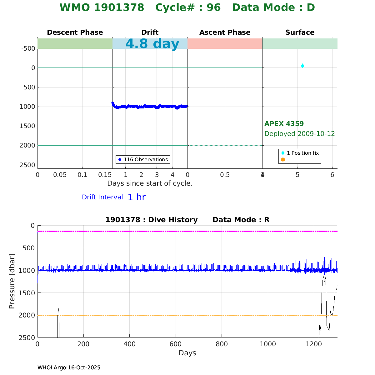 | WMO: #4901407 DAC: aoml PI: AMY BOWER APEX: #3479 SBE41CP: #2131 DRUCK_2900PSIA: #7567 Altimeter Comparison (IFREMER) EuroArgo Link | ![]() |