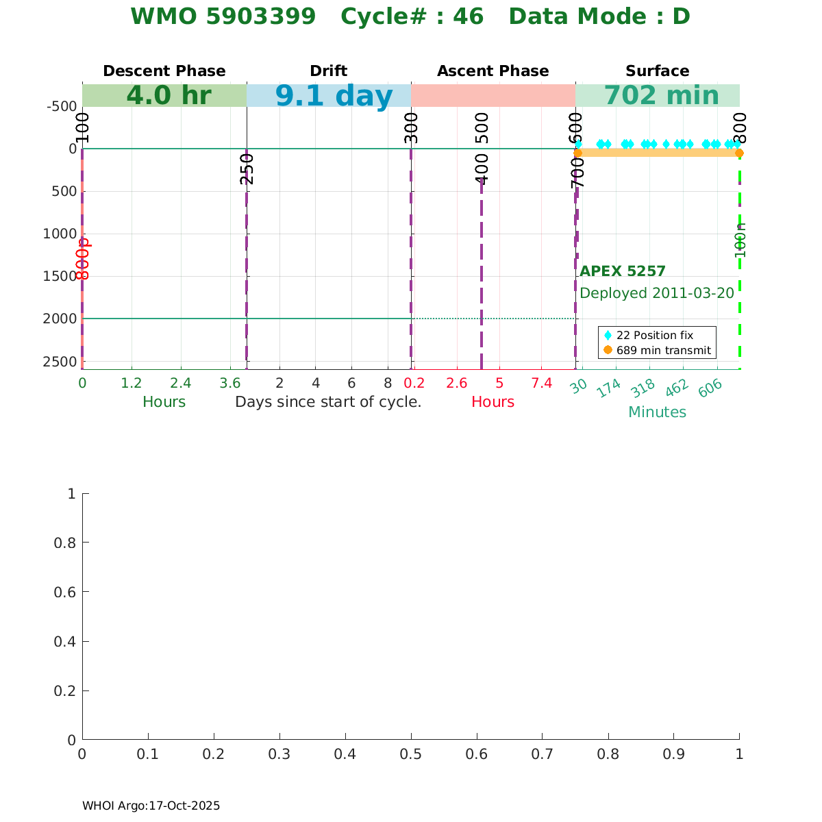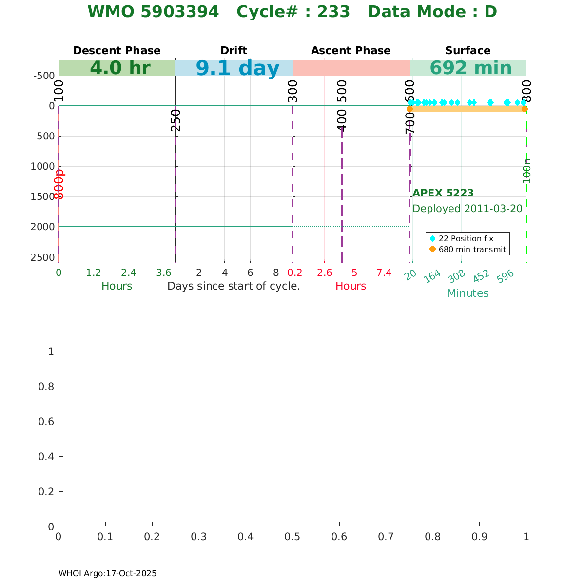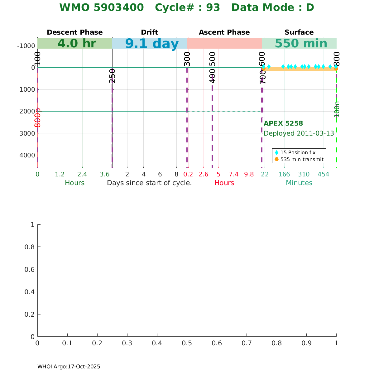 | WMO: #6900446 DAC: bodc PI: Jon Turton APEX: #5540 DRUCK_2900PSIA: #3827142 SBE41: #5319 Altimeter Comparison (IFREMER) EuroArgo Link | ![]() |
