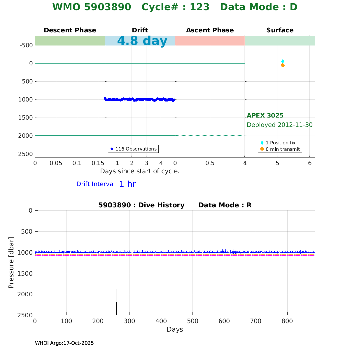 | WMO: #6901145 DAC: bodc PI: Jon Turton APEX: #5013 DRUCK_2900PSIA: #3537421 SBE41: #4890 Altimeter Comparison (IFREMER) EuroArgo Link | ![]() |
