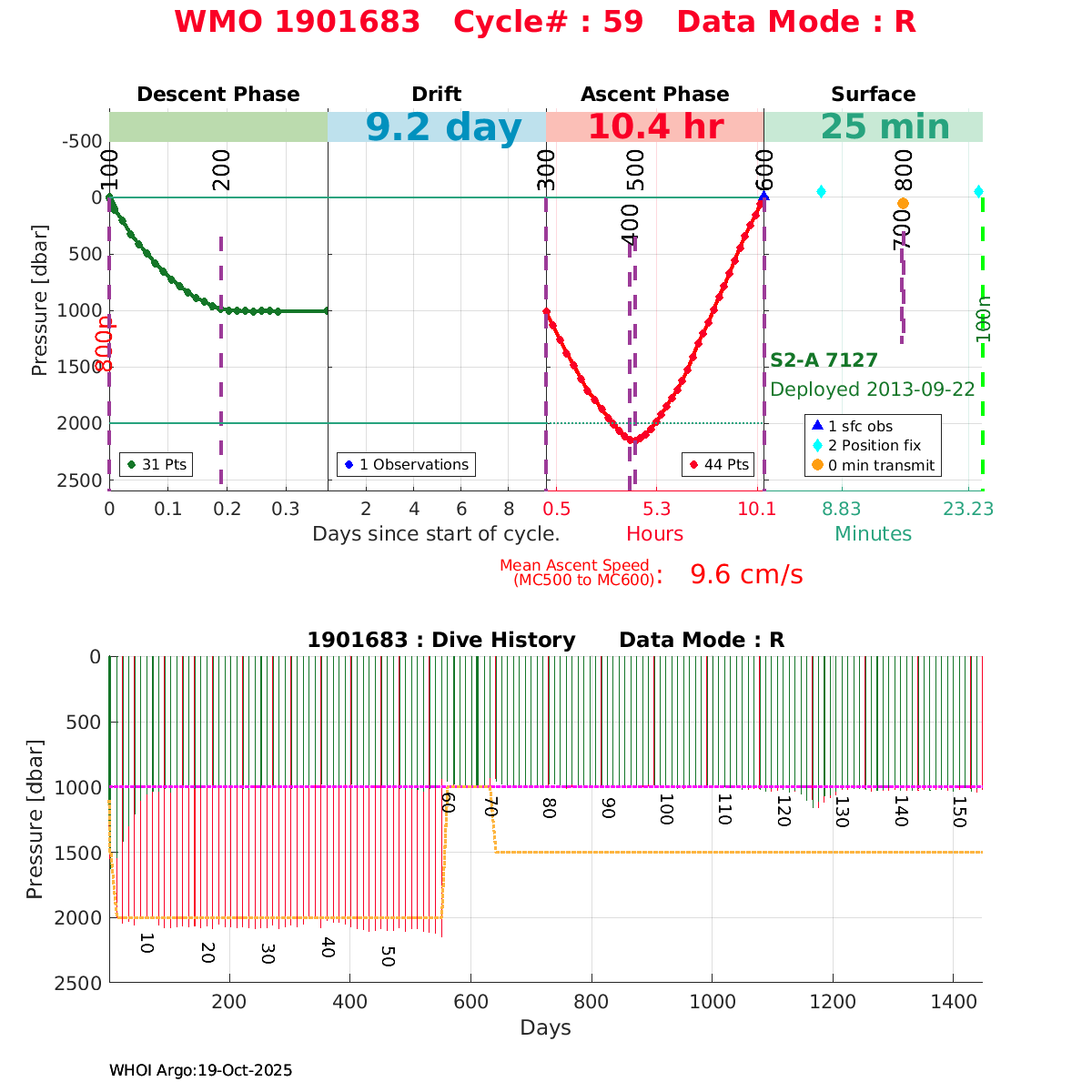 | WMO: #1901683 DAC: aoml PI: BRECK OWENS, STEVE JAYNE, P.E. ROBBINS S2-A: #7127 SBE41CP: #3744 DRUCK_2900PSIA: #3244219 Altimeter Comparison (IFREMER) EuroArgo Link | ![]() |