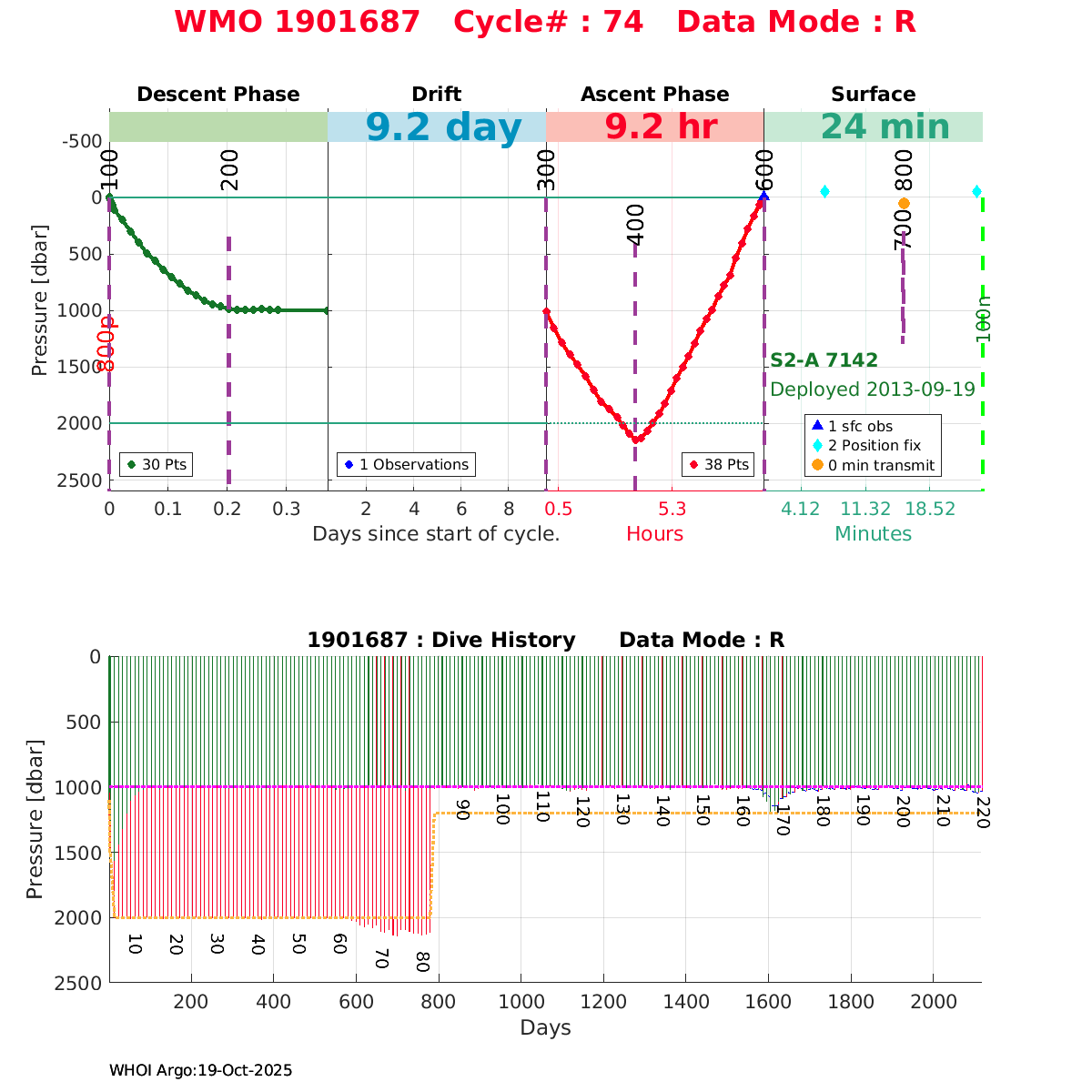| WMO: #1901688 DAC: aoml PI: BRECK OWENS, STEVE JAYNE, P.E. ROBBINS S2-A: #7143 SBE41CP: #4802 DRUCK_2900PSIA: #3464319 Altimeter Comparison (IFREMER) EuroArgo Link | ![]() |
