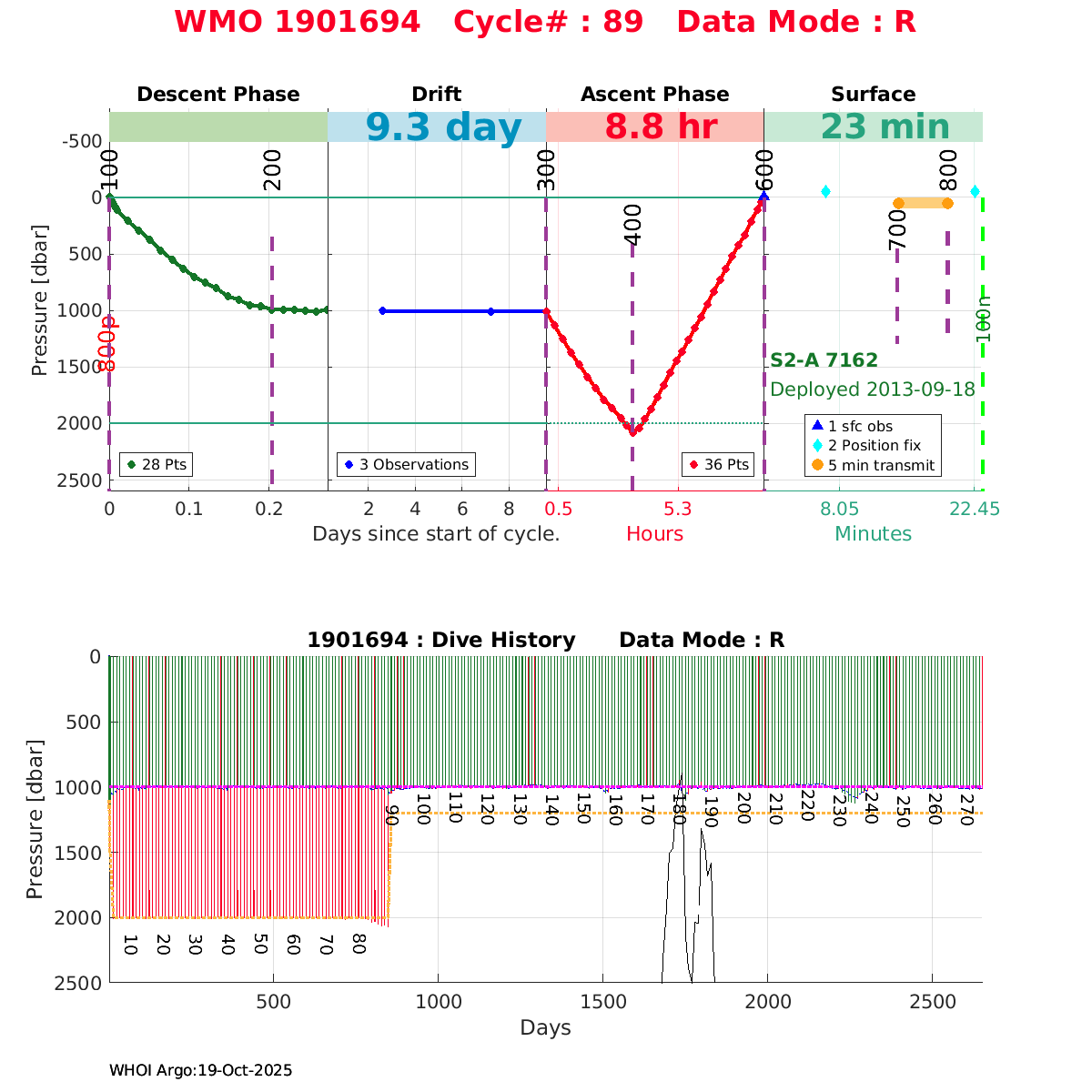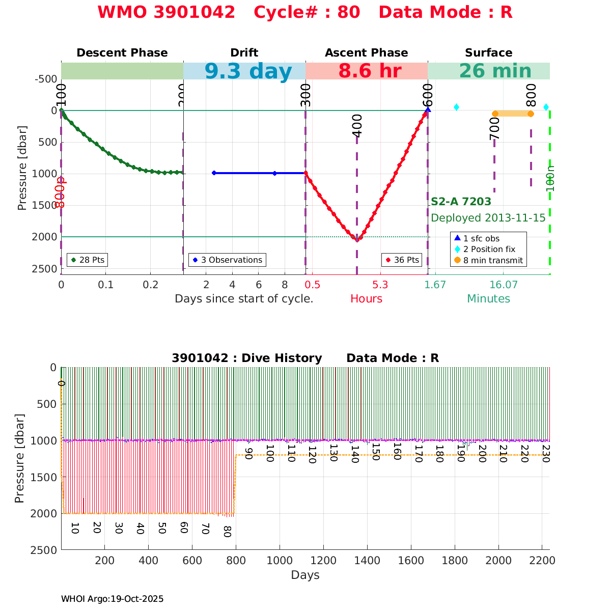 | WMO: #6901525 DAC: coriolis PI: Fabrizio D'ORTENZIO PROVOR_III: # KISTLER_2900PSIA: #2080484 SBE41CP: #3240 SATLANTIC_OCR504_ICSW: #40247 ECO_FLBBCD: #2647 Altimeter Comparison (IFREMER) EuroArgo Link | ![]() |