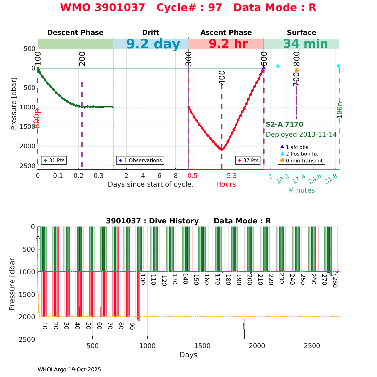 | WMO: #4901484 DAC: aoml PI: BRECK OWENS, STEVE JAYNE, P.E. ROBBINS S2-A: #7169 SBE41CP: #4876 DRUCK_2900PSIA: #3628284 Altimeter Comparison (IFREMER) EuroArgo Link | ![]() |