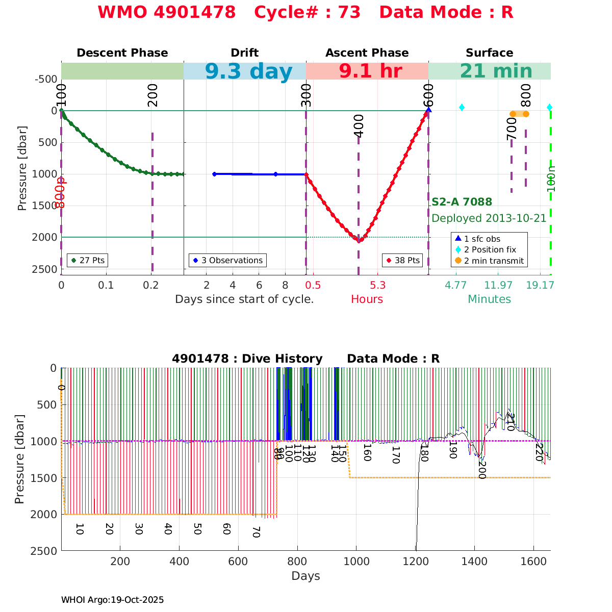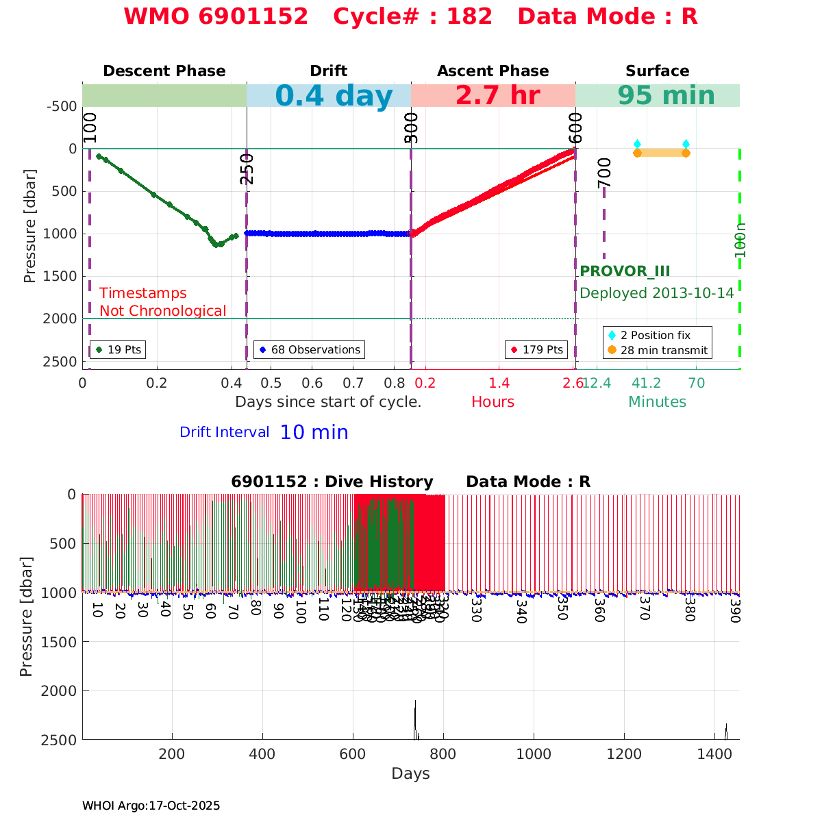 | WMO: #4901587 DAC: aoml PI: BRECK OWENS, STEVE JAYNE, P.E. ROBBINS S2-A: #7175 SBE41CP: #4914 DRUCK_2900PSIA: #3590584 Altimeter Comparison (IFREMER) EuroArgo Link | ![]() |