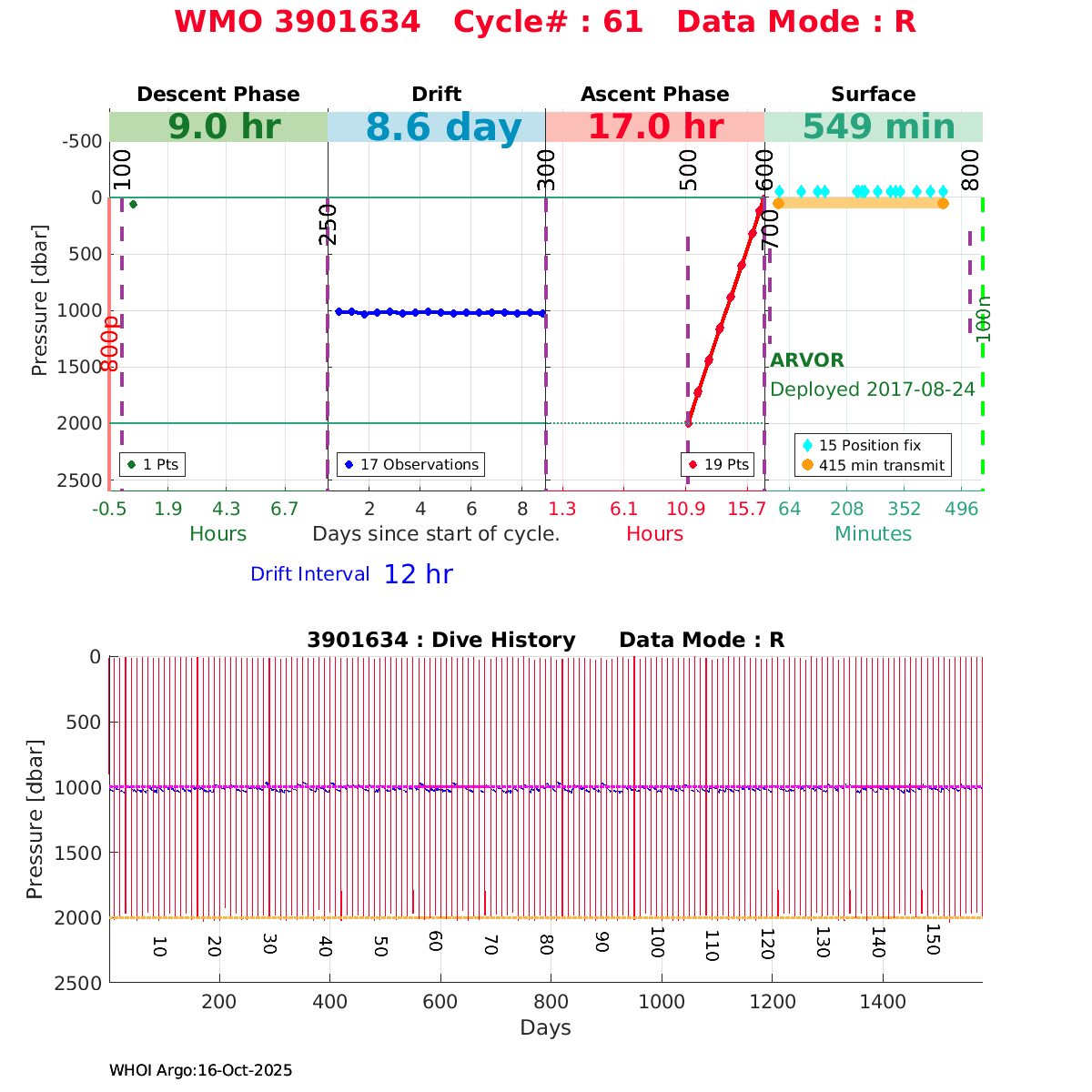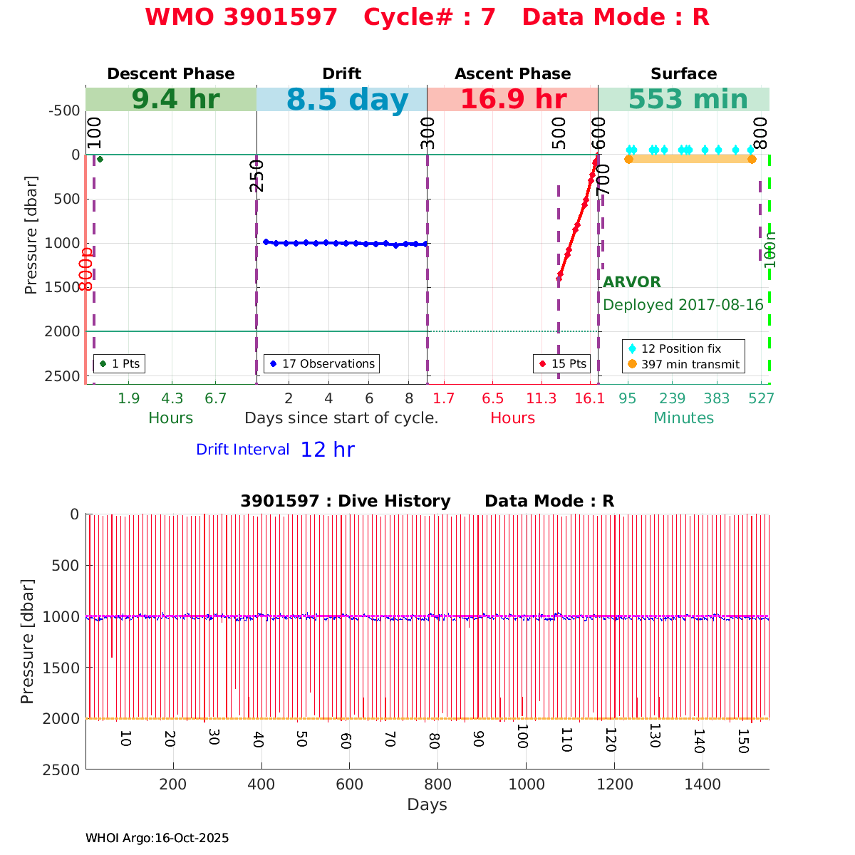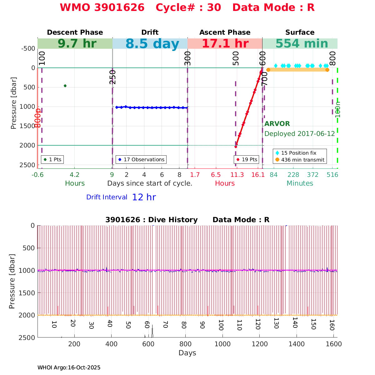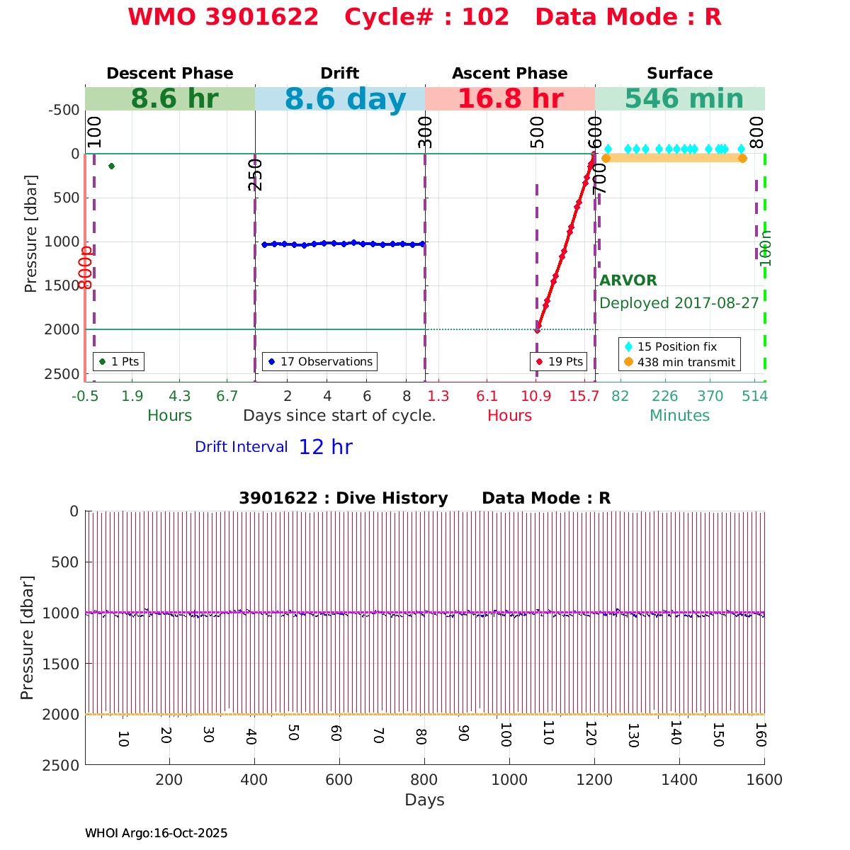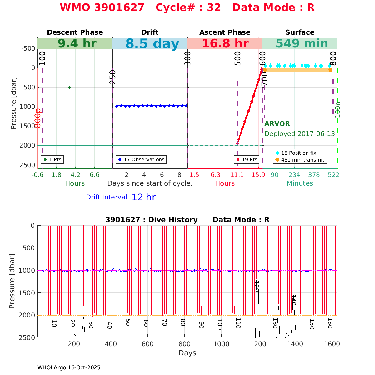 | WMO: #3901640 DAC: coriolis PI: Birgit KLEIN APEX: #8237 DRUCK_2900PSIA: #10651117 SBE41: #9792 Altimeter Comparison (IFREMER) EuroArgo Link | ![]() |