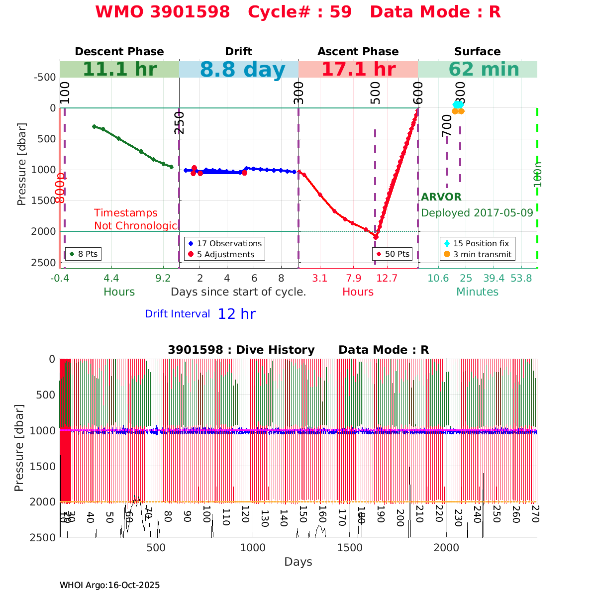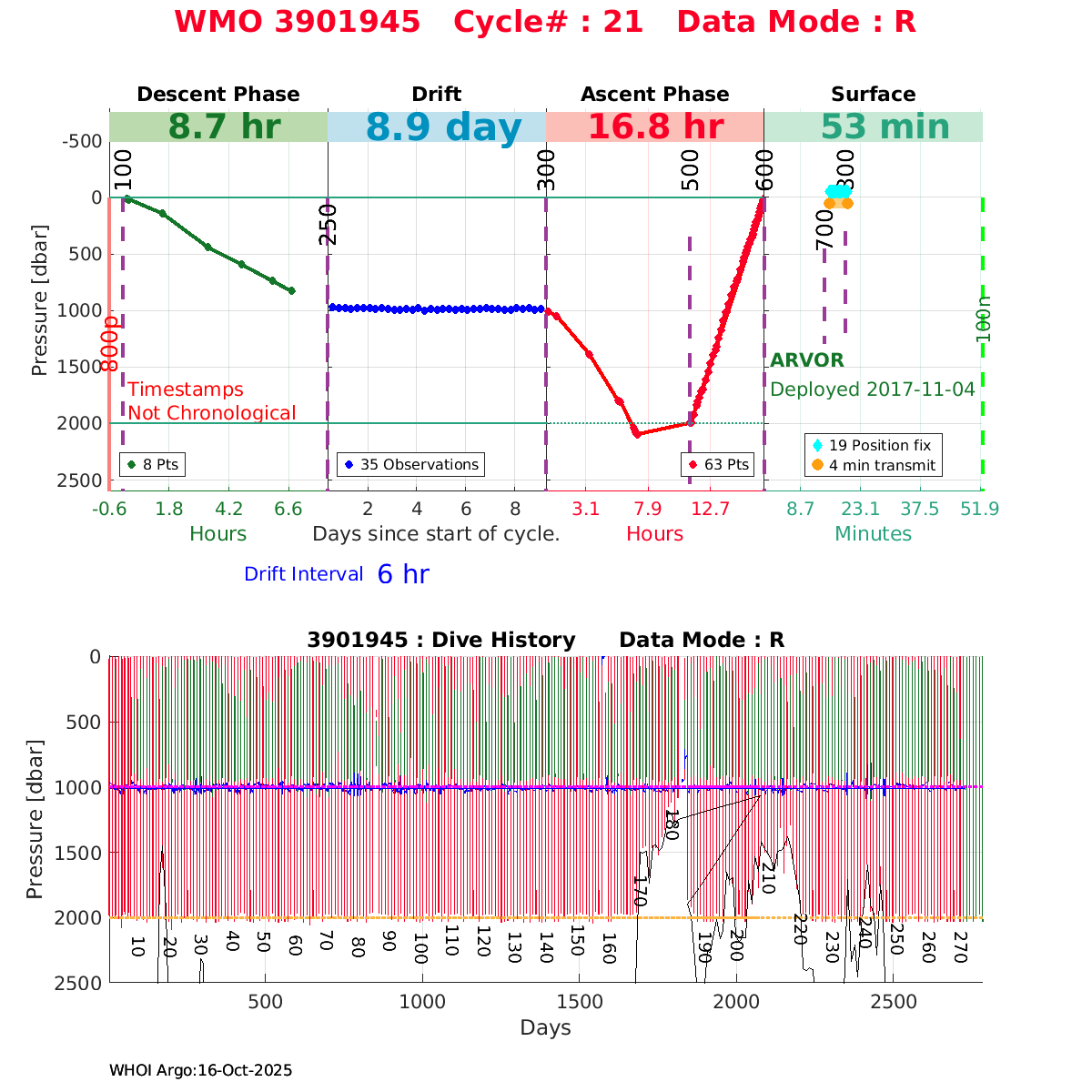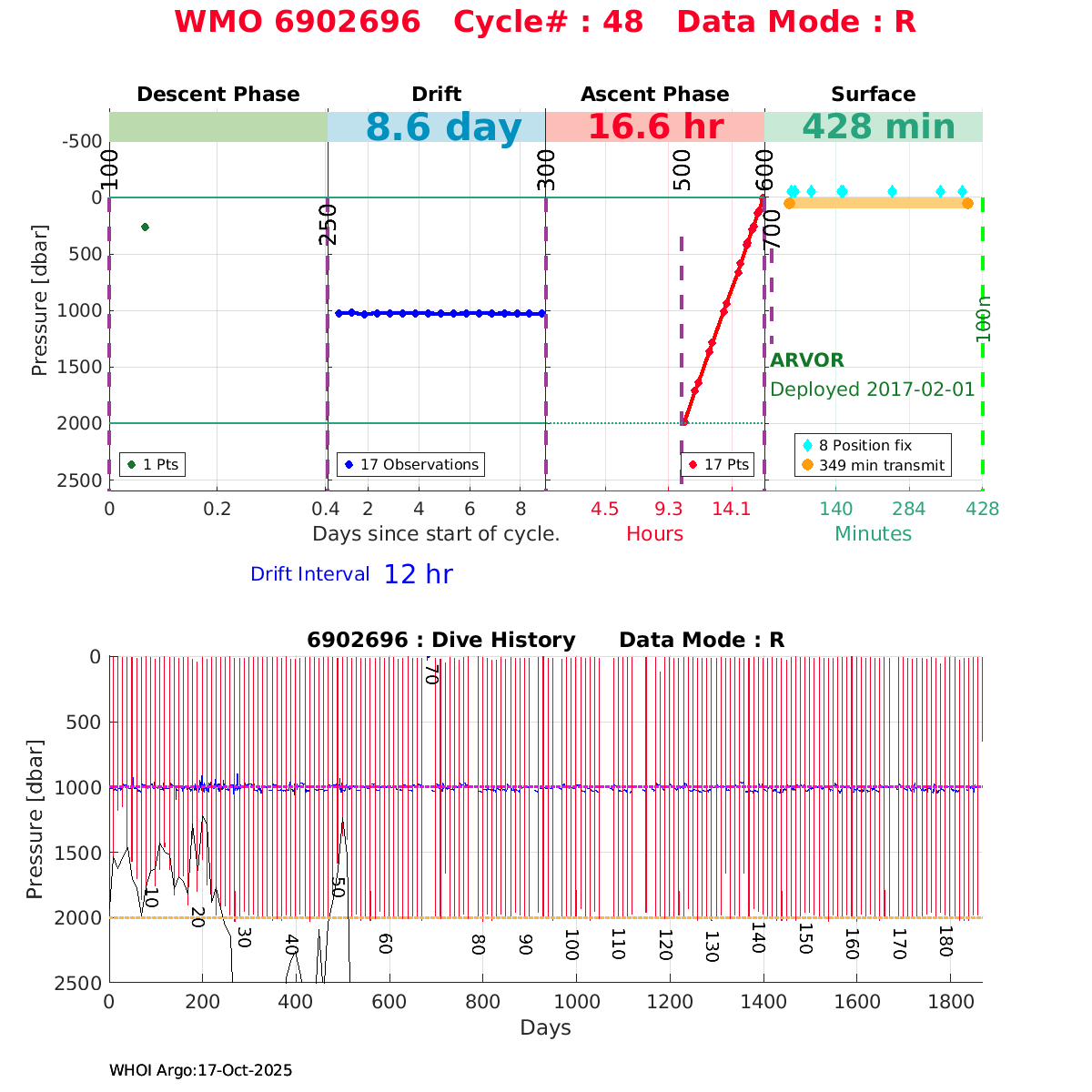 | WMO: #6902801 DAC: coriolis PI: Virginie THIERRY PROVOR: # SBE41CP_V7.2.5: #8950 AANDERAA_OPTODE_4330: #2632 Altimeter Comparison (IFREMER) EuroArgo Link | ![]() |