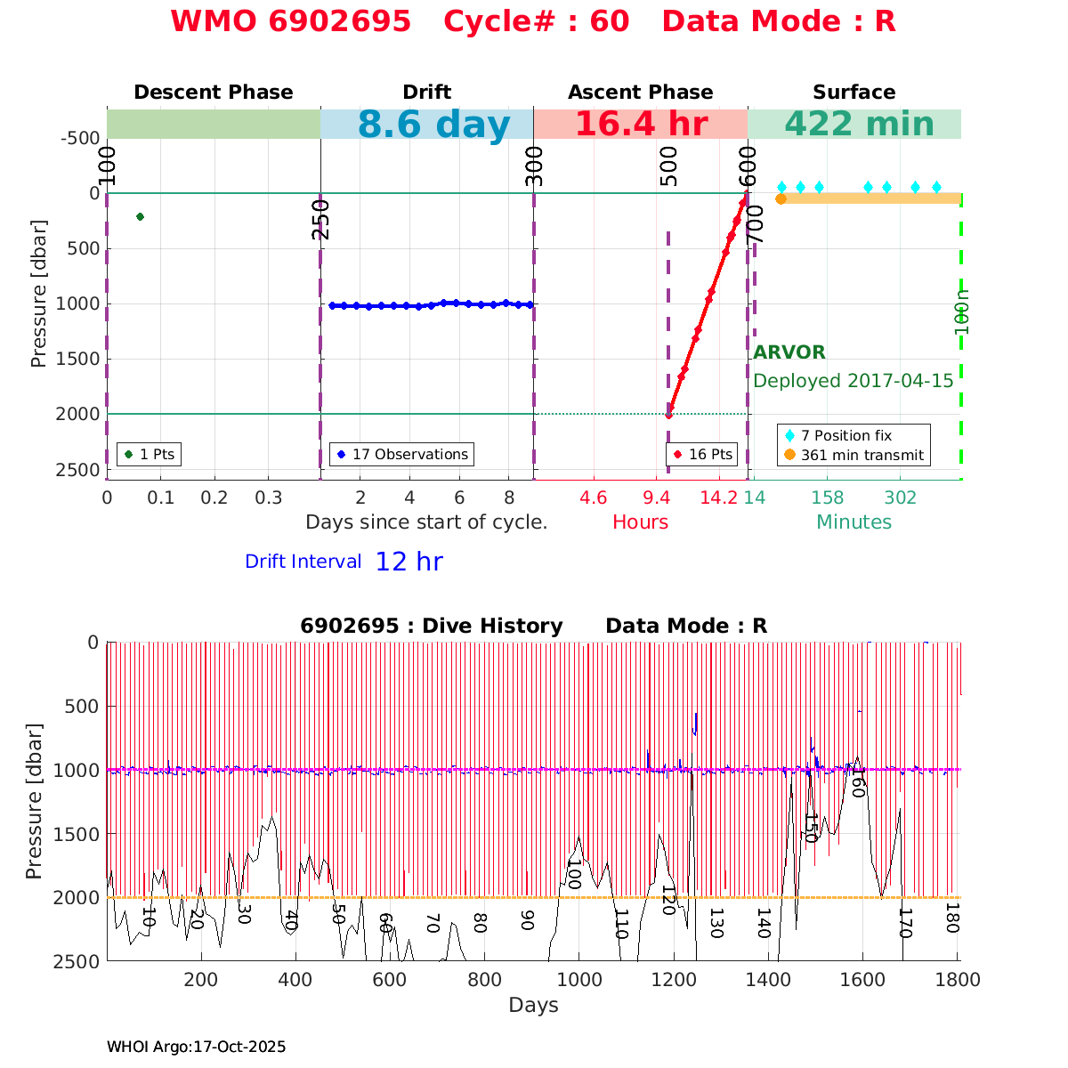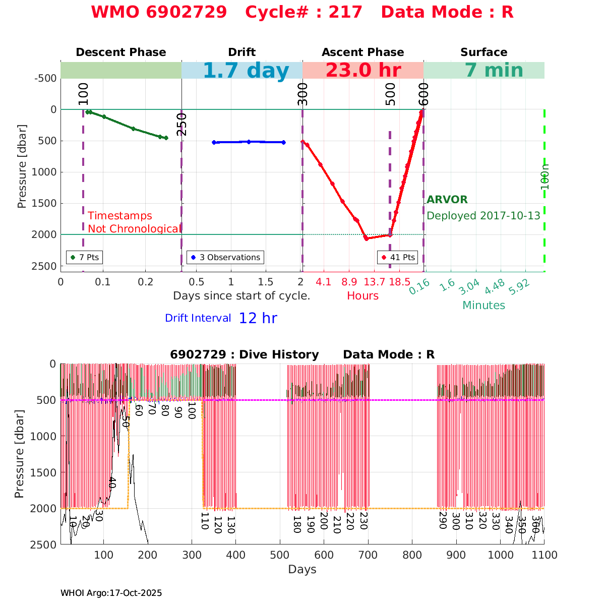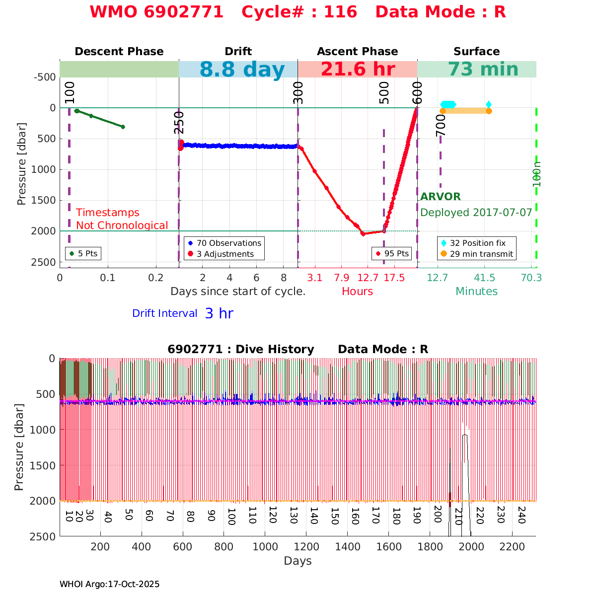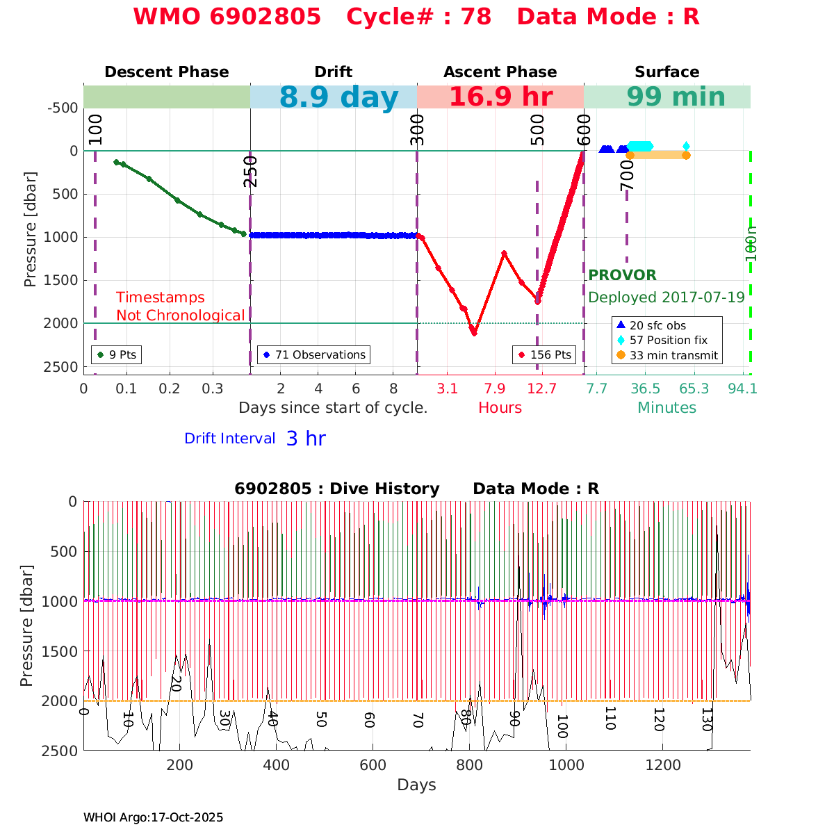 | WMO: #6902695 DAC: coriolis PI: Virginie THIERRY ARVOR: # FLOATCLOCK: # KISTLER_2900PSIA: #4713496 SBE41CP_V7.2.5: #7997 Altimeter Comparison (IFREMER) EuroArgo Link | ![]() |