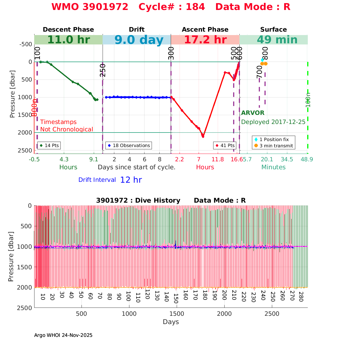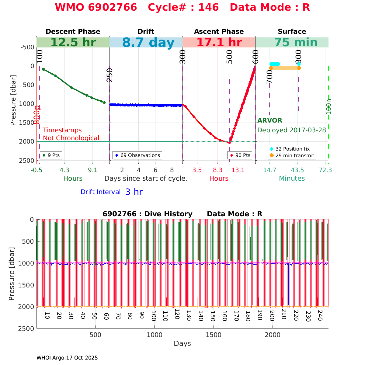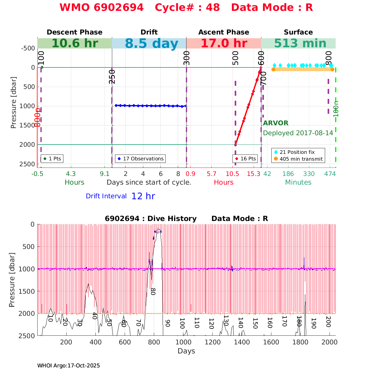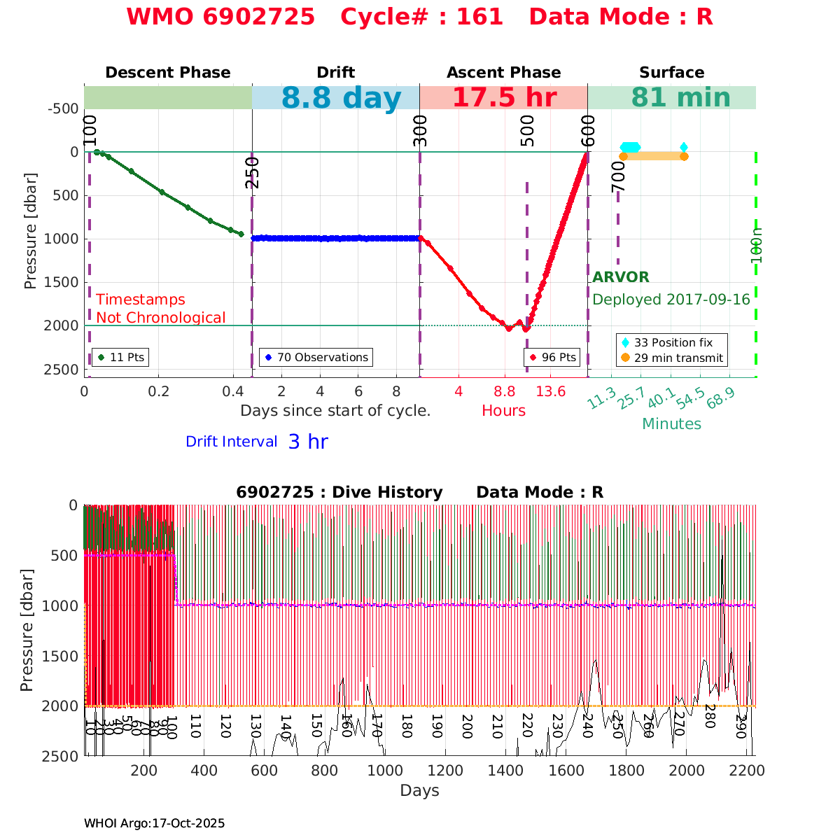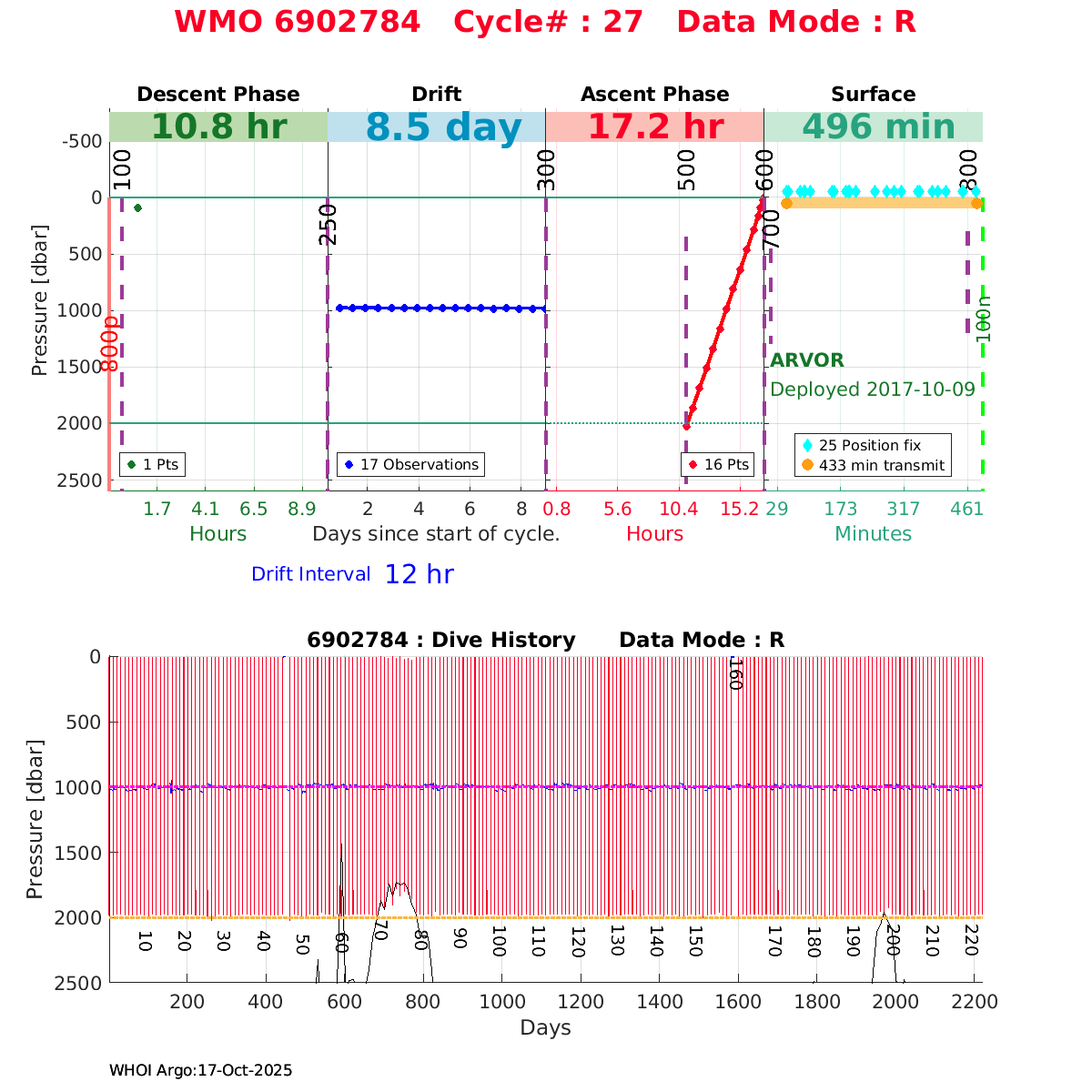 | WMO: #6902695 DAC: coriolis PI: Virginie THIERRY ARVOR: # FLOATCLOCK: # KISTLER_2900PSIA: #4713496 SBE41CP_V7.2.5: #7997 Altimeter Comparison (IFREMER) EuroArgo Link | ![]() |