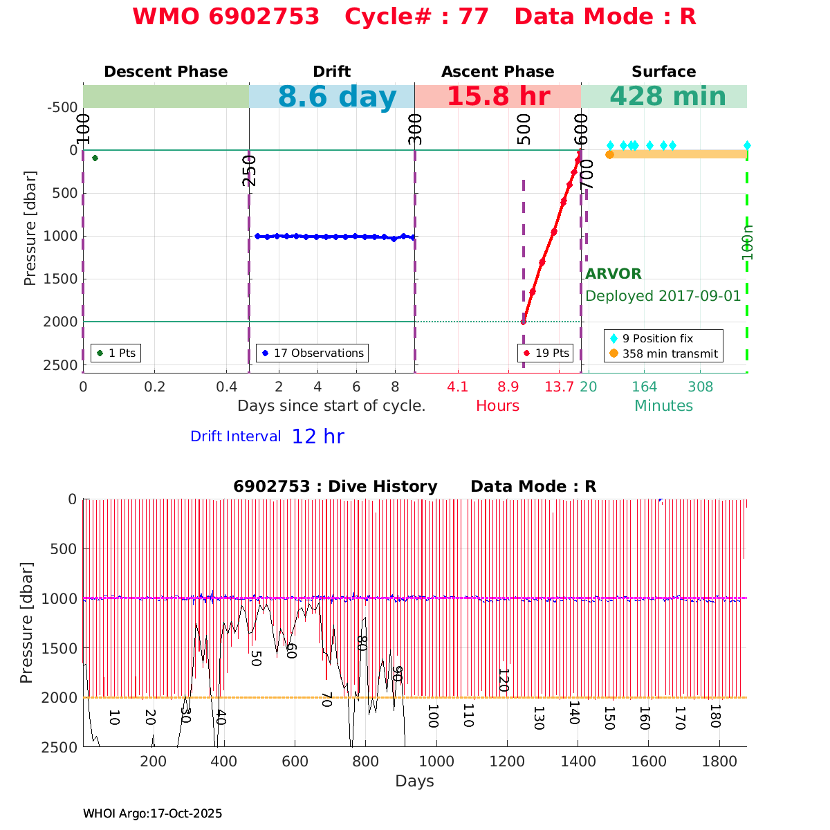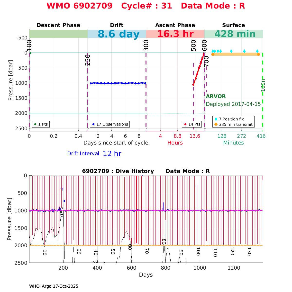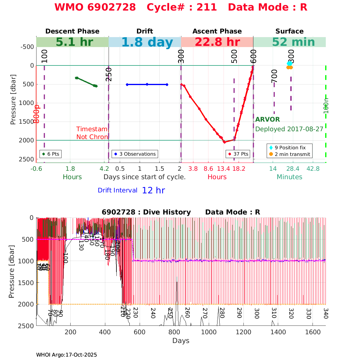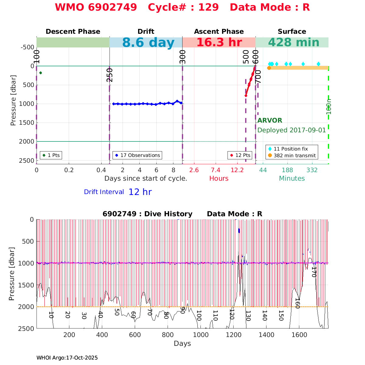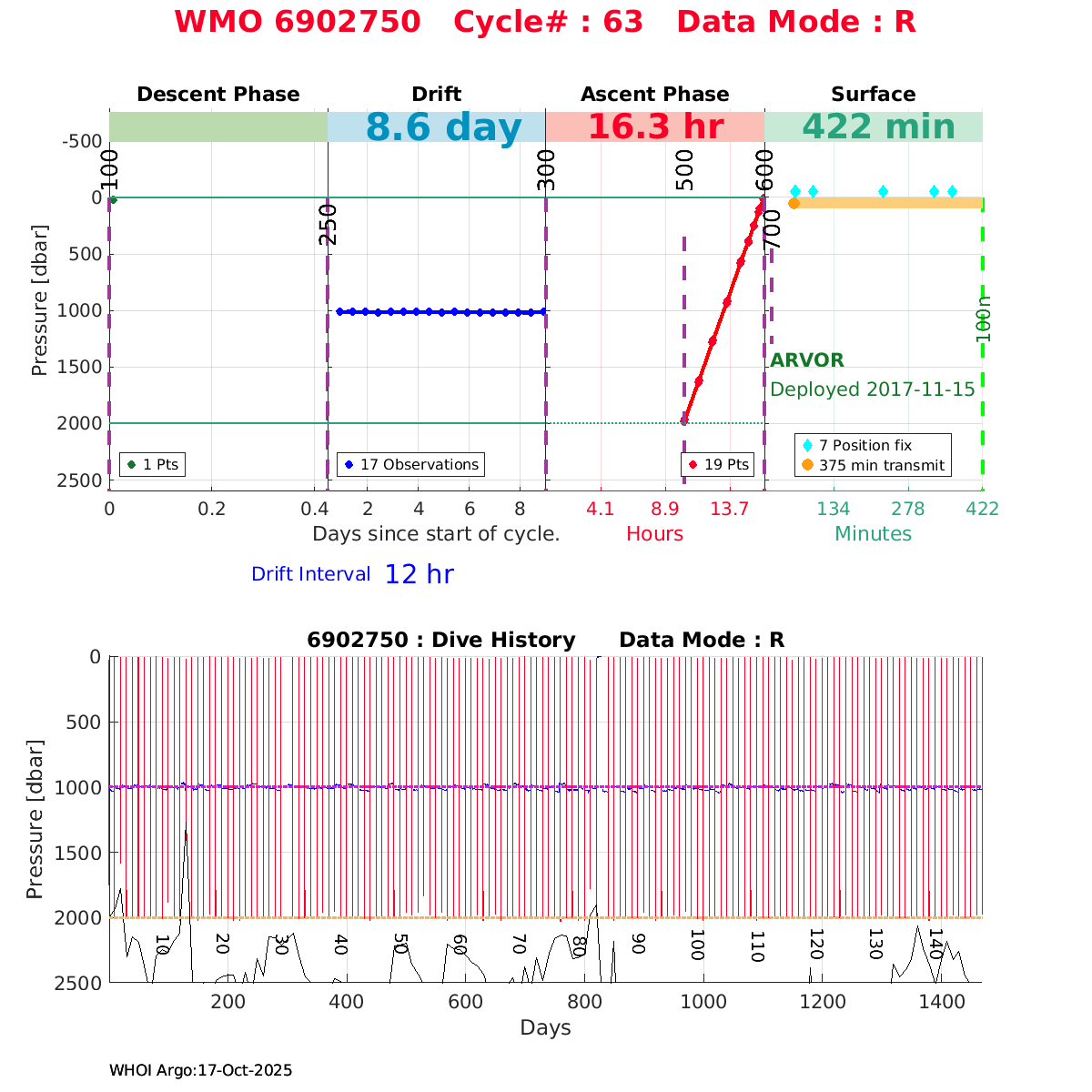 | WMO: #6902709 DAC: coriolis PI: Virginie THIERRY ARVOR: # FLOATCLOCK: # KISTLER_2900PSIA: #4730988 SBE41CP_V7.2.5: #8176 Altimeter Comparison (IFREMER) EuroArgo Link | ![]() |