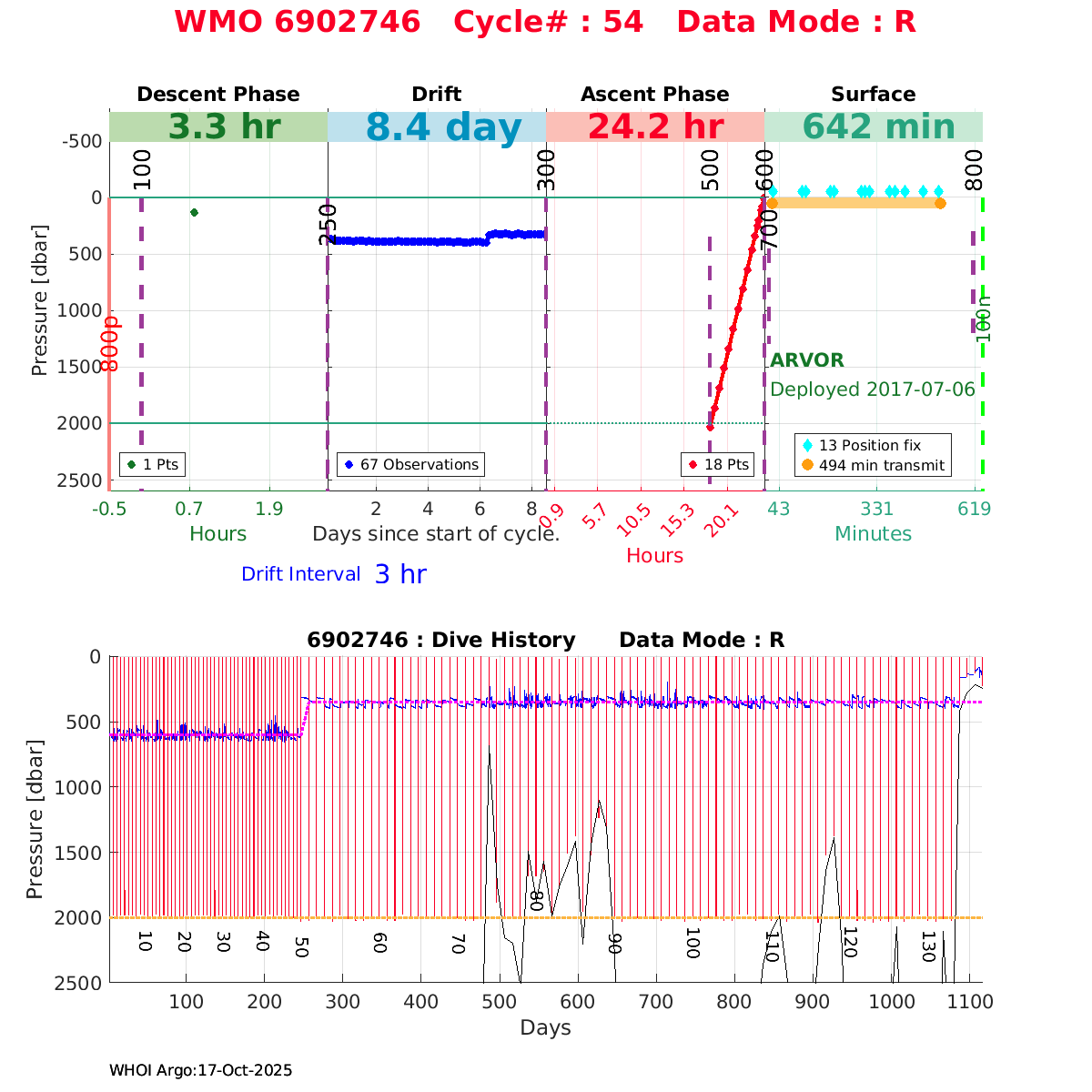| WMO: #6902746 DAC: coriolis PI: Guillaume MAZE ARVOR: # DRUCK_2900PSIA: #10300566 SBE41CP_V7.2.5: #8914 Altimeter Comparison (IFREMER) EuroArgo Link | ![]() |