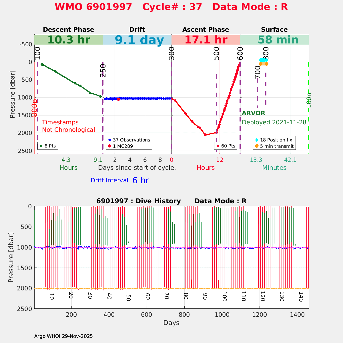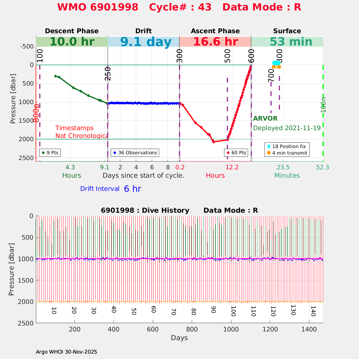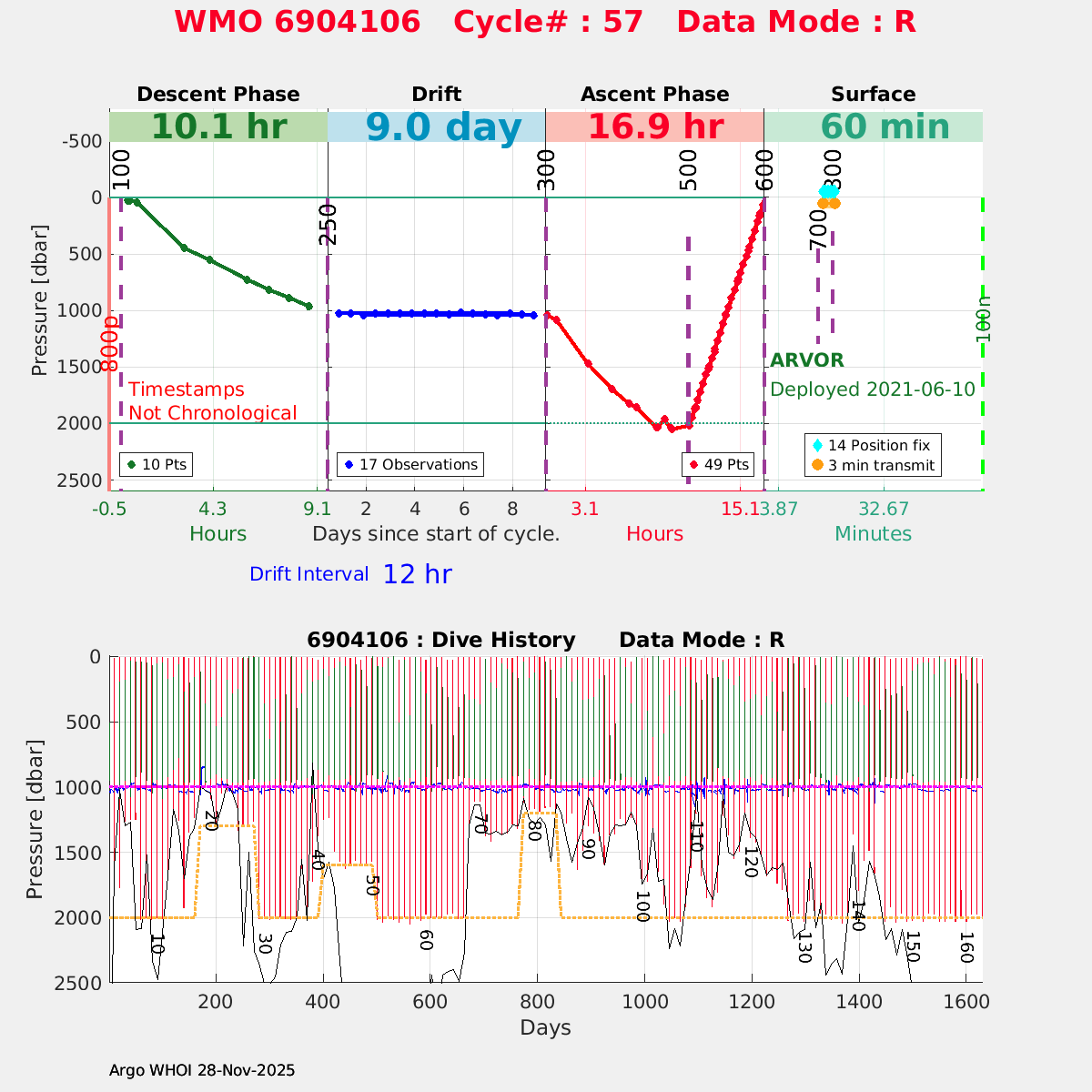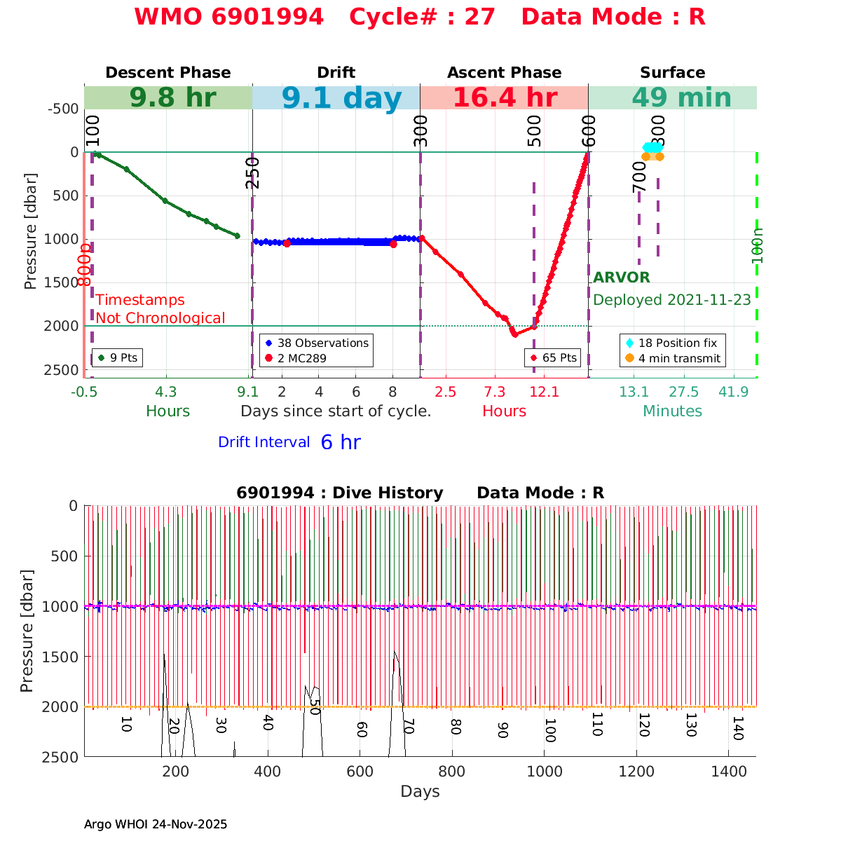 | WMO: #6903081 DAC: coriolis PI: Damien DESBRUYERES ARVOR_D: # KISTLER_10153PSIA: #5595292 SBE41CP_V7.2.5: #13019 AANDERAA_OPTODE_4330: #3393 Altimeter Comparison (IFREMER) EuroArgo Link | ![]() |