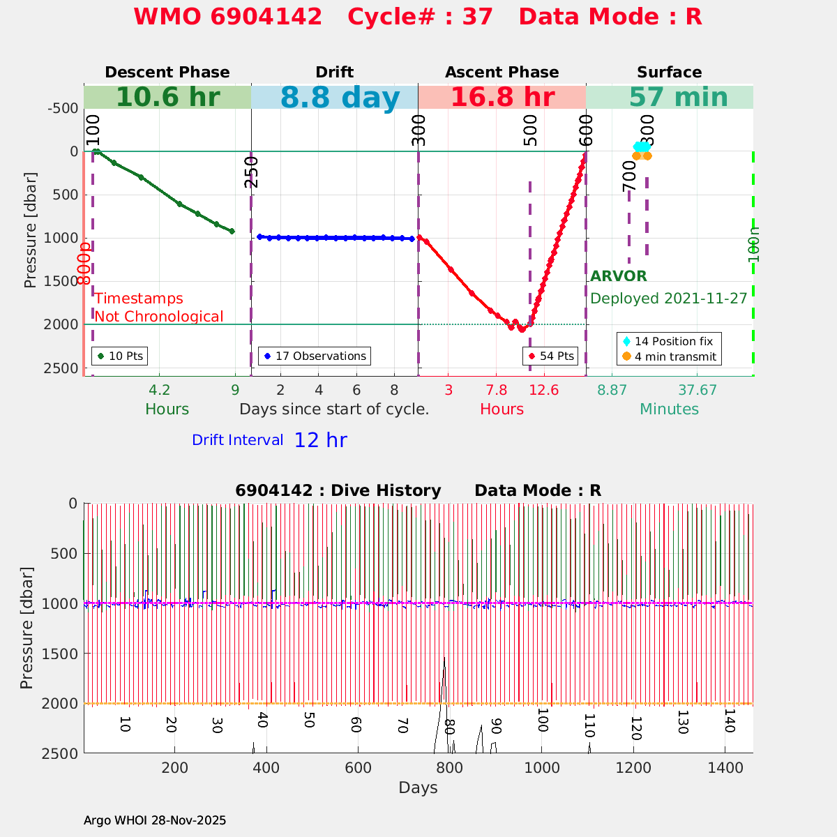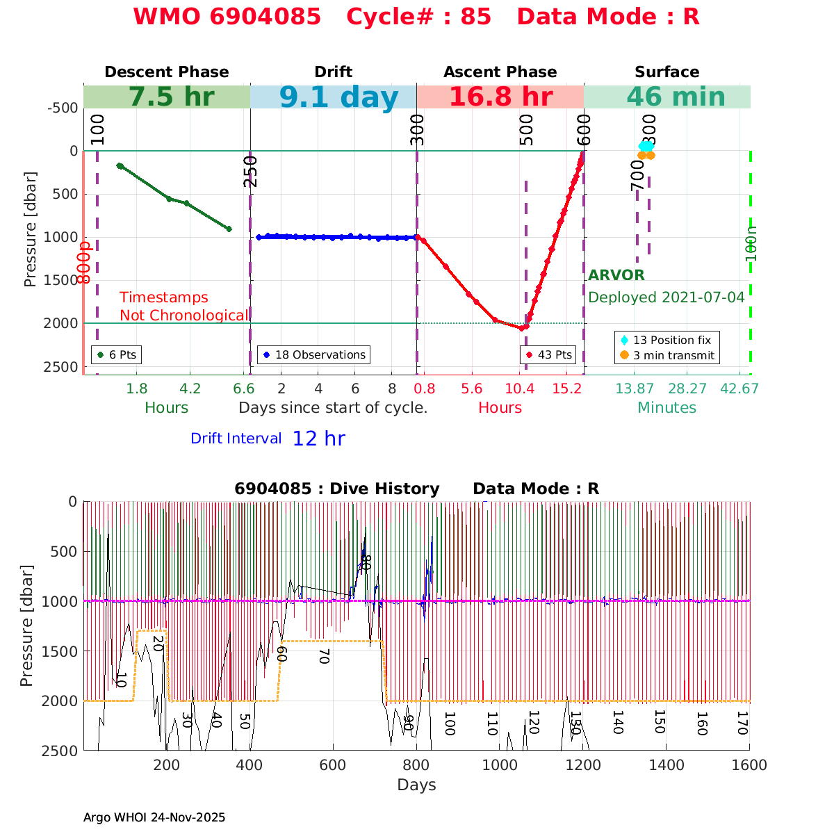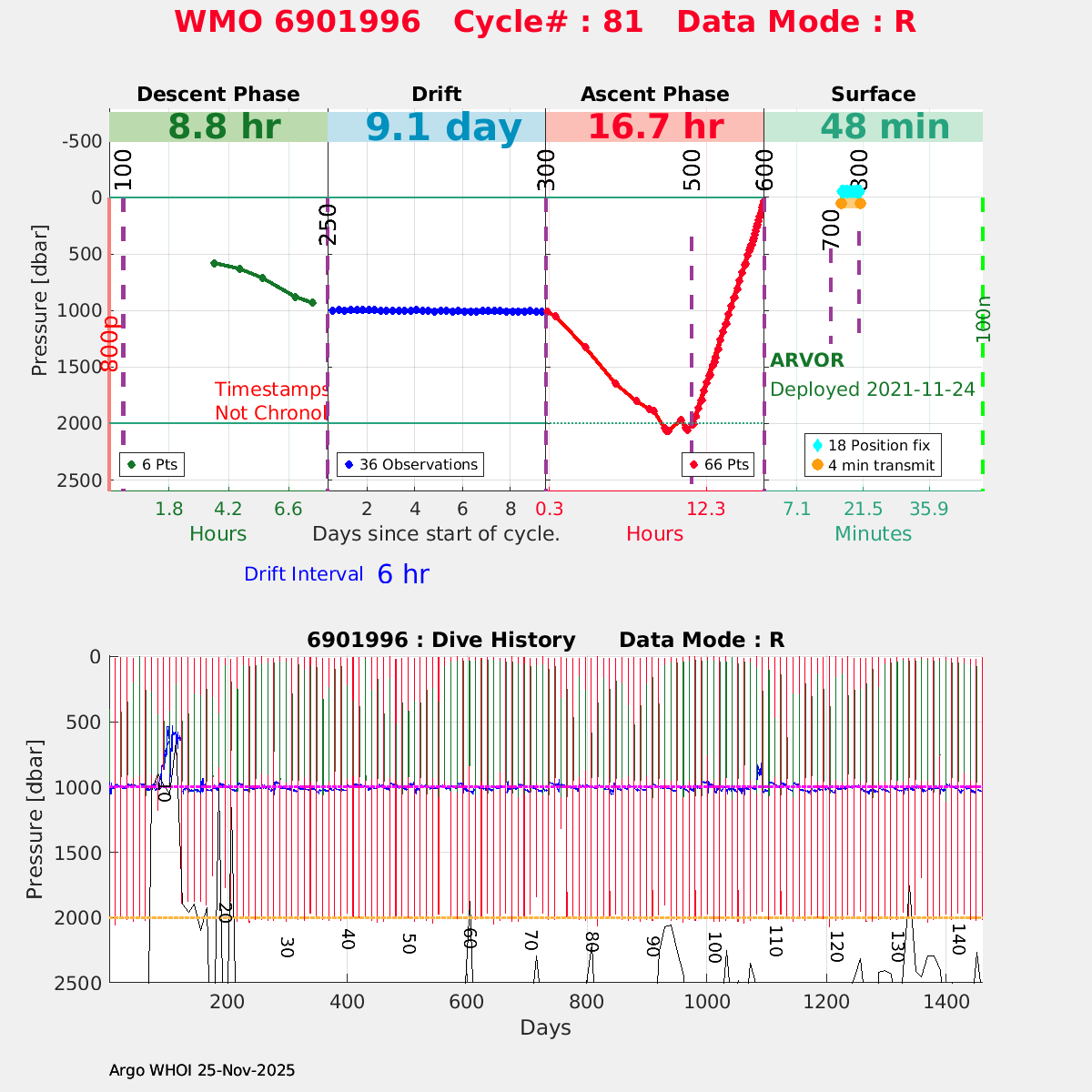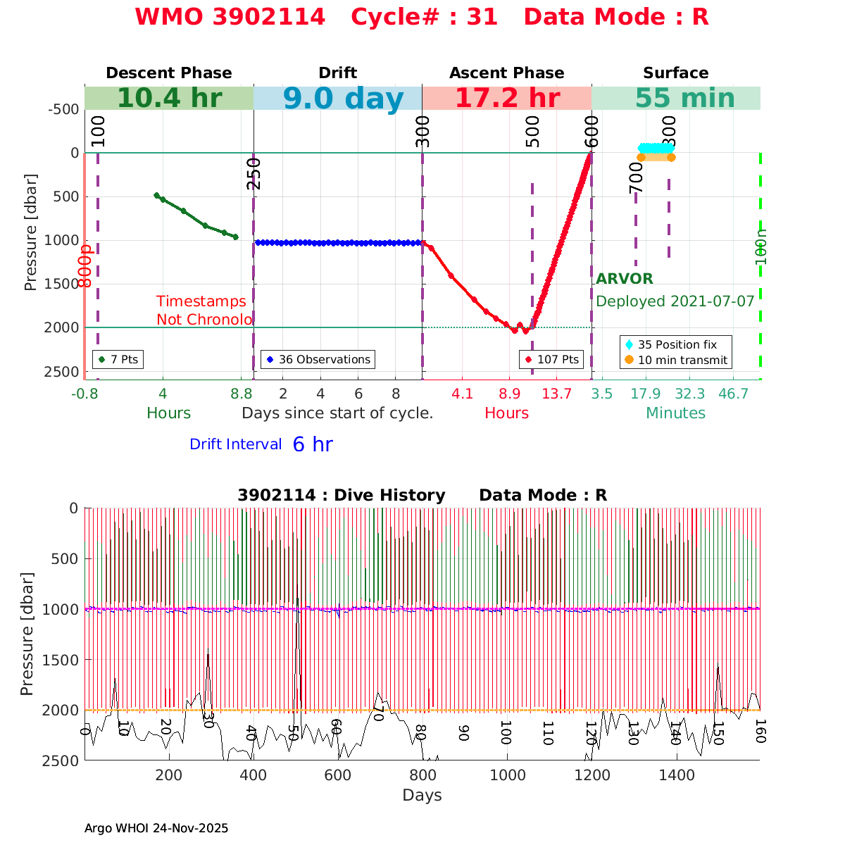 | WMO: #6903081 DAC: coriolis PI: Damien DESBRUYERES ARVOR_D: # KISTLER_10153PSIA: #5595292 SBE41CP_V7.2.5: #13019 AANDERAA_OPTODE_4330: #3393 Altimeter Comparison (IFREMER) EuroArgo Link | ![]() |