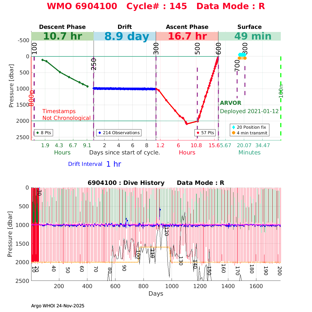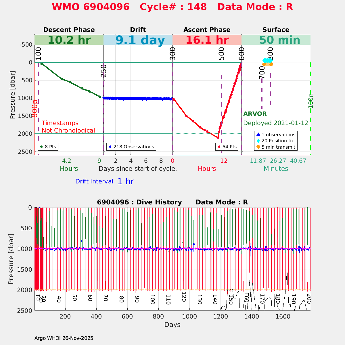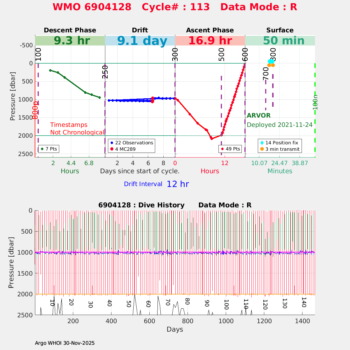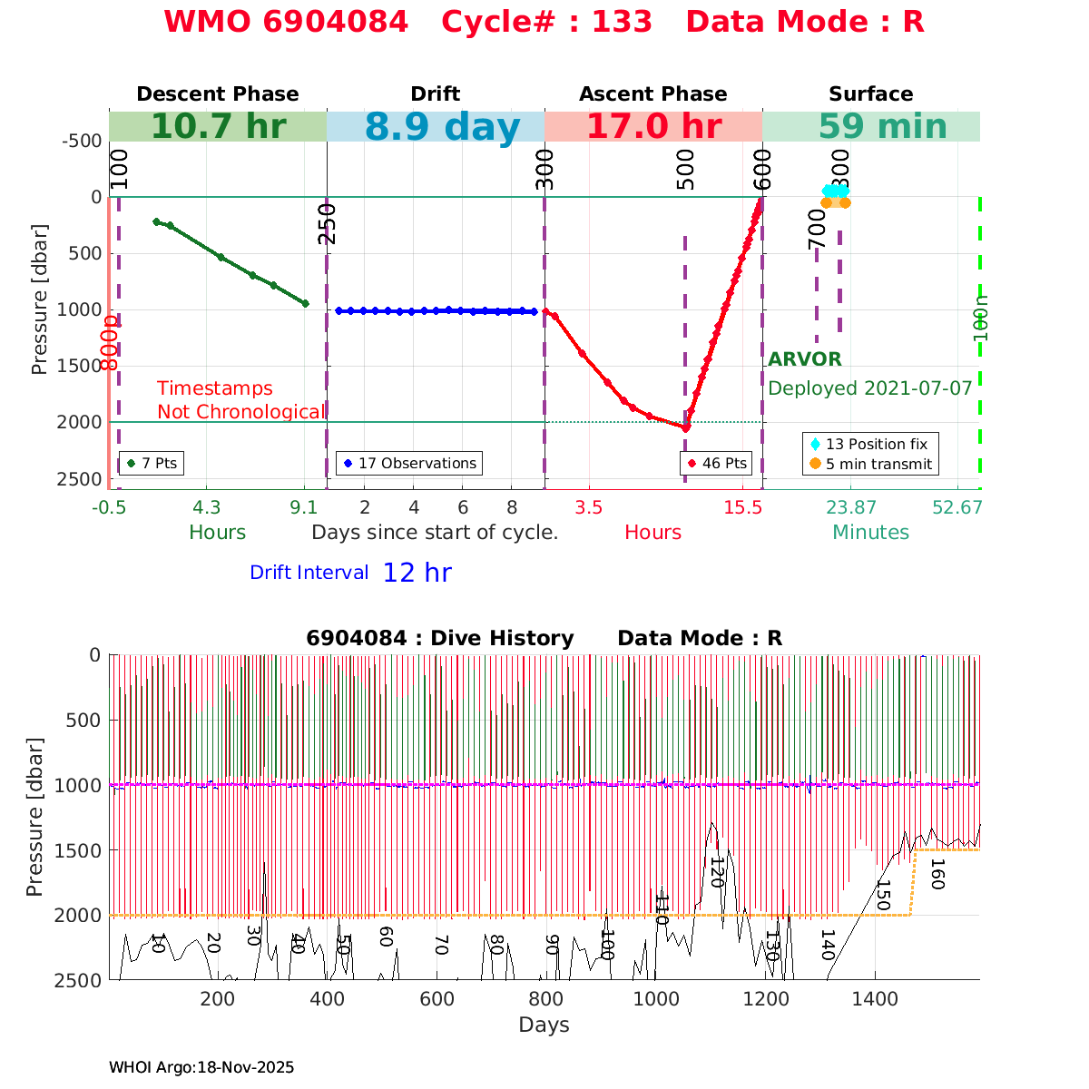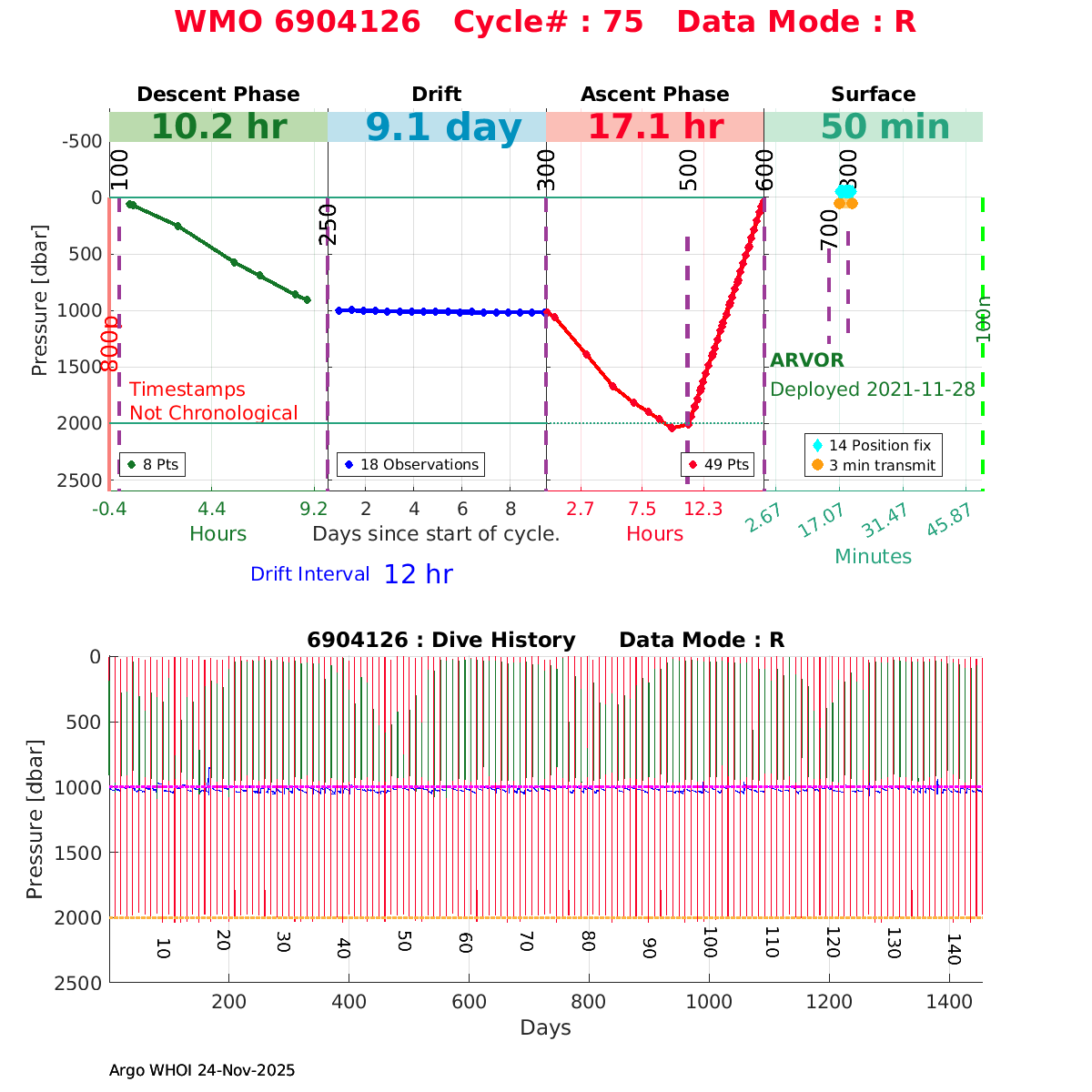 | WMO: #6903081 DAC: coriolis PI: Damien DESBRUYERES ARVOR_D: # KISTLER_10153PSIA: #5595292 SBE41CP_V7.2.5: #13019 AANDERAA_OPTODE_4330: #3393 Altimeter Comparison (IFREMER) EuroArgo Link | ![]() |