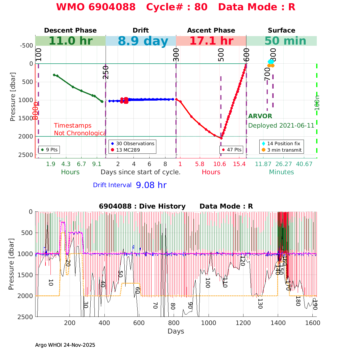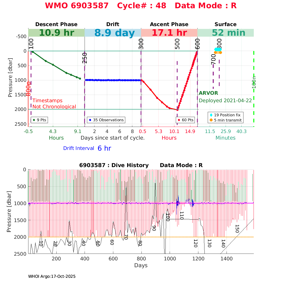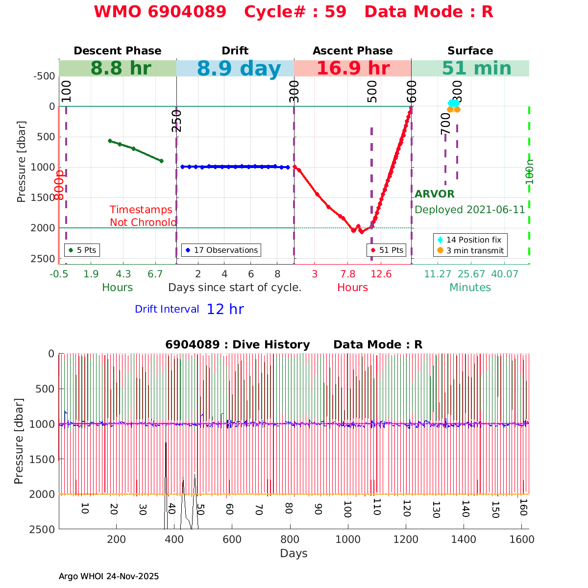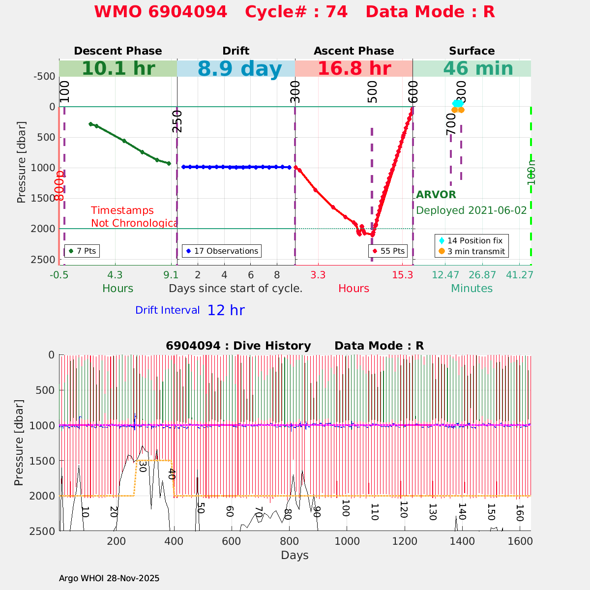 | WMO: #6903081 DAC: coriolis PI: Damien DESBRUYERES ARVOR_D: # KISTLER_10153PSIA: #5595292 SBE41CP_V7.2.5: #13019 AANDERAA_OPTODE_4330: #3393 Altimeter Comparison (IFREMER) EuroArgo Link | ![]() |