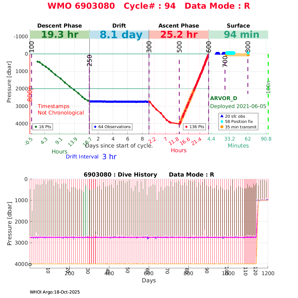 | WMO: #6903080 DAC: coriolis PI: Damien DESBRUYERES ARVOR_D: # KISTLER_10153PSIA: #5600167 SBE41CP_V7.2.5: #13018 AANDERAA_OPTODE_4330: #3494 Altimeter Comparison (IFREMER) EuroArgo Link | ![]() |